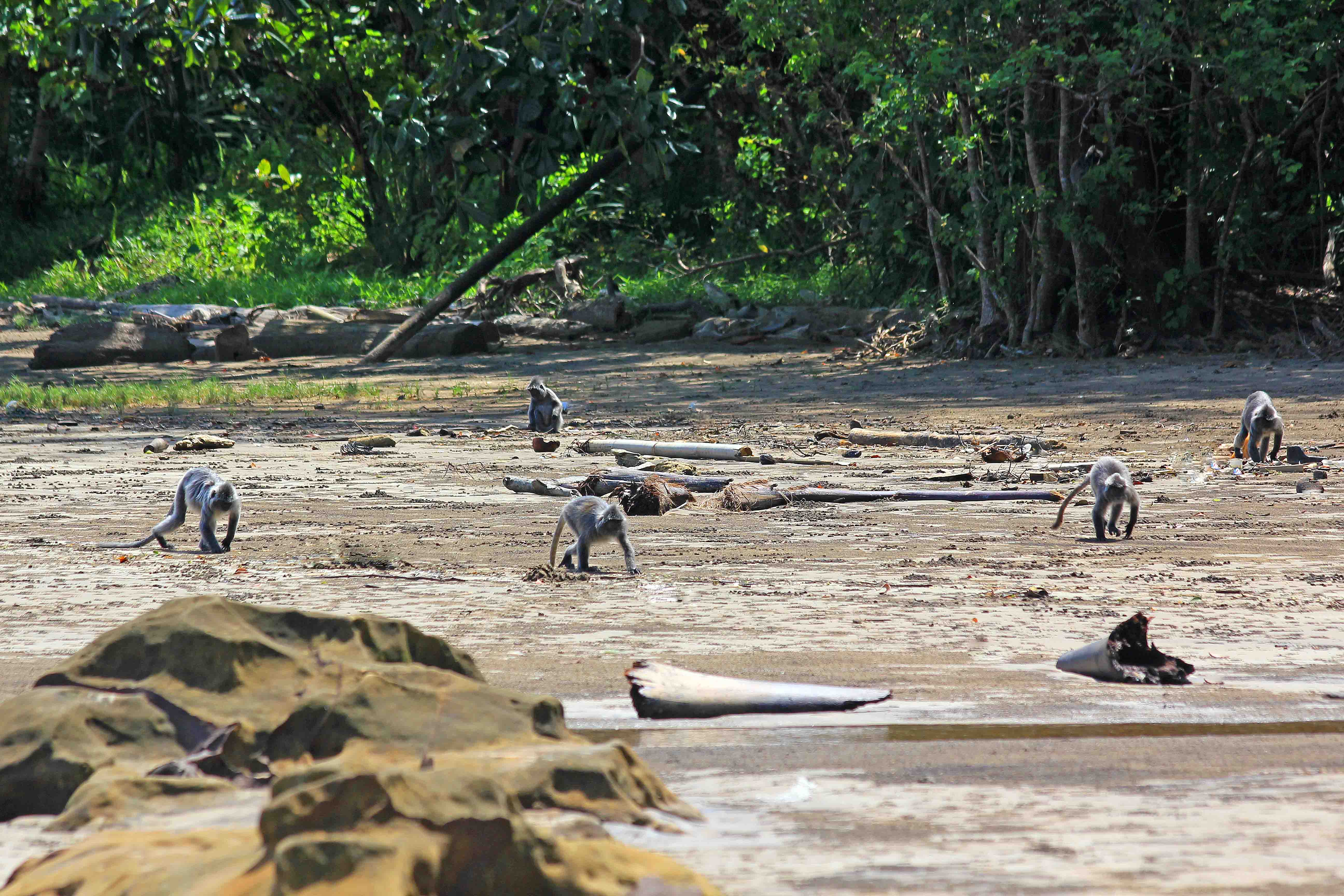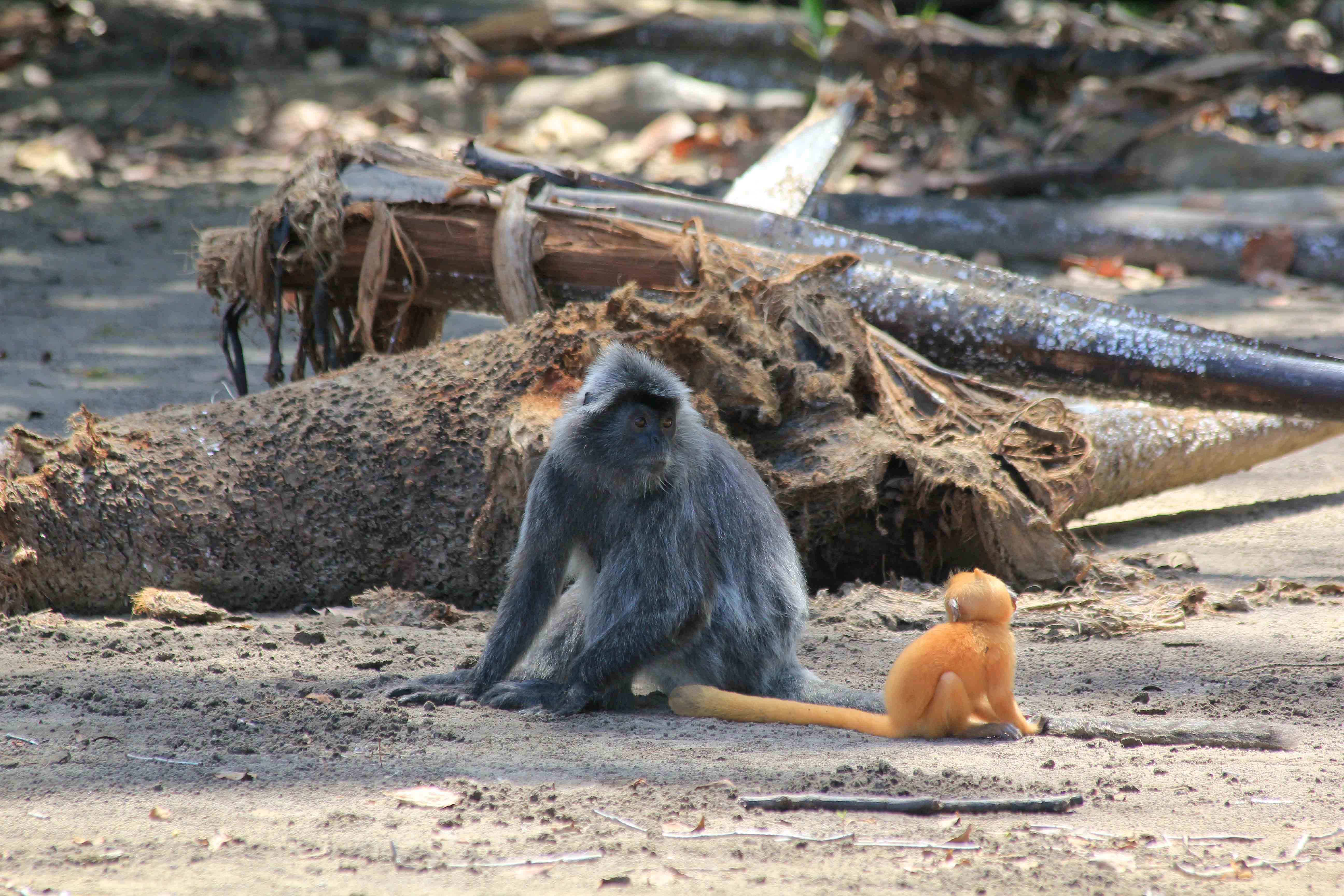 Most of the animals are active in the morning and in the late afternoon – so it’s more likely to see wildlife at these times. At the beach near the National Park Head quarter we saw lots of silver leaf monkeys with their orange babies hovering around in the late afternoon.