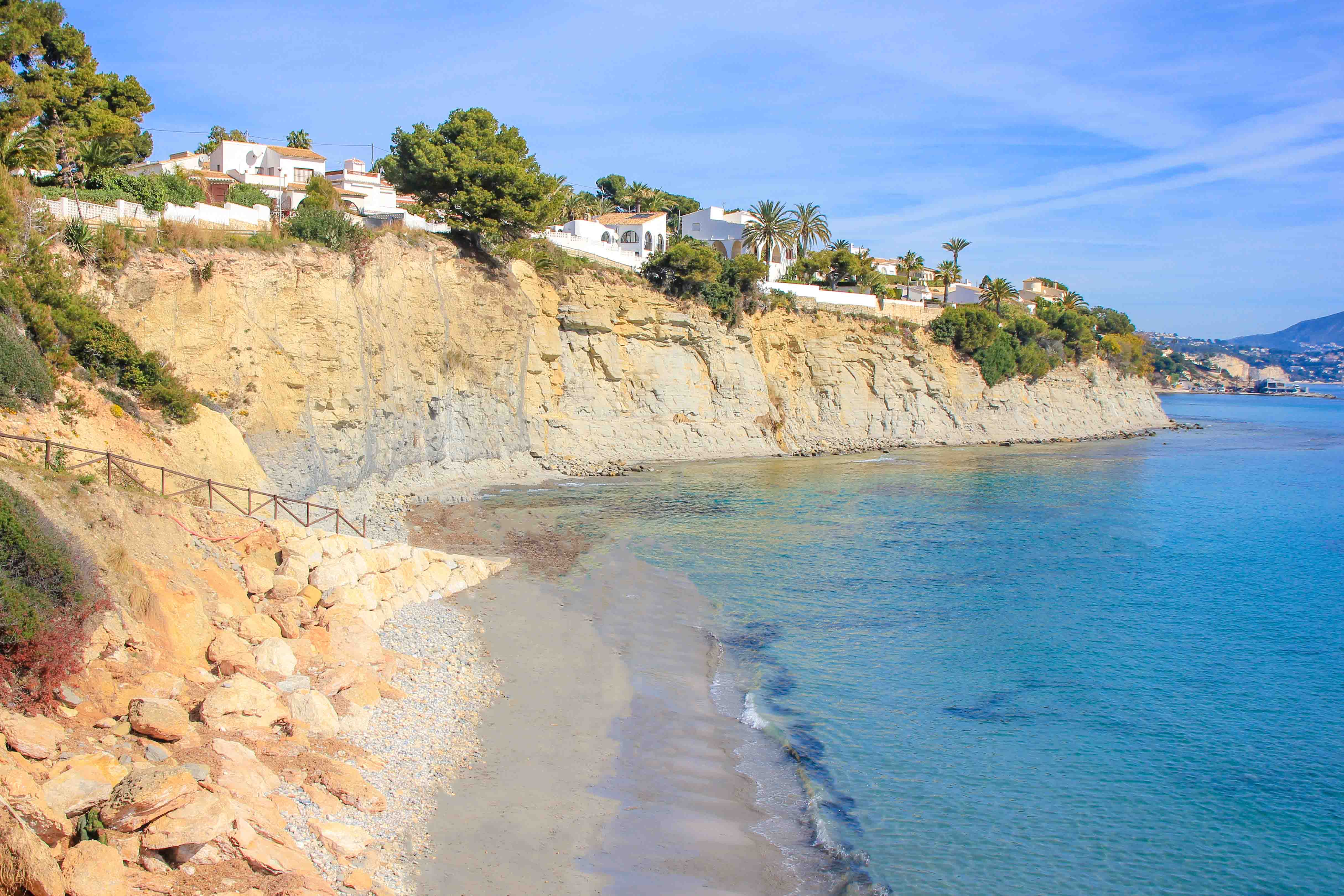 If you fancy taking a walk, you can take the “Benissa Coastal Walk” from the beach and explore the beautiful coast of Calpe. Or you can stroll along the promenade towards the long main beaches of the region. A wonderful beach for a few relaxing hours at the sea.