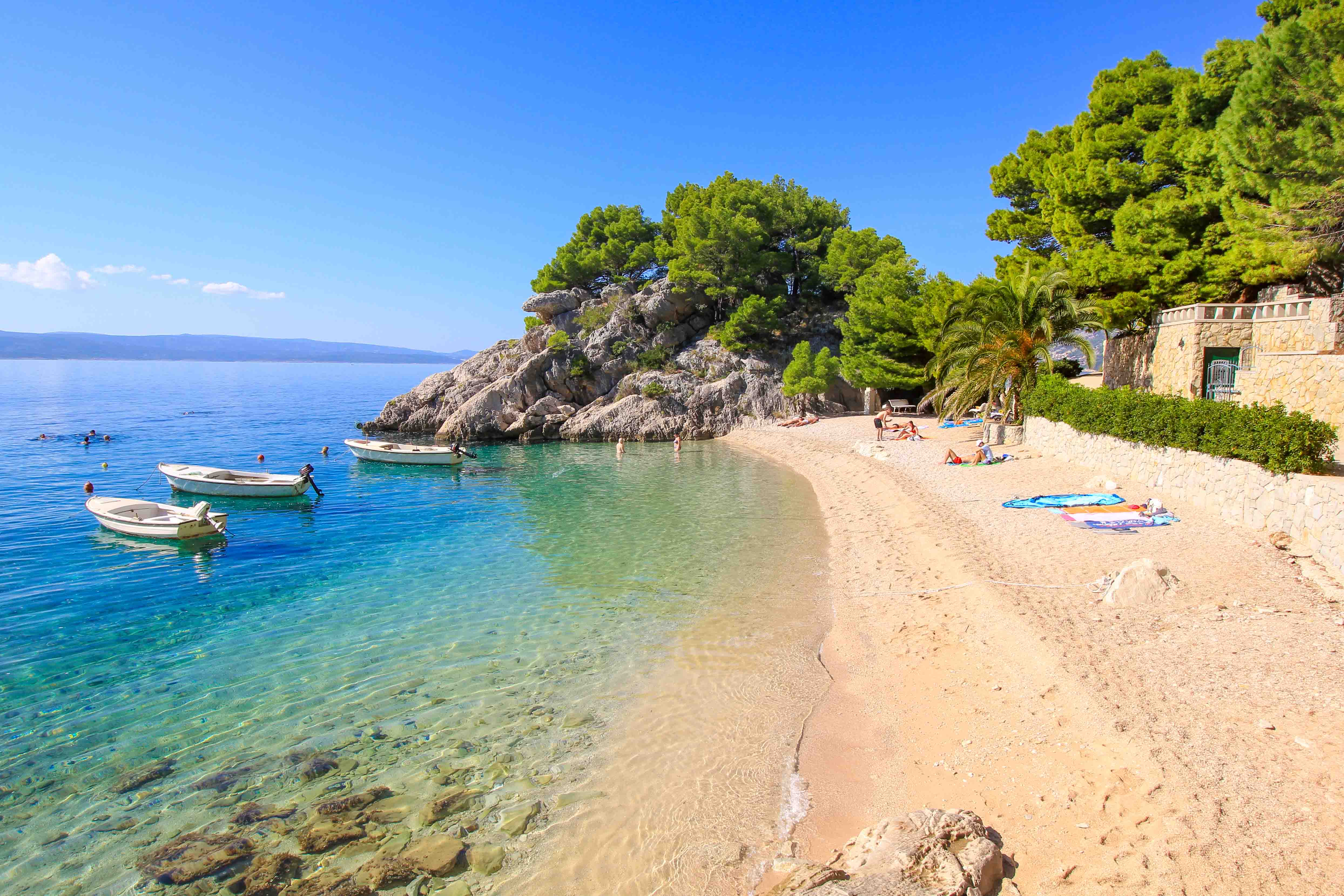 The Podrace beach is a real jewel of the Riviera and is considered by many to be the most beautiful beach in Brela. Bathing here offers a panorama as beautiful and unique as a postcard. This small cove is nestled between rocks and green pine trees, and the sea shines in picturesque shades of blue sea. The water here is crystal clear, and for those who like snorkeling, there are several good spots around the rocks to admire the intact underwater world.