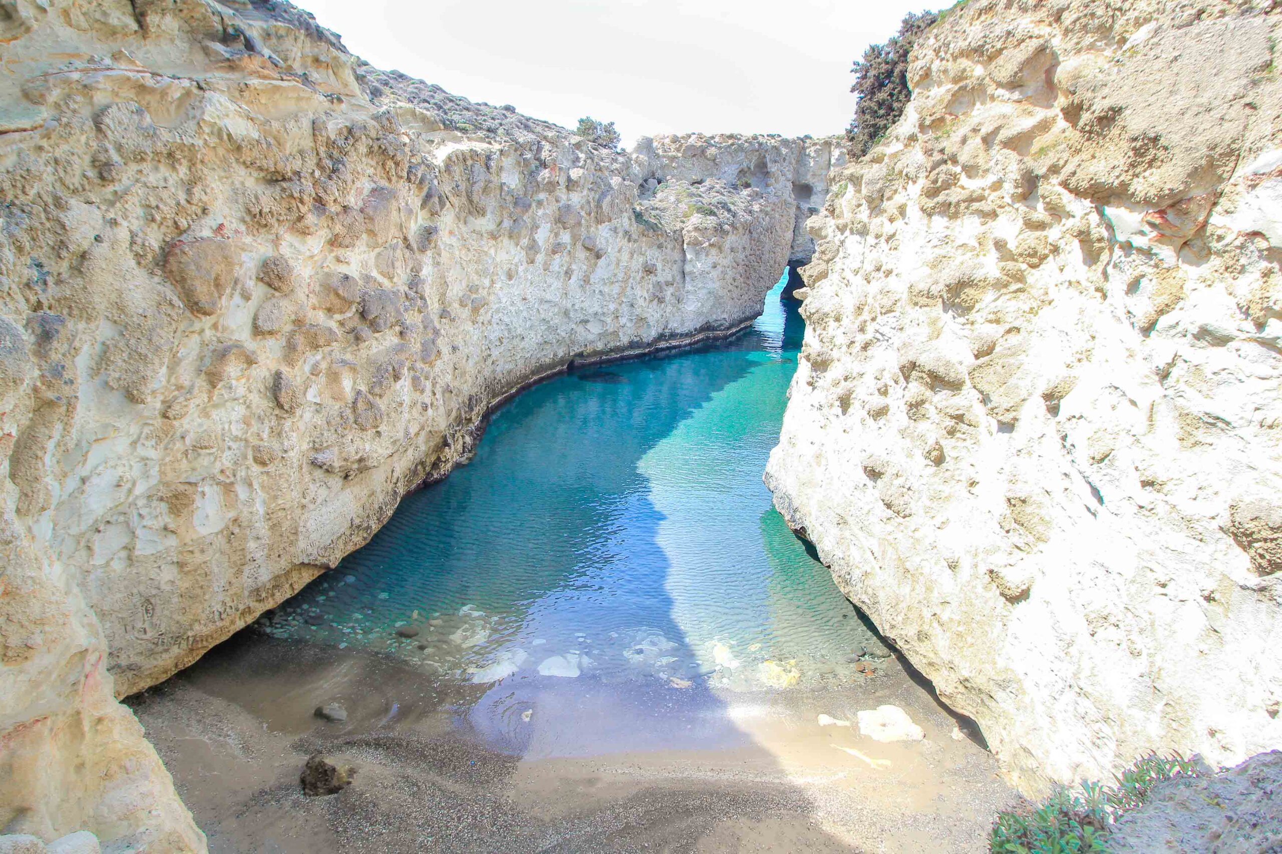 A really worth seeing part of the coast is located in the north of Milos and is known as Papafragas. The beautiful landscape with the white cliffs and caves is breathtaking, and there are always nice little sandy bays hiding there. The highlight, however, is Papafragas Cave Beach, a tiny cave beach that can only be reached by a dangerous descent or most easily from the sea, by kayak. However, around the coast there are other beautiful bays, which are much easier to access.