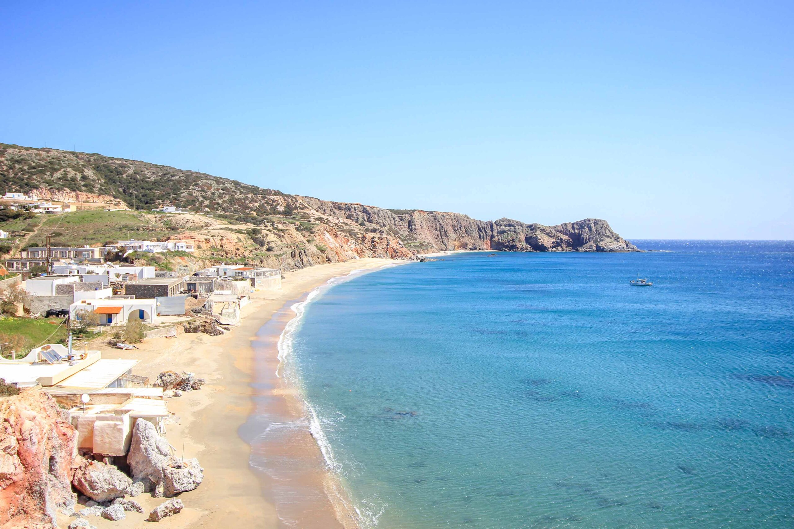 The many unique beaches of Milos make the Cycladic island an absolute highlight in Greece. Hardly anywhere else in this region you will find a higher density of exceptionally special bathing places, one more imposing and beautiful than the other. From wide fine sandy beaches, small hidden bays, to beaches with spectacular red and even snow-white cliffs, everything can be found on this fascinating vacation island. Some of the bays even fly the Blue Flag, an award for best sea and beach quality. Many of these dream beaches are nestled in beautiful nature and enchant with overwhelming scenery. But what are the absolute best beaches on Milos Island, what are the real insider tips and which bays are particularly suitable for a beach vacation.