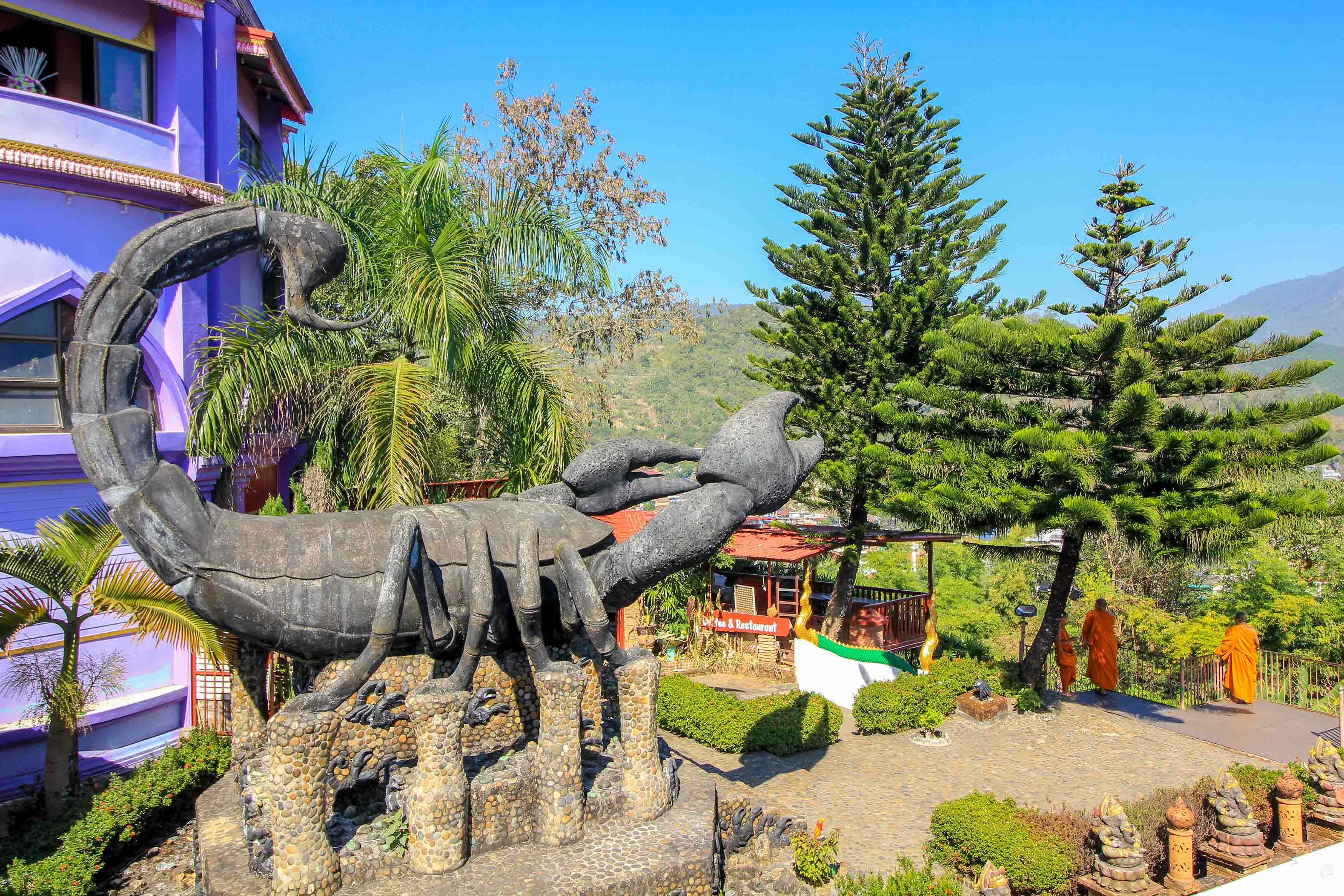On the way to the north, you should also visit the border town of Mae Sai. This is located about 60 kilometers from Chiang Rai and is a popular place when traveling through the Golden Triangle. A special highlight of the border town is the scorpion temple, Wat Phra That Doi Wao, from which you have an insanely brilliant view of the border region between Myanmar and Thailand. But also the market of Tachilek is really worth seeing. Nevertheless, this market is already in Myanmar and offers plenty of bits and pieces at really low prices.