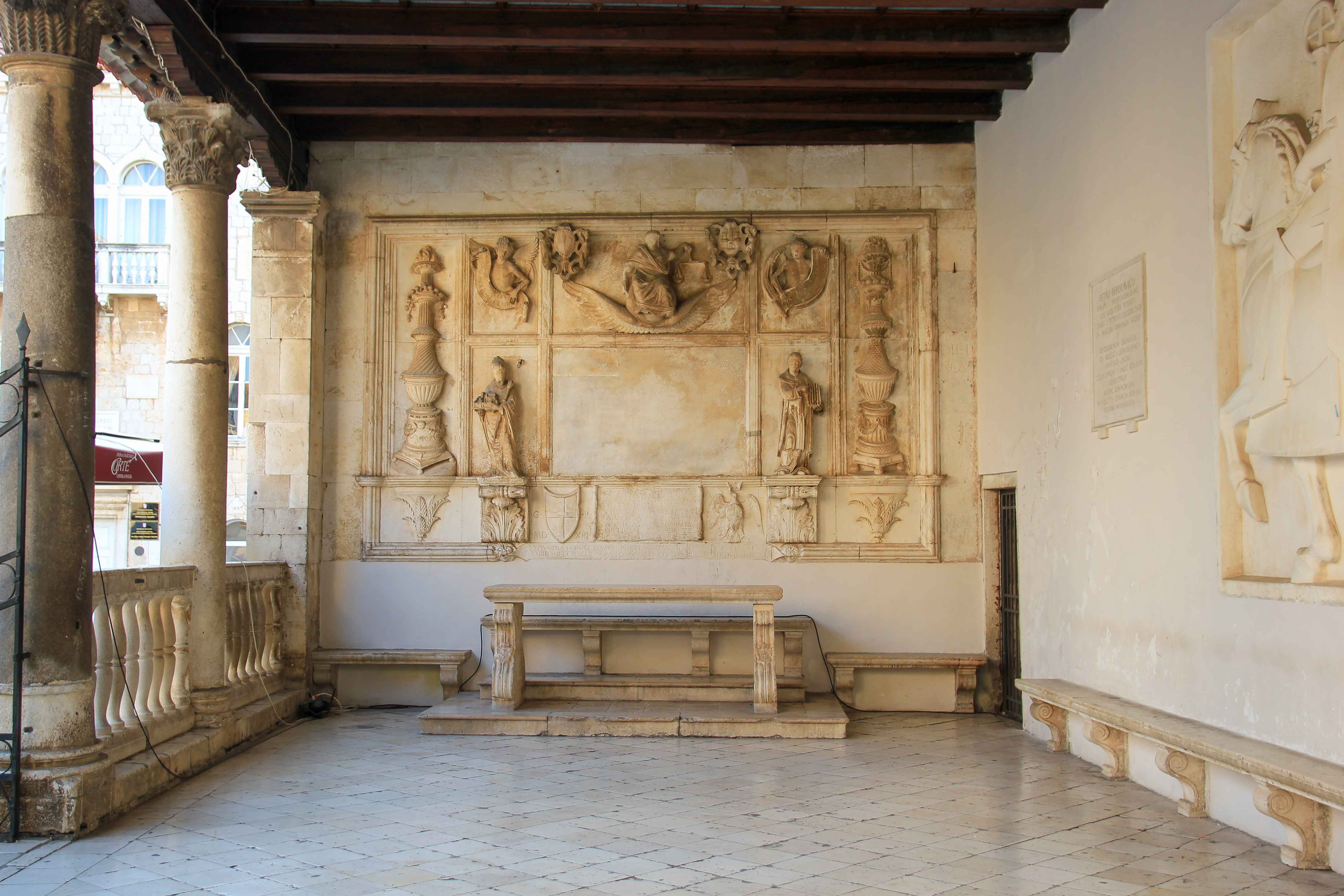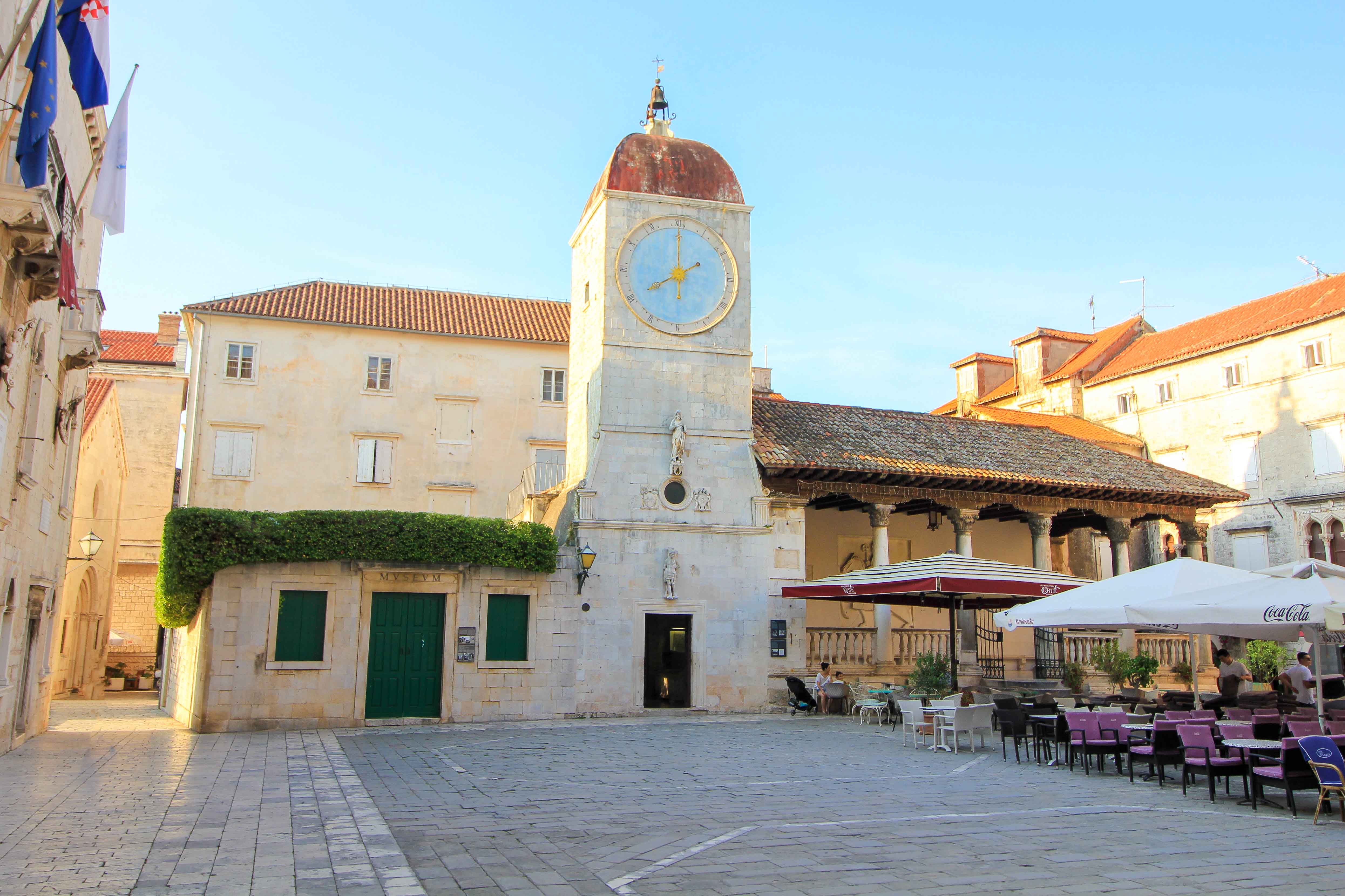 A fascinating attraction in Trogir is the picturesque bell tower of the church Sv. Sebastijana and the adjacent City Loggia. Both were built between the 14th and 15th centuries and are directly opposite the cathedral. The bell tower, which dates back to 1422, is the only thing of the Sv. Sebastijana that still remains. Next to the historic church tower is the old town’s City Loggia, a facility that can be found in many old towns in Croatia. These buildings used to be a place to hold court trials and important meetings.
