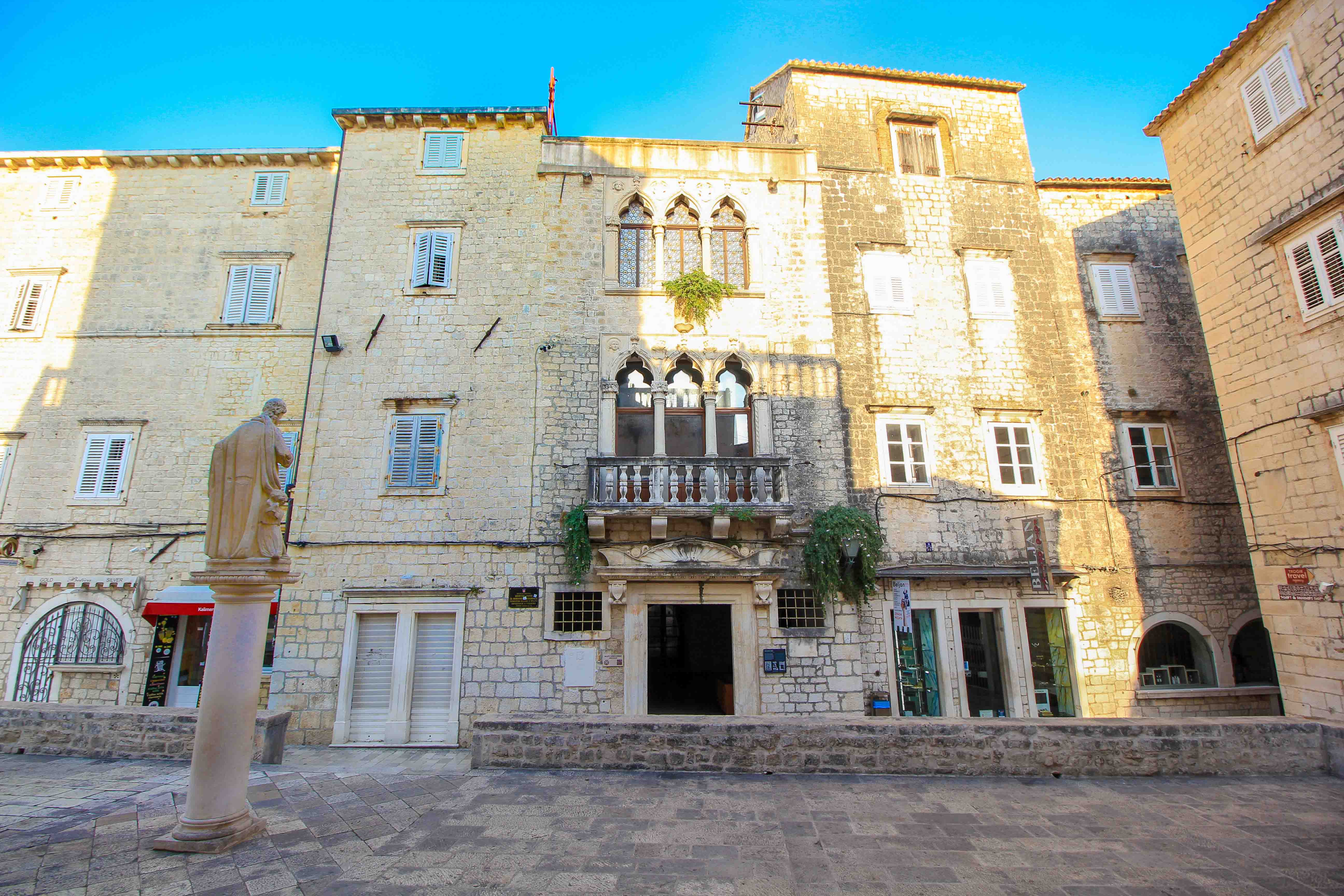 The Cipiko Palace is truly beautiful place to see in Trogir. This historic town palace dates back to the 13th century and was built in the Venetian style. It is located in the heart of Trogir’s old town, directly opposite the Basilica of St. Martin or St. Barbara. Although the interior of the Cipiko Palace is not open to the public, the façade with its Gothic triple windows is a fascinating work of art and a popular photo motif in Trogir!