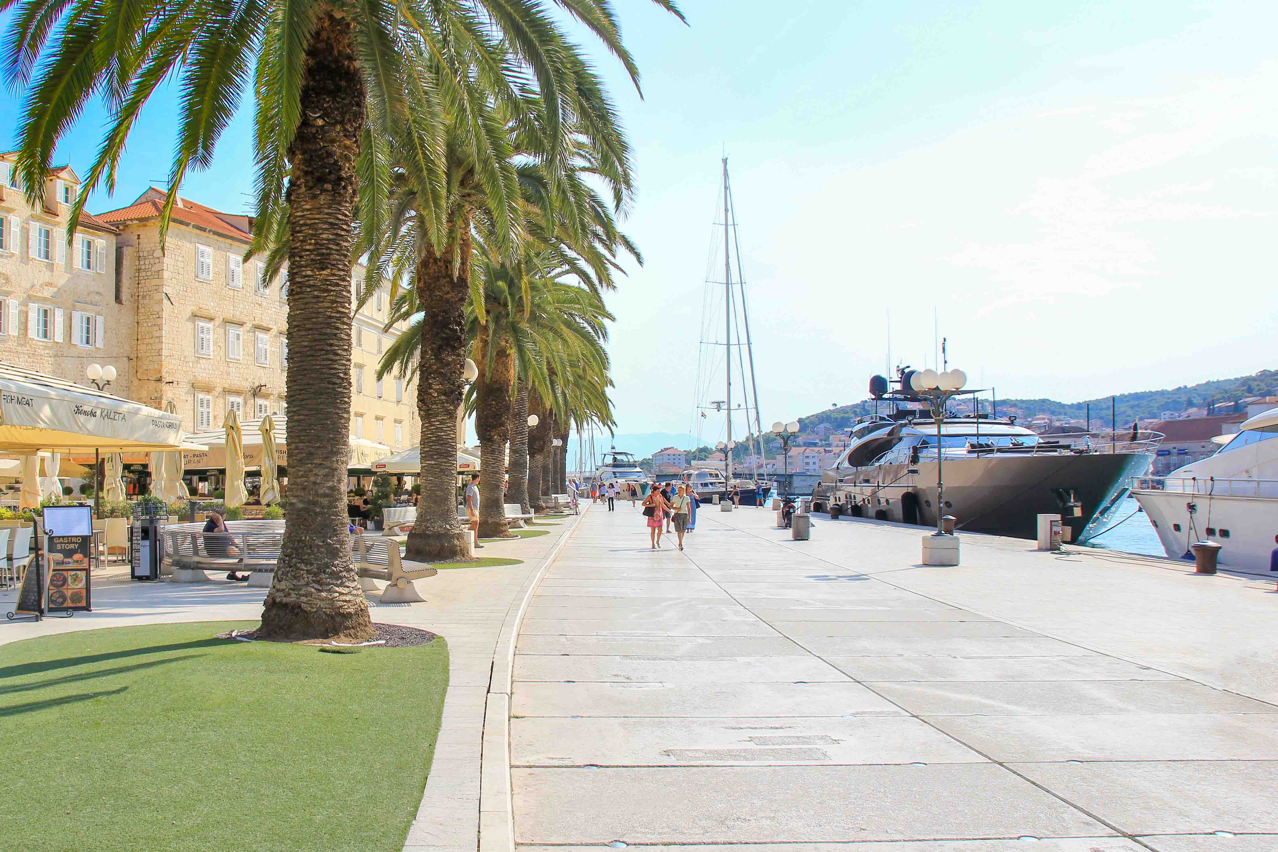 Like many harbor towns in Croatia, Trogir has a beautiful promenade. It is one of the most beautiful sights in the city center and one of the highlights of the coastal metropolis. This picturesque waterfront promenade is located directly in front of the old town and is hard to miss on a sightseeing tour. It is lined with restaurants and cozy cafés where you can enjoy a cool drink and marvel at the huge yachts moored in the harbor. The ambience with the Dalmatian stone houses, the tall palm trees and the sea is simply stunning and invites you to linger.