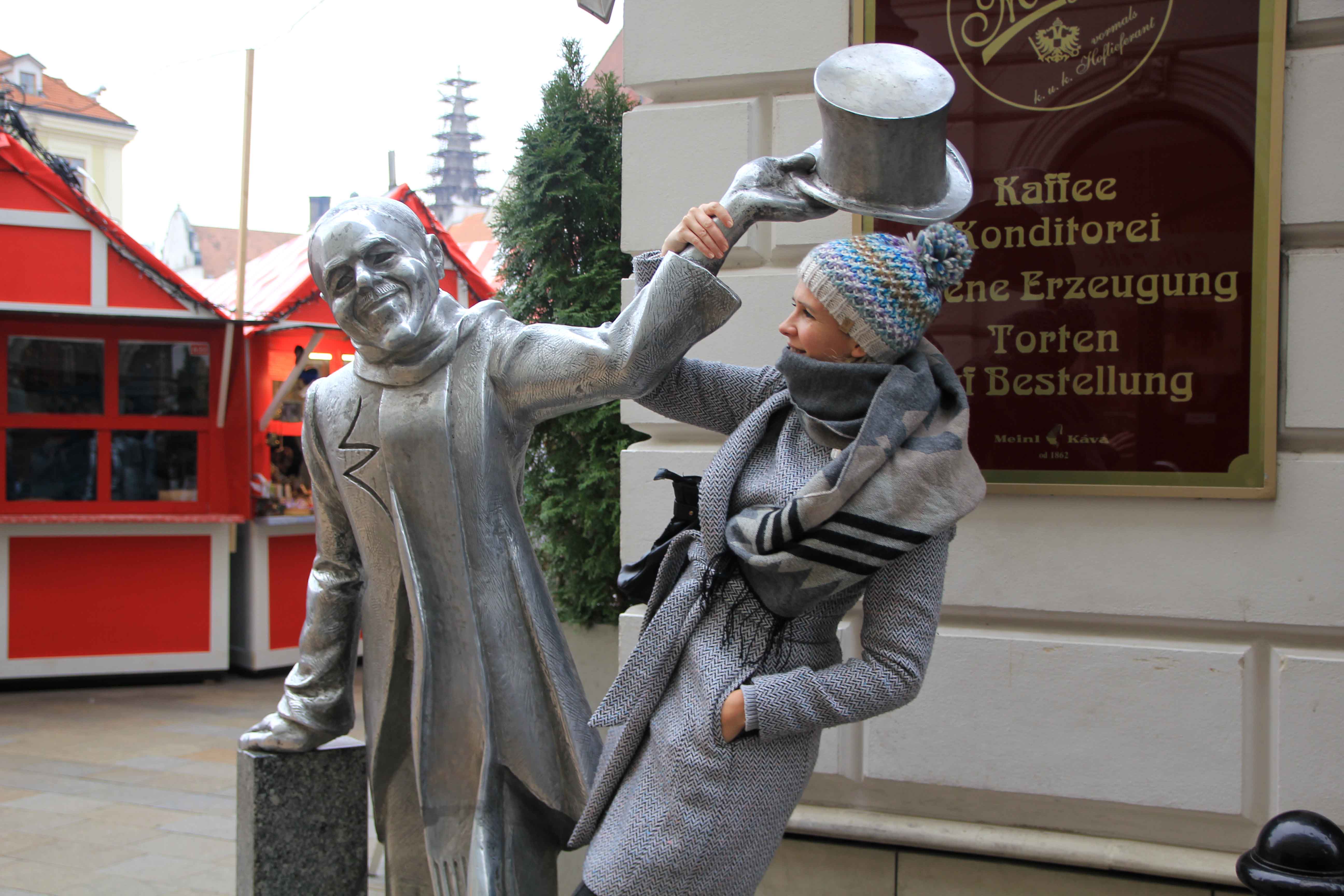 Probably the most photographed tourist attractions of Bratislava! You will find this famous sculptures all over the old town – near the Main Square. It was so much fun taking some pics with the Cumil, the Schone Naci and Napoleon.