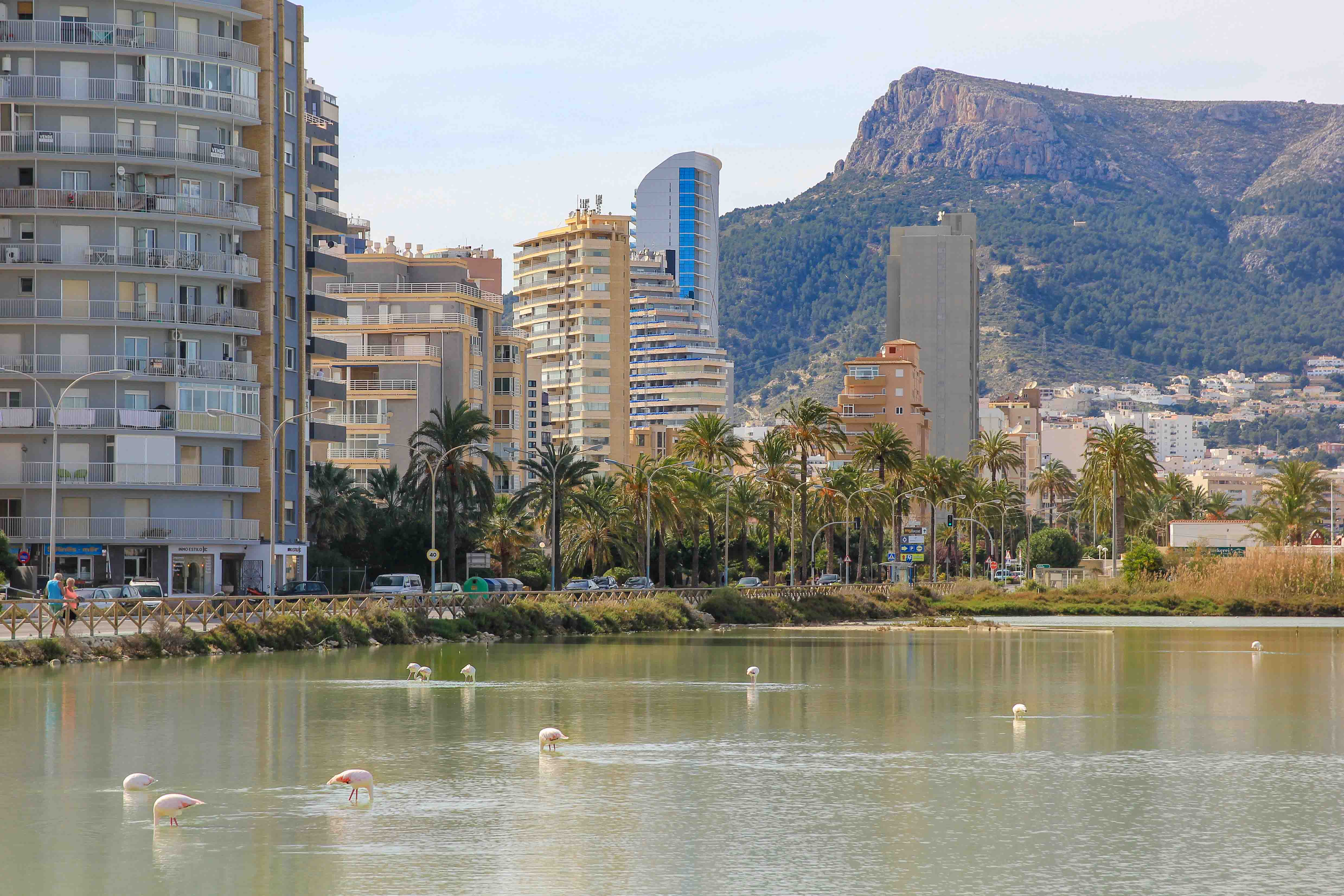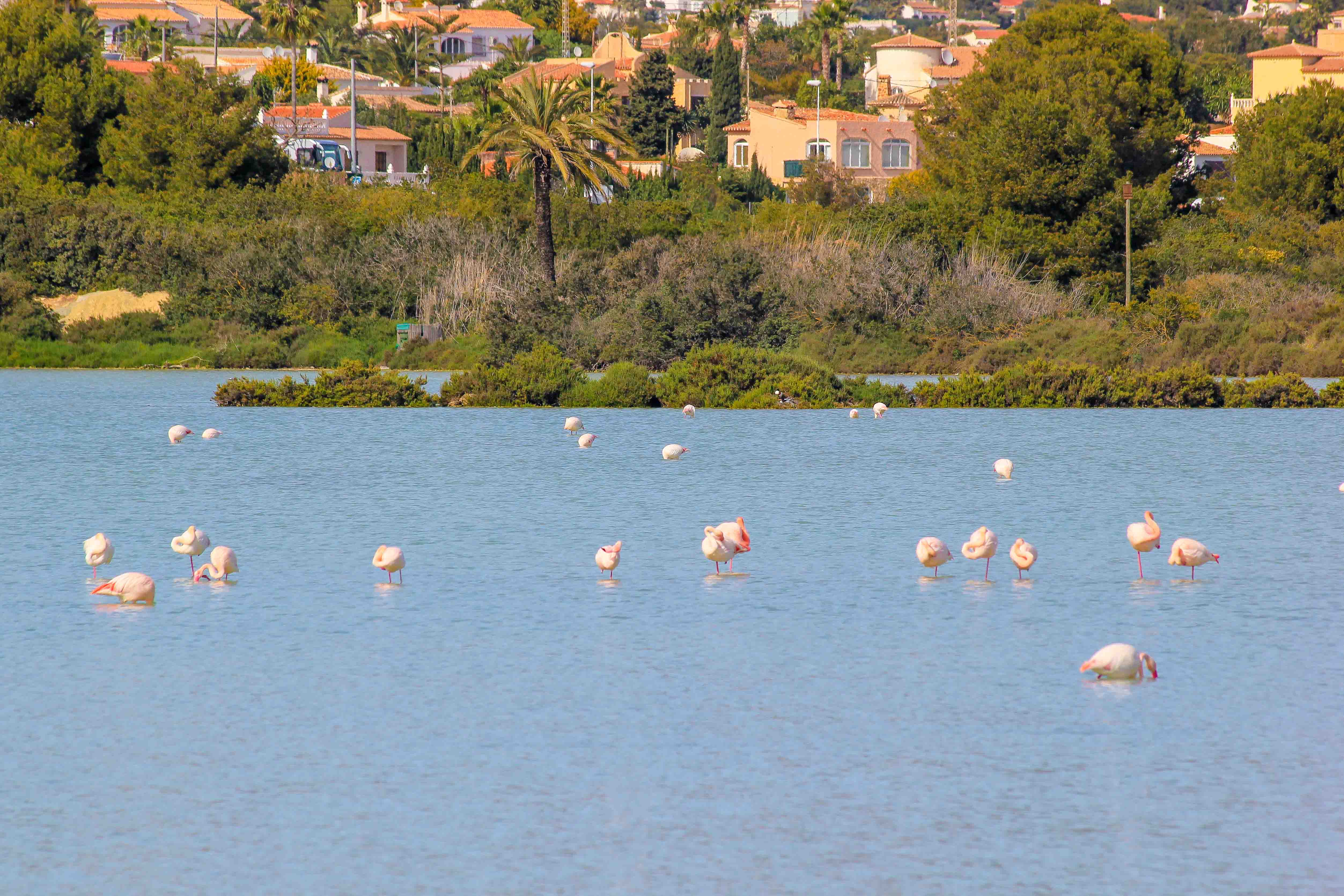 One of the most impressive places to visit in Calpe, which probably already dates back to Roman times, is the beautiful salt lake with its countless pink flamingos. Located in the middle of the city, this natural landscape serves as a resting place for numerous migratory birds. Visitors are amazed when they suddenly discover countless pink flamingos strolling through the water just a few meters away while they walk through Calpe.