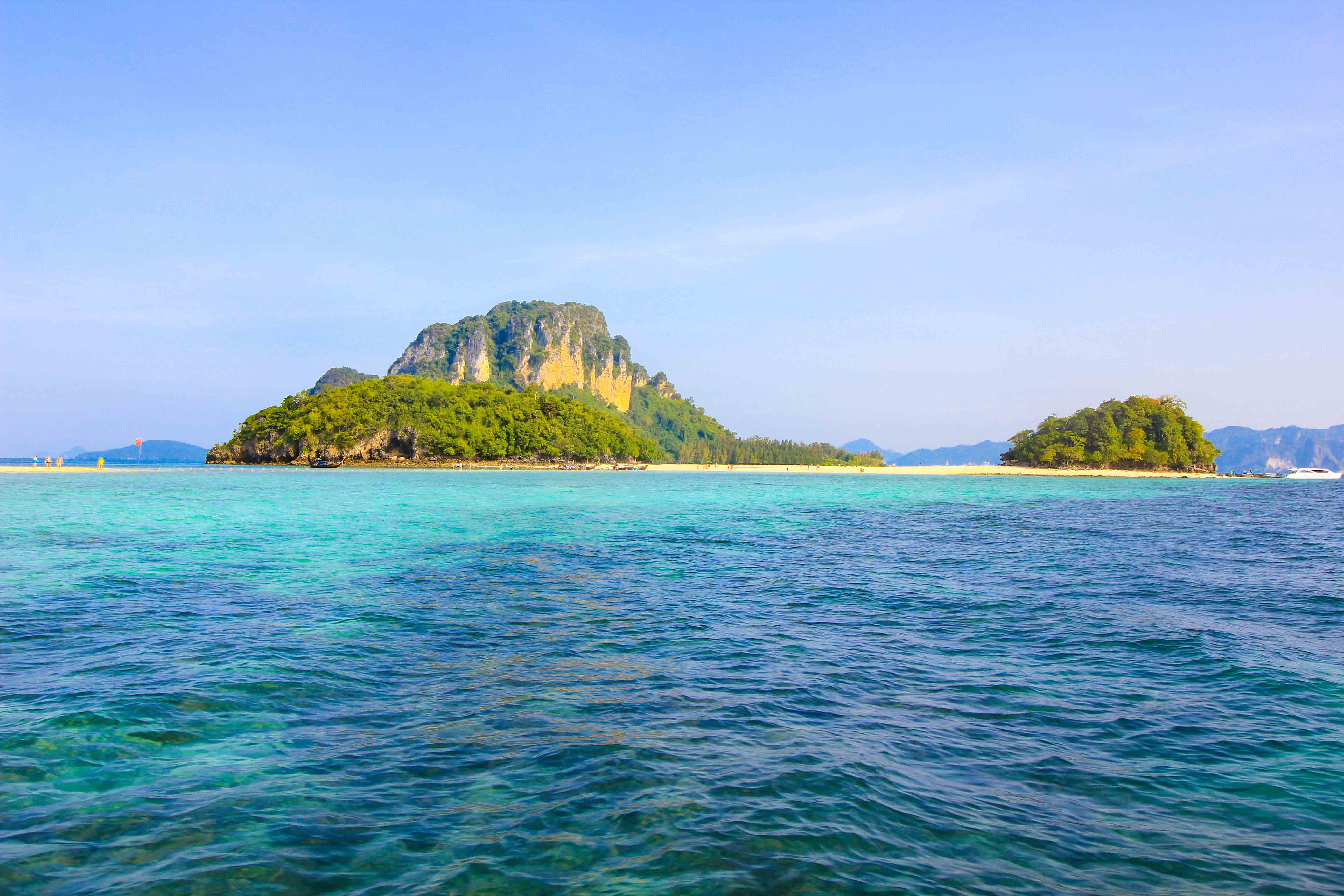 Also unique is Chicken Island’s white sandy beach. For many people, it is even considered one of the most beautiful beaches in Krabi. As you walk along the beach, you will find a few small trees and quiet shady spots that are perfect if you want to relax for a couple of hours. A special attraction of Chicken Island is the sandbar. At low tide, a sandbar forms between the island and the neighboring island of Tup. This makes it possible for visitors to cross from one island to the other without having to swim. Even eating and drinking is provided. There is a restaurant on the island that sells snacks and cold drinks. The trip with the typical longtail boat takes about half an hour and is a popular destination for excursions in Krabi.