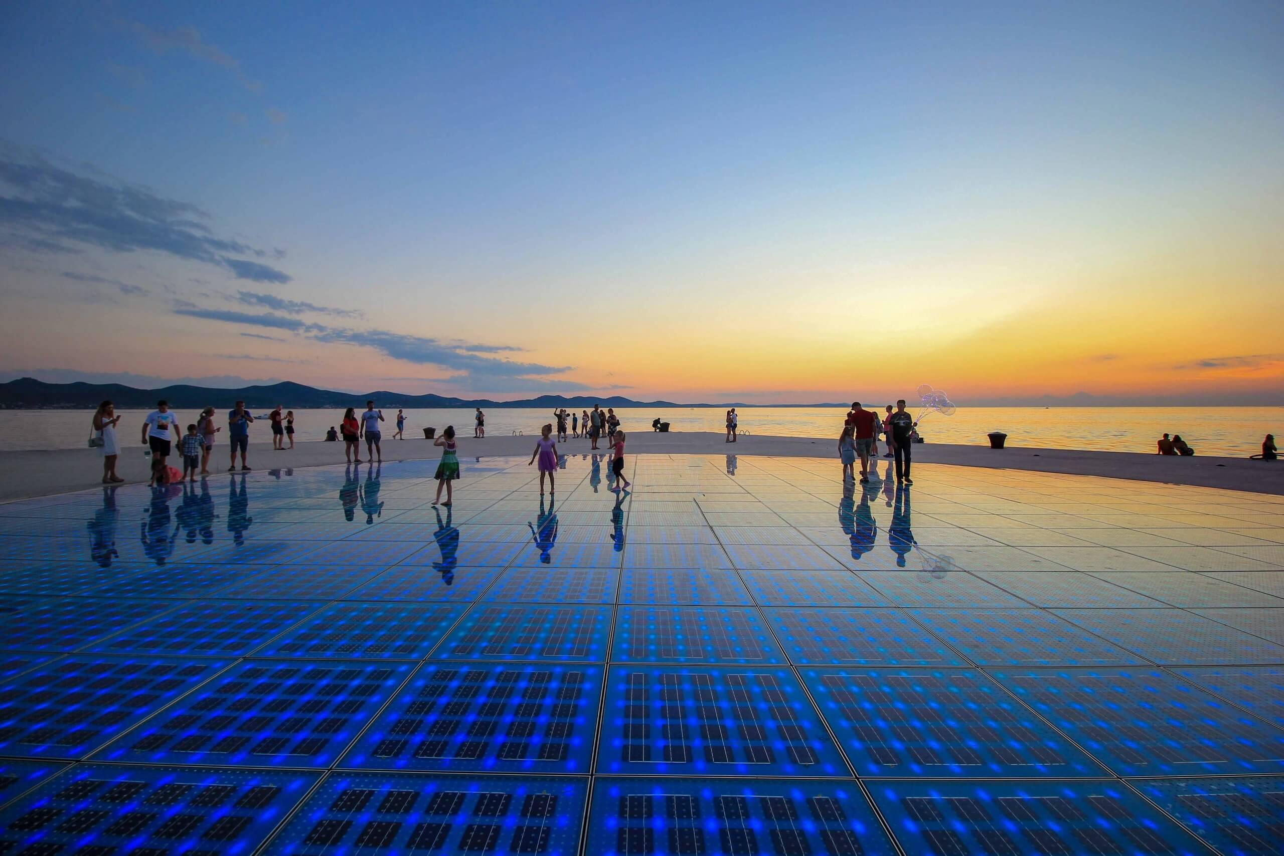A visit to the Zadar Sea Organ is probably one of the most unique things to do in Zadar! Opened in 2005, this unique attraction by Nikola Bašić was awarded the “European Prize for Urban Public Space” the very next year. In a magnificent setting, you can listen to the natural orchestra on the white steps along the coast. Uniquely, the beat of the waves produces the sounds of this experimental musical instrument. A great place to relax and swim during the day and enjoy the magnificent sunsets in the evening.