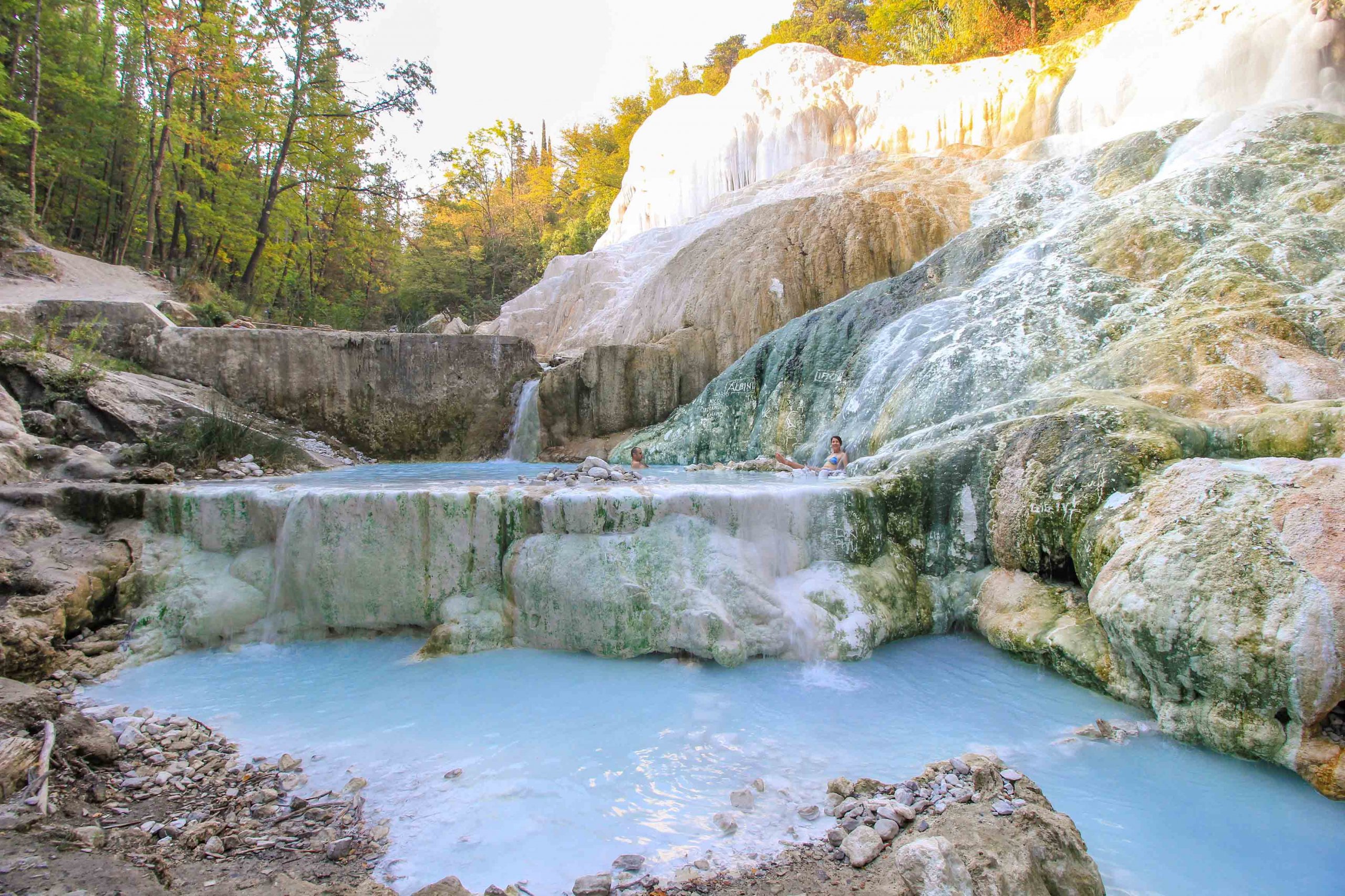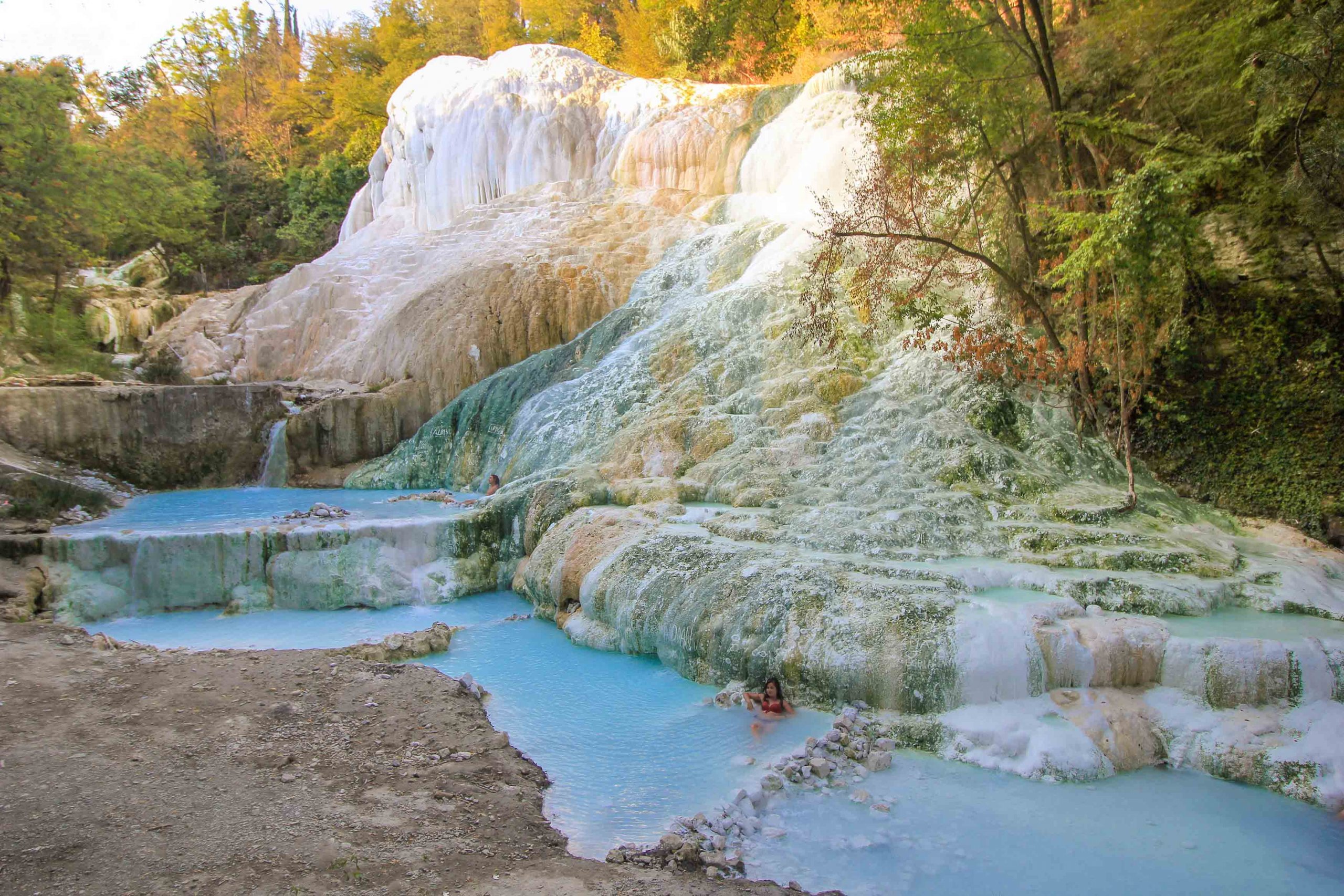 Die Therme Bagni San Filippo gilt als das älteste natürliche und zugleich von Menschen genutzte Heilbad der Welt, das direkt aus einer heißen Quelle gespeist wird. Gelegen in schon fast märchenhafter Kulisse, inmitten grüner dunkler Wälder, entspannt man sich in den blauen Becken eines warmen Flusses. Man vermutet sogar, dass hier bereits die Etrusker und die Römer gebadet haben. Die riesigen weißen Kaskaden mit den Sinterbecken sind ein wahrer Hingucker und formen ein schon fast surreales Ambiente.