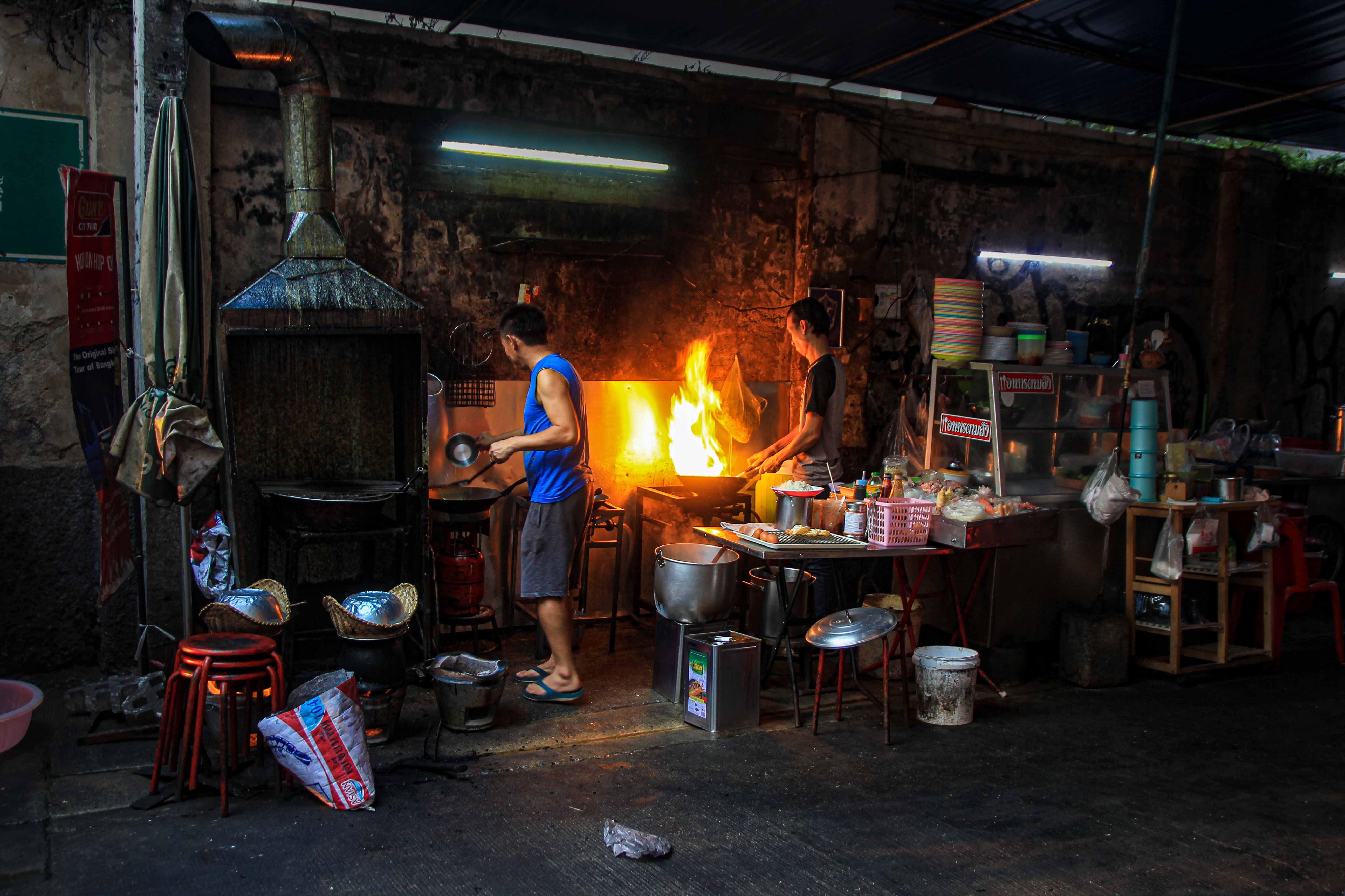 Essen ist in Bangkoks Chinatown allgegenwärtig, und so kann man gewissermaßen rund um die Uhr und an allen Ecken frisches Streetfood finden. Aber vor allem gegen Abend schießen die Garküchen wie Pilze aus der Erde. Hier wird gebrutzelt und gebraten, es zischt und Flammen schießen in die Höhe. Nebenbei ist es heiß, es stinkt nach Benzin und es ist laut. Überreizung der Sinne steht hier am Programm, und trotzdem, es gefällt. Bei einem Spaziergang entlang der Essens-Stände beeindruckt die Vielfalt an angebotenem Streetfood.