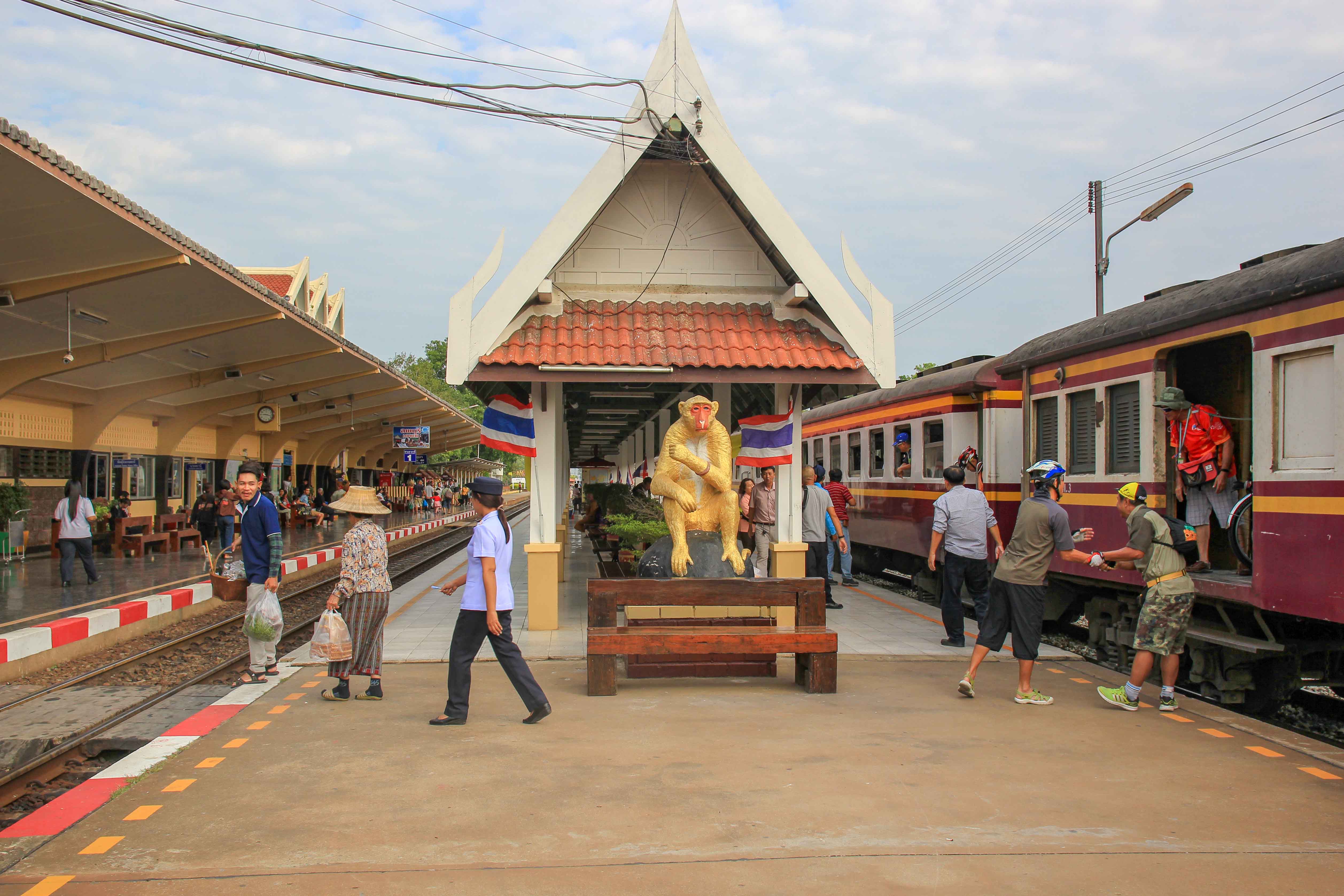 Ein Highlight der Strecke ist bei Lopburi. Hier fährt man direkt beim Affentempel vorbei und kann mit etwas Glück eine riesige Horde Äffchen beobachten. Wer Zeit hat, dem empfehlen wir einen Zwischenstopp in der Affenstadt einzuplanen. Schon direkt am Bahnhof wird man von einigen lustigen Affenfiguren begrüßt.