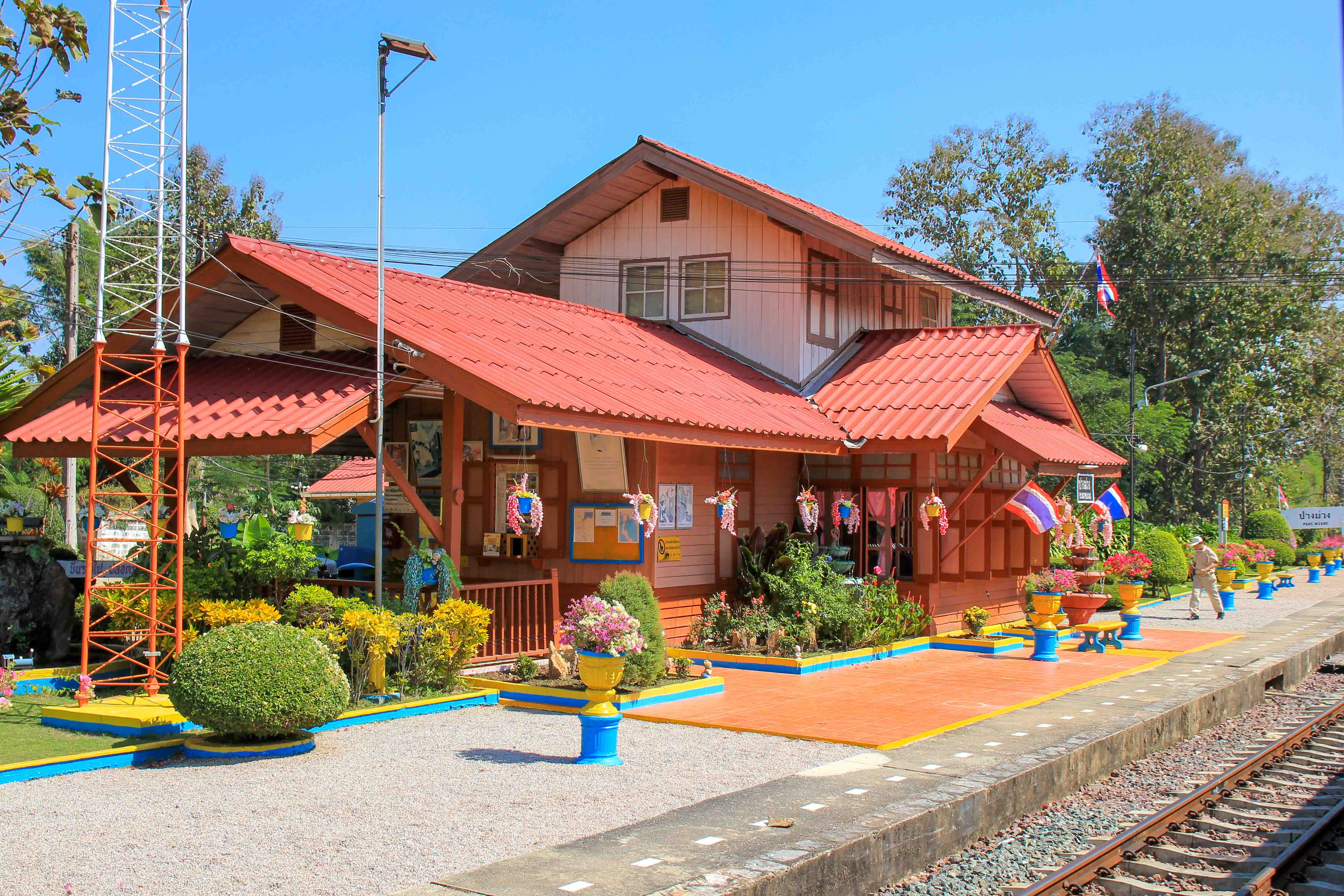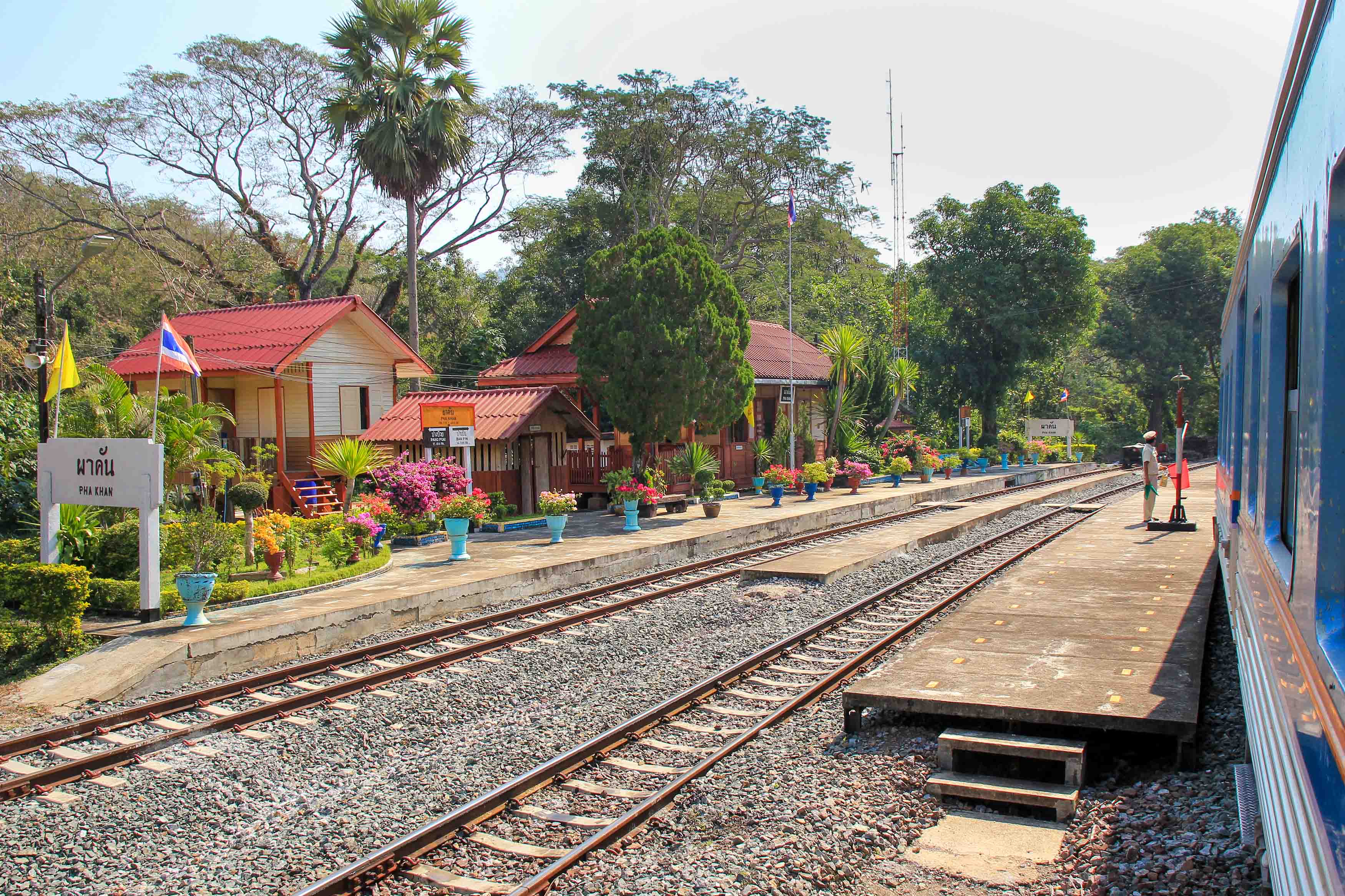 Die Zugfahrt beginnt in Bangkok am neuen Hauptbahnhof Bang Sue, auch als Bahnhof Krung Thep Aphiwat Central Terminal bekannt. Von hier starten seit 2023 alle wichtigen Zugstrecken, auch die Verbindung von Bangkok nach Surath Thani in den Süden. Wie man sich das Ticket bucht und wo man die aktuellen Fahrpläne findet, zeigen wir dir ein wenig später. Die Fahrt in den Norden Thailands ist landschaftlich richtig schön. Es geht vorbei an grünen Reisefeldern, an Äckern und durch Dschungellandschaften. Auffallend sind die vielen kleinen, hübschen Bahnhöfe der Provinzen. Bunt geschmückt und mit vielen Blumen zeigt sich hier jeder Bahnhof von seiner besten Seite.