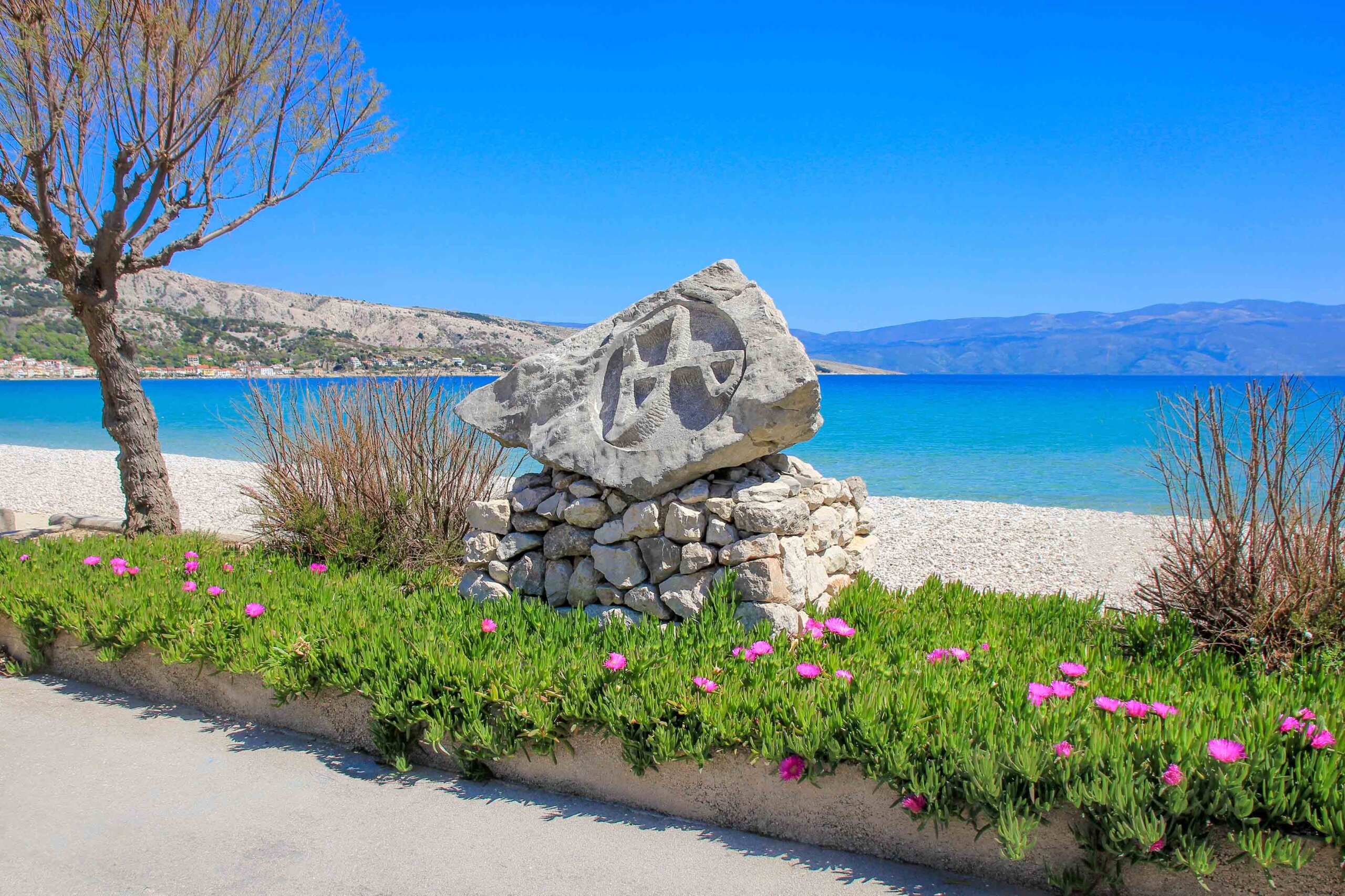 Der Glagolitische Weg ist eine äußerst interessante Attraktion in Baska. Im Urlaubsort und auch in der näheren Umgebung findest du verschiedene schöne Steindenkmäler in den 34 Buchstaben von A (Az) bis Ω (Omega) der historischen kroatischen Schrift „Glagoliza“. Sie ist die älteste Schrift der slawischen Völker und eine Besonderheit dieser Region. Angelegt wurde der Pfad 2006, um an das wichtige kulturelle Erbe, der Tafel von Baska, zu erinnern.