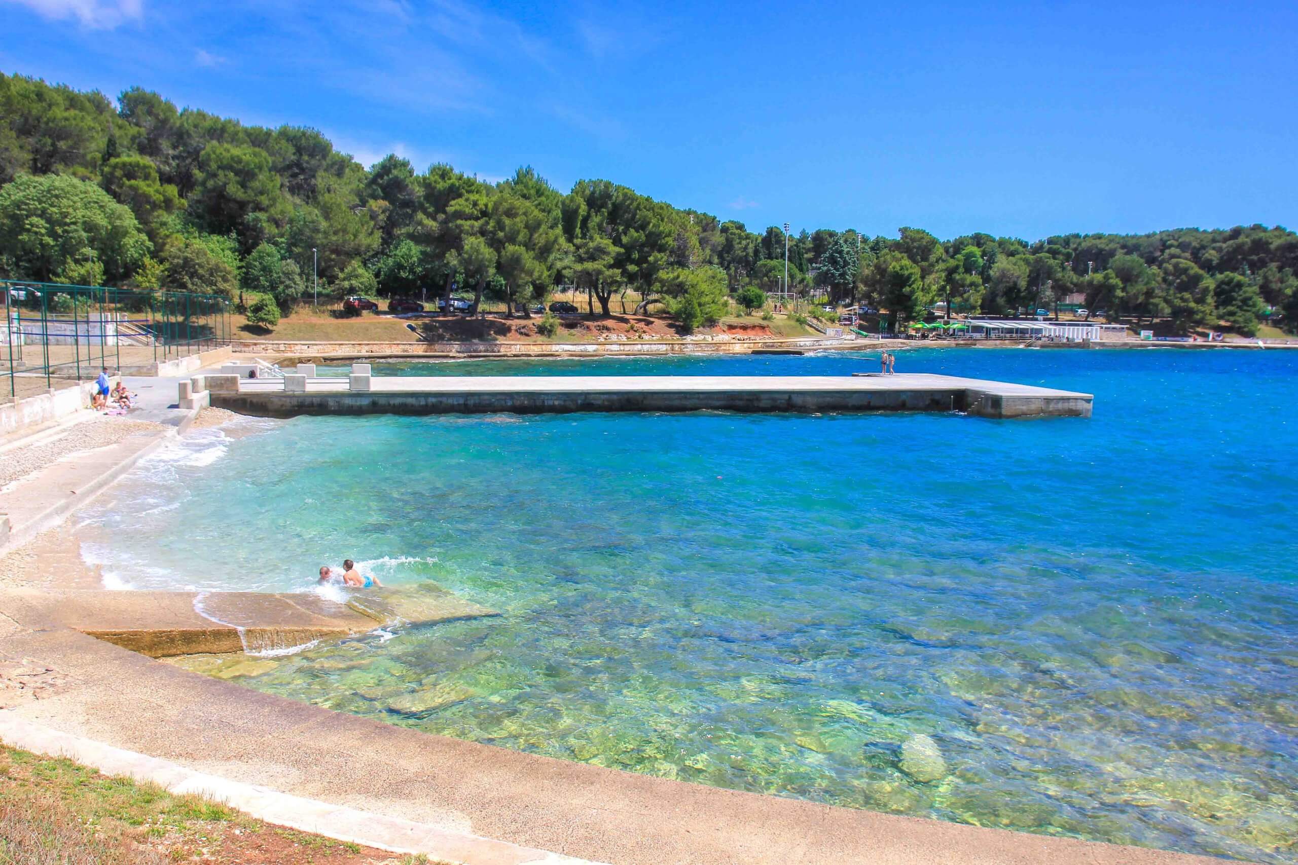 Ein sehr beliebter Strand ist der Beach Ambrela auf der Halbinsel Verudela, nur ein paar Kilometer von Pula Stadt entfernt. Das Meer leuchtet in den schönsten Blautönen und ist zudem glasklar und absolut sauber. Auch zum Schnorcheln eignet sich diese Bucht hervorragend, denn Unterwasser tummeln sich zahlreiche Fische. Außerdem kann man an diesem Küstenstreifen am Abend gigantische Sonnenuntergänge erleben. Direkt am Strand gibt es kaum Schattenplätze, jedoch am Rande der Bucht befinden sich schöne Pinienwälder, die kühlen Schatten spenden. Erfrischungen und Snacks gibt es in den tollen Beach-Bars, die etwas oberhalb liegen.