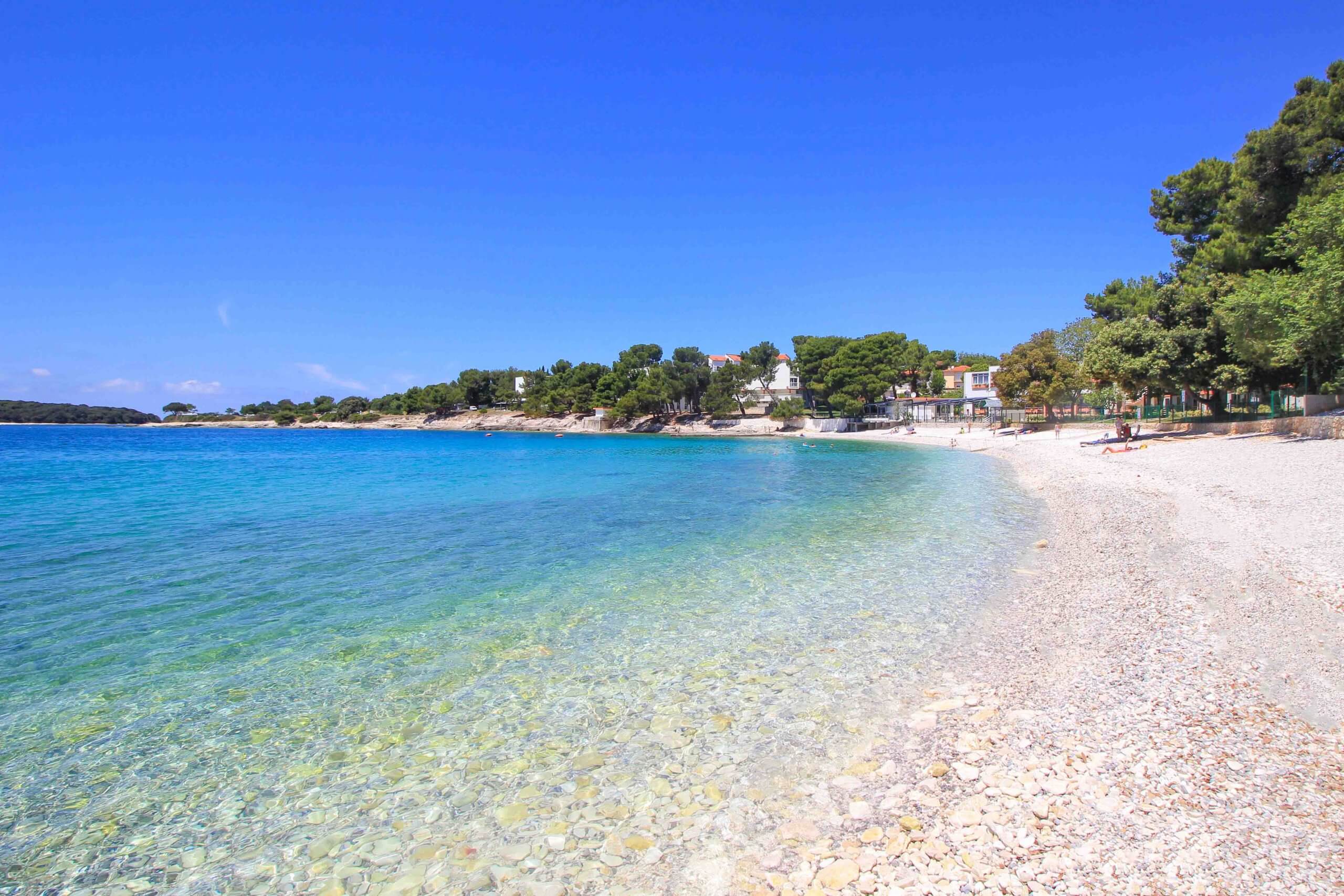 Ein Top-Strand bei Pula ist der Strand Histria, der sich südlich der Stadt auf der Verudela Halbinsel befindet. Bei einem Besuch dieser atemberaubenden Bucht staunt man über einen außergewöhnlich schönen Kieselstrand, der mit fantastischer Wasserqualität und mit einem einzigartigen Urlaubsambiente punktet. Wer mag, der mietet sich am Strand Schirm und Liege, aber auch die wunderbar duftenden Pinien am Ende der Bucht bieten herrlichen Schatten an heißen Sommertagen. Dahinter befindet sich eine große Sportanlage inklusive Tennis, Minigolf, Tischtennis und Golf-Möglichkeiten! Ein fantastischer Strand für einen Urlaub am Meer.