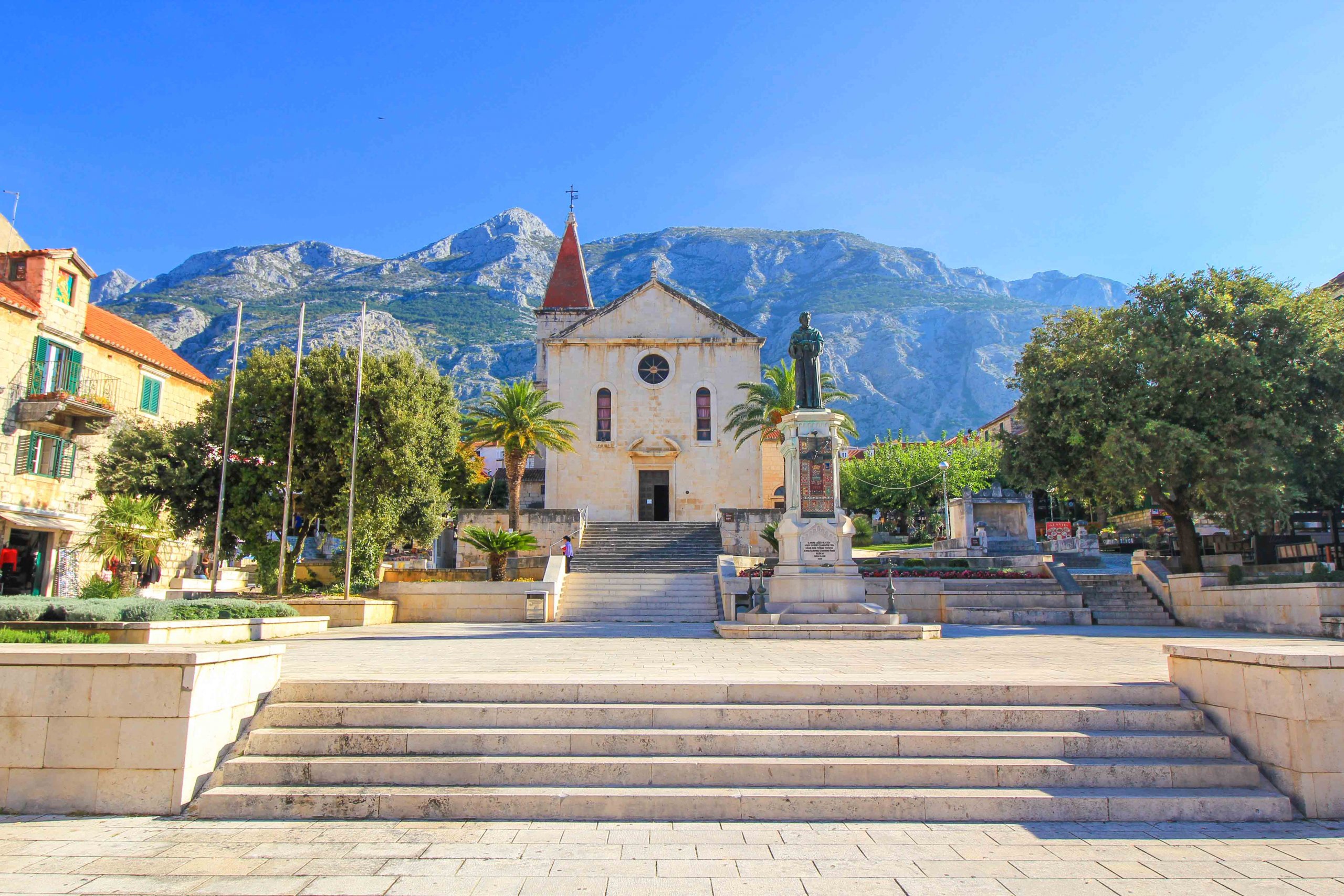 Die Stadt Makarska liegt 18 Kilometer von Brela entfernt, und ein Besuch der schönen Altstadt und deren Sehenswürdigkeiten gehört schon fast zum Pflichtprogramm. Die hübsche Altstadt kann man locker zu Fuß erkunden, und dabei malerische Gässchen wie die hübsche Straße Kalelarga oder den berühmten Platz Kacicev Trg entdecken. Auch die Uferpromenade ist absolut sehenswert, und zahlreiche gemütliche Lokale bieten einen herrlichen Blick auf den Hafen.