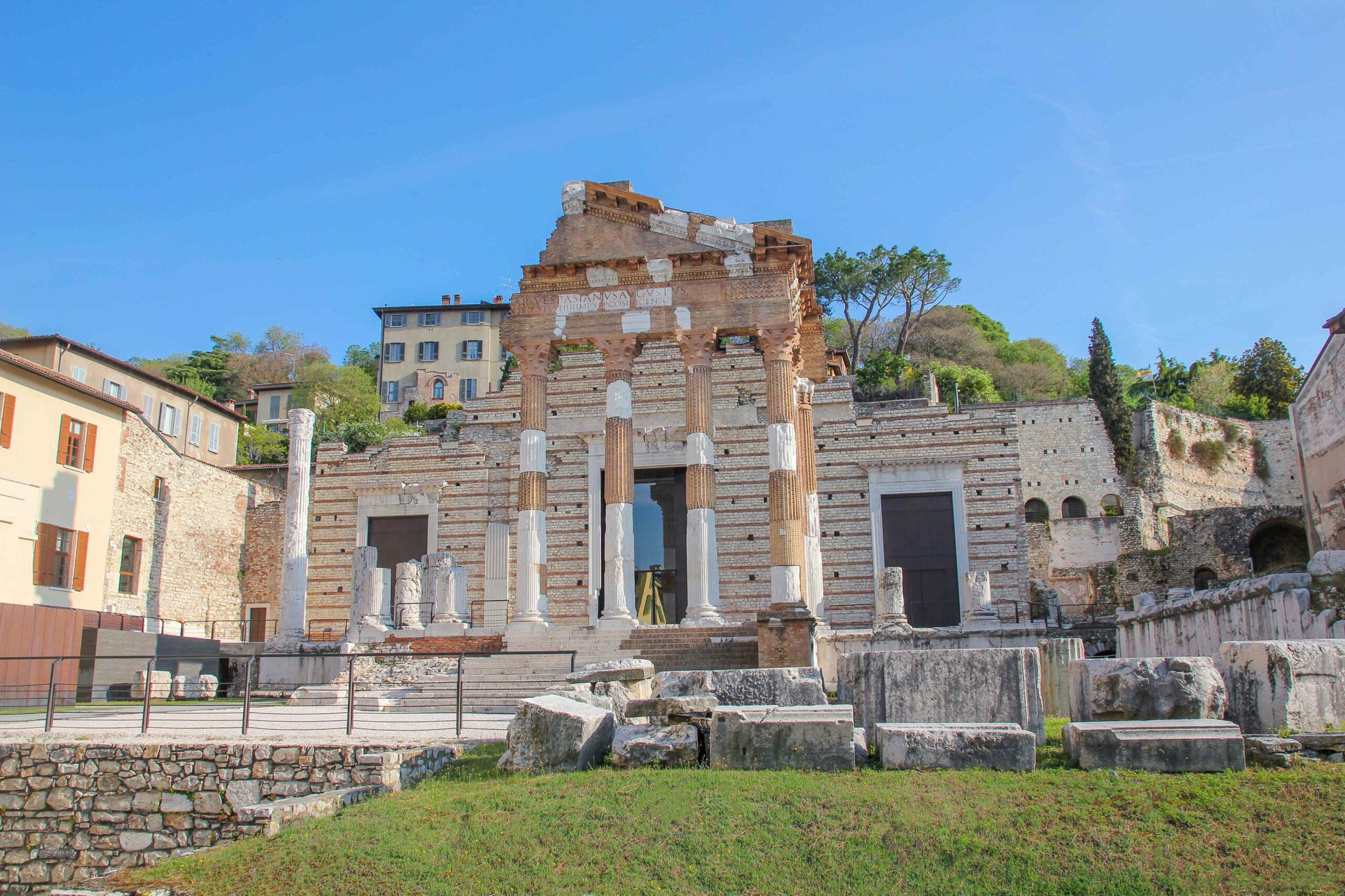 Der Archäologische Park, auch als Capitolium bekannt, zählt zu den bedeutendsten Sehenswürdigkeiten von Brescia und wurde bereits im Jahr 2011 auf die Liste der UNESCO-Weltkulturerbe-Stätten aufgenommen. Dieser befindet sich im Stadtzentrum an der Museumsstraße am Fuße des Cidneo-Hügels und kann somit locker zu Fuß erreicht werden. Sie ist die größte römische Ausgrabungsstätte in ganz Norditalien, und ein Besuch ist ein Erlebnis. Zum Museumskomplex gehören viele spektakuläre Highlights, darunter das gesamte archäologische Areal mit der Piazza del Foro, dem Capitolium, dem Heiligtum aus republikanischer Zeit und dem antiken Theater. Auch die berühmte römische Basilika und der monumentale Komplex San Salvatore–Santa Giulia zählen dazu.