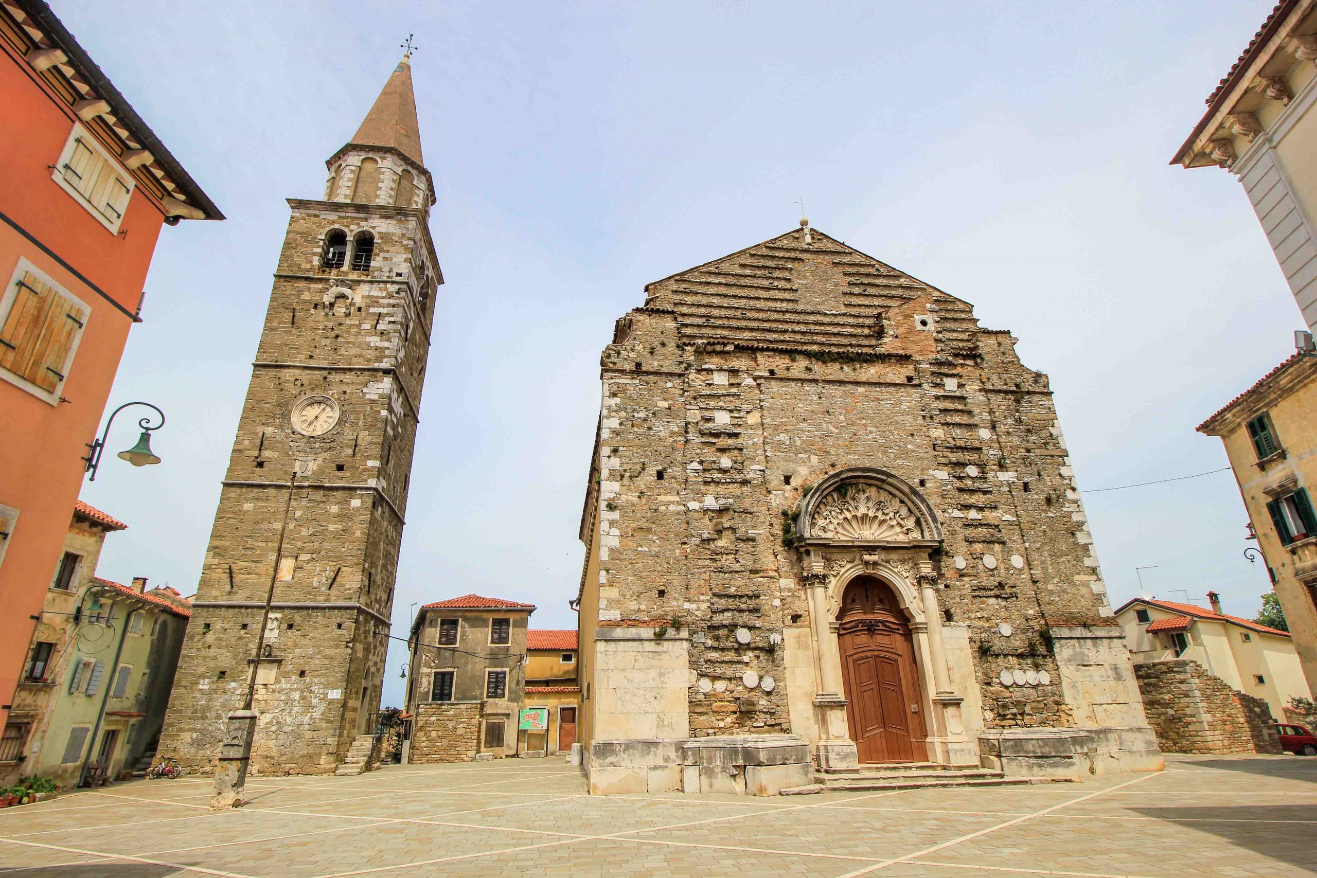 Ein weiteres Schmuckstück der Altstadt von Buje ist der malerische Kirchplatz. Bei einem Bummel fühlt man sich hier der Zeit zurückversetzt. Die uralten Steinhäuser, die historischen Wappen der ehemaligen Herrscher, die man an jeder Ecke des Platzes findet und die pompöse Steinkirche zaubern ein ganz einmaliges, mystisches Ambiente. Hier befindet sich zudem das ehemalige Rathaus aus dem Jahr 1878 im neoklassischen Stil, an dem sich ein steinerner Markuslöwe befindet. Sehenswert ist auch der venezianische Patrizier-Palast, der bereits im Jahr 1485 erstanden ist.