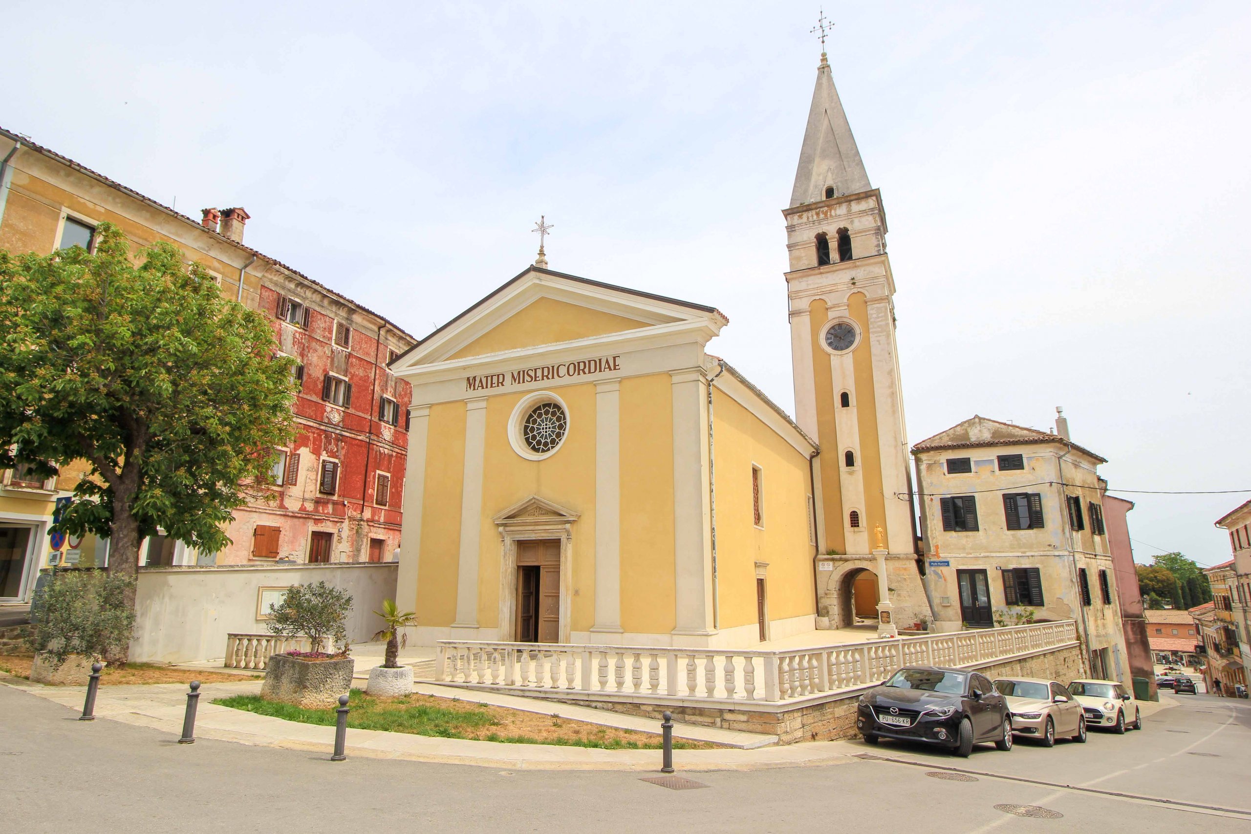 Die Kirche der Hl. Maria der Barmherzigen ist eine weitere hübsche Attraktion von Buje. Diese gelbe Wallfahrtskirche aus dem 15. Jahrhundert befindet sich direkt am Freiheitsplatz am Rande der Altstadt. Gleich daneben befindet sich der Glockenturm aus dem 17. Jahrhundert und das Ethnographische Museum der Stadt. Im Inneren der Kirche entdeckt man zudem richtig wertvolle Malereien und Kunstwerke. Allen voran die Skulptur der Maria der Barmherzigen, die eine der schönsten Holzstatuen in Istrien darstellt.