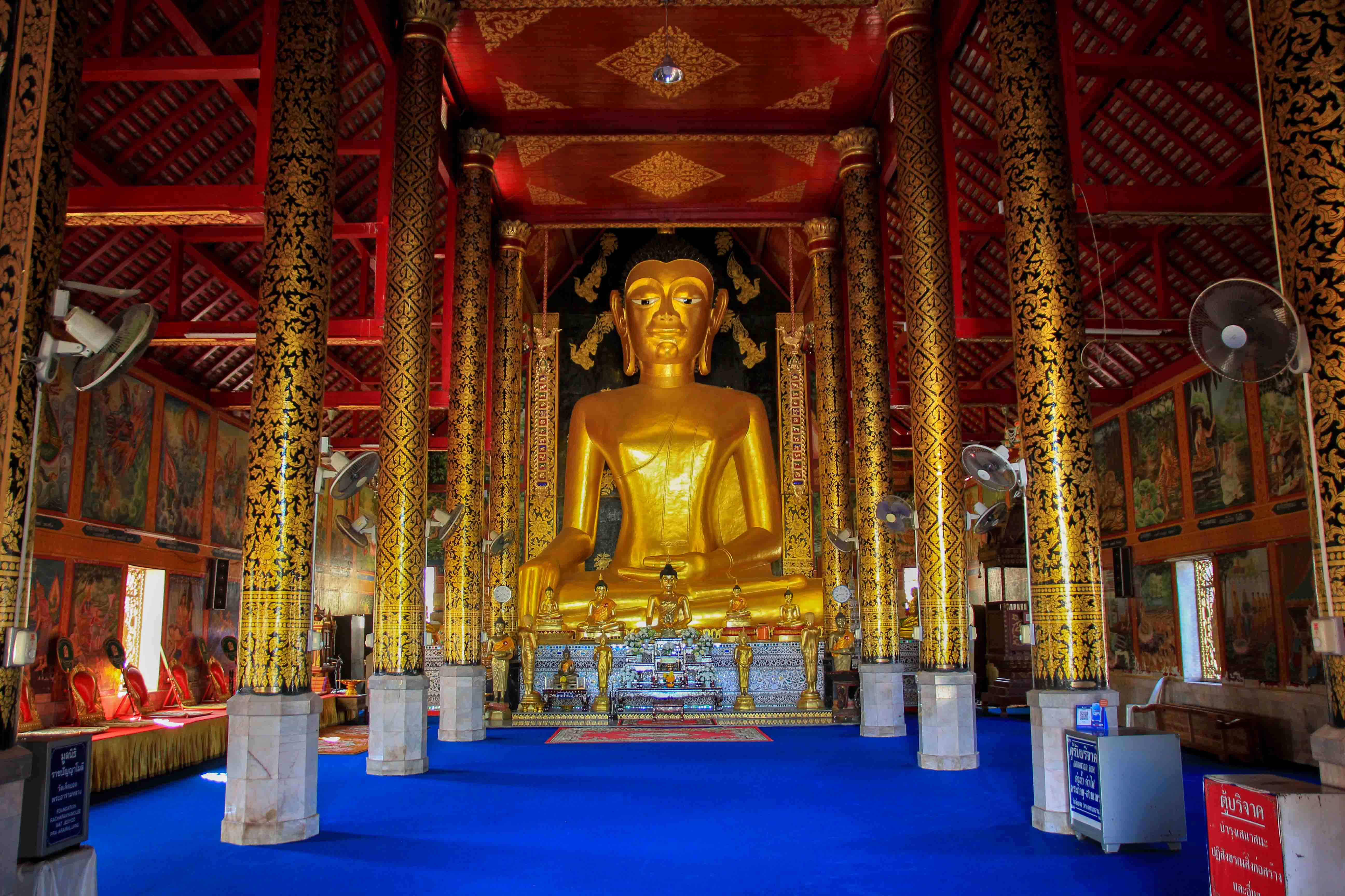 Der wunderschöne Wat Jed Yod liegt im Stadtkern von Chiang Rai, und zwar südlich vom goldenen Clock Tower. In diesem eher wenig-touristischen Tempelgebäude findet man viel Ruhe und Entspannung. Besonders beeindruckend ist die große wunderschöne goldene Buddha-Statue, welche sich direkt im Hauptgebäude befindet. Hier kann man in aller Ruhe die Seele baumeln lassen und die einzigartige Stille genießen.