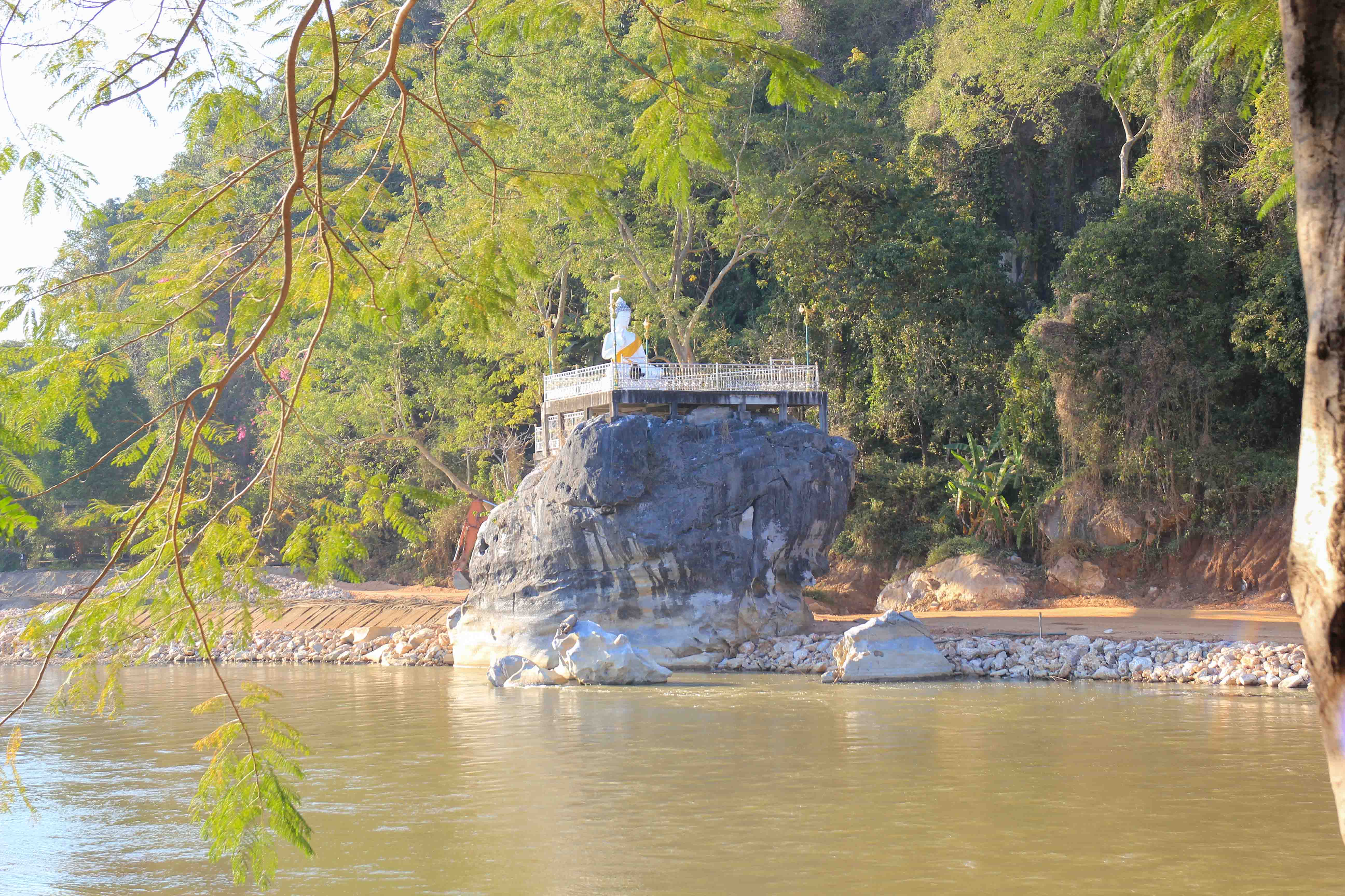 Ein weiterer Tempel abseits der typischen Touristenpfade ist der Wat Tham Phra. Er liegt wunderschön direkt am Flussufer vom Kok River und kann mit dem Fahrrad oder dem Roller erreicht werden. Der Buddha-Stein am Fluss markiert den Eingang zum Tempel. Das Tempelinnere befindet sich in einer Höhle, wo sich Tausende von Fledermäusen tummeln und man mit etwas Glück Mönche bei ihren Gebeten beobachten kann.
