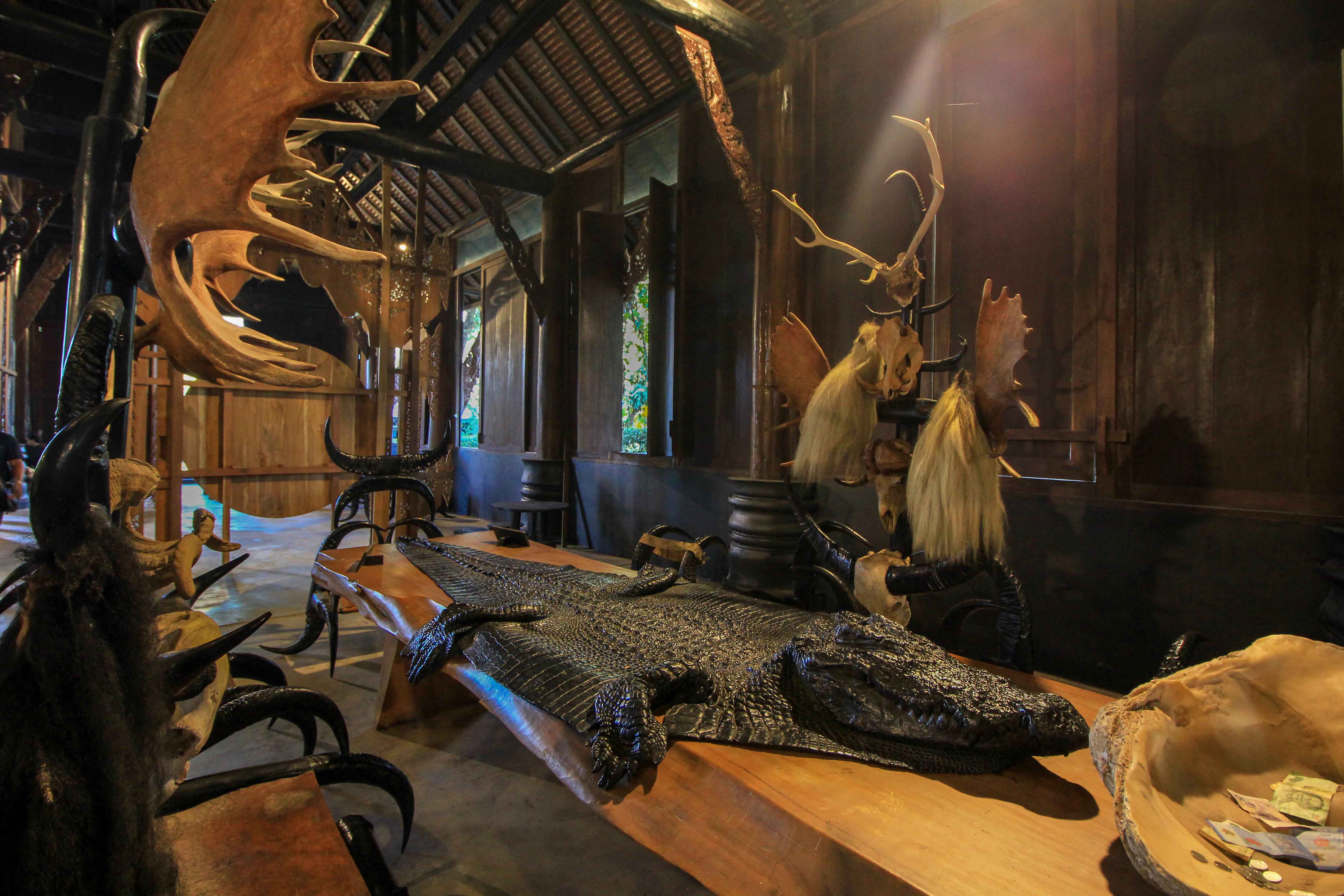 Eine der interessantesten Attraktionen in Chiang Rai ist der Schwarze Tempel, besser bekannt als das Black House oder Baan Dam Museum. Diese Sehenswürdigkeit ist kein buddhistischer Tempel, sondern ein Projekt des Künstlers Tahwan Duchanee, der sich zu seinen Lebzeiten den Facetten des Todes widmete. Bei einem Rundgang durchs Freilichtmuseum, welches aus vielen verschiedenen schwarzen Häusern besteht, besichtigt man zahlreiche mystische Figuren, Skulpturen und Gegenstände. Was wir jedoch gemerkt haben: Der Besuch ist nichts für schwache Nerven, denn die teils recht bizarren Ausstellungsstücke sind fast alle aus tierischen Überresten.