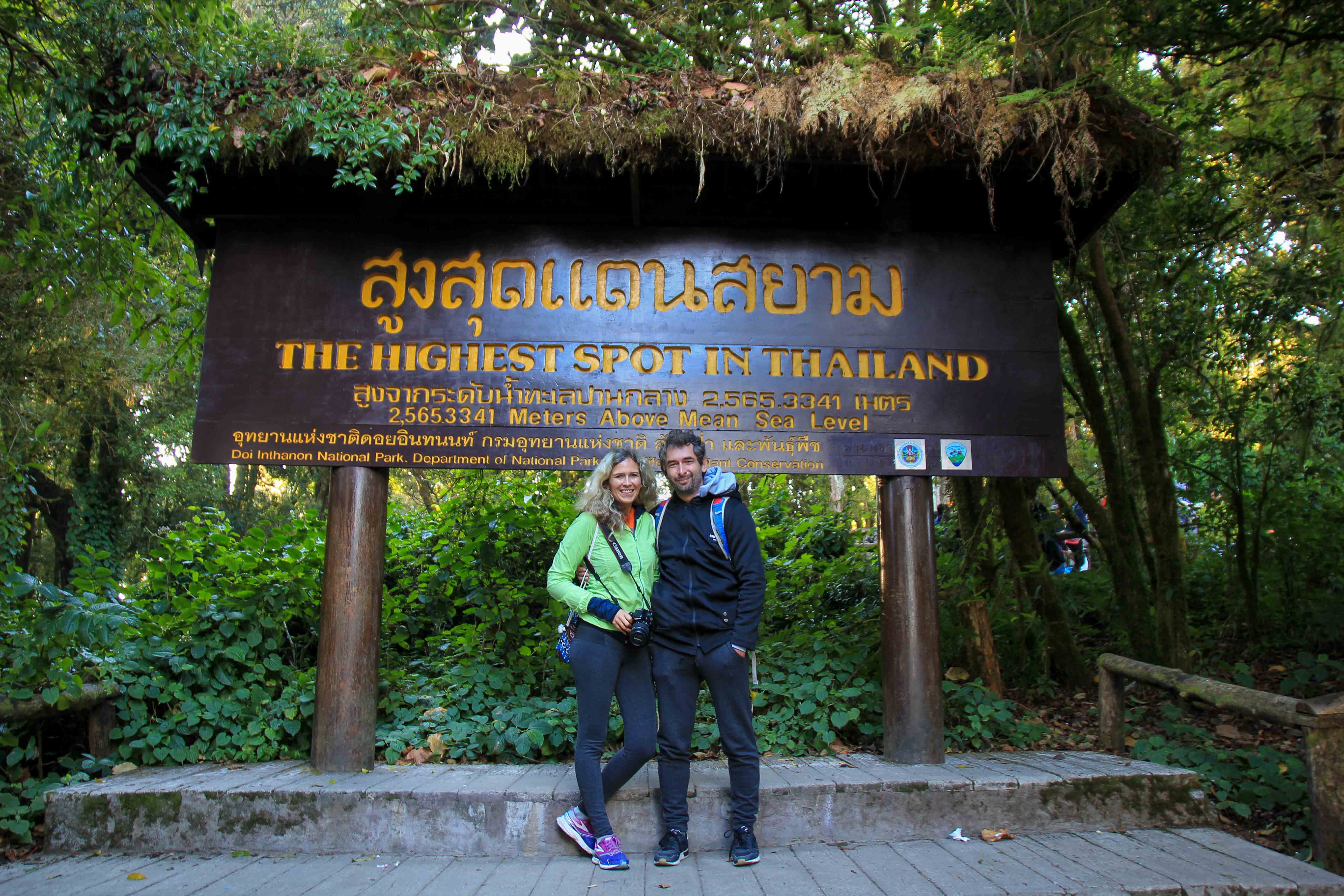 Der Gipfel des Doi Inthanon mit 2.565 Metern Höhe ist der höchste Punkt von Thailand. Hier oben befindet sich auch der kühlste Punkt des Landes, bei dem sich Einheimische gerne mal für ein Erinnerungsfoto ablichten lassen. Ganz ohne Anstrengung erreicht man den Gipfel quasi mit dem Auto, welcher sich circa 50 Kilometer vom Haupteingang befindet. Hier oben angekommen, kann man auch eine kleine Gipfelrundwanderung durch den Dschungel unternehmen. Beim Wandern genießt man die frische, kühle Luft und einen hübschen Märchenwald mit seinem kleinen Tempel.