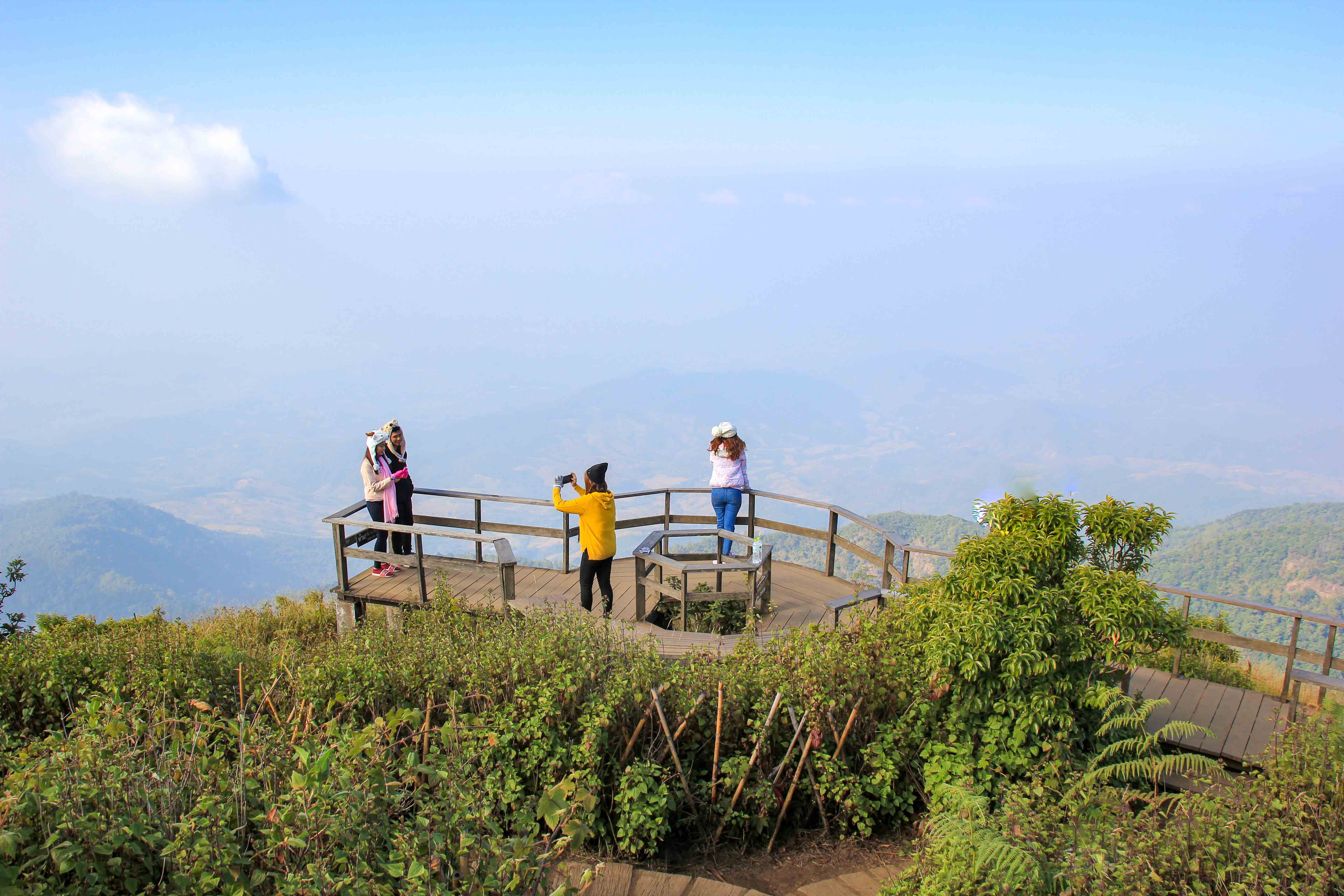 Etwas anspruchsvoller, aber trotzdem recht einfach, ist die Wanderung am Kaew Mae Pan Nature Trail. Dieser ca. 3 Kilometer lange Rundweg beginnt an der Hauptstraße, am Parkplatz vom Kew Mae Viewpoint, welchen die meisten bereits am Morgen beim Sonnenaufgang besuchen. Bei dieser Rundwanderung geht es durch einen dichten Wald, vorbei an einem traumhaften Wasserfall, und als Highlight erreicht man eine Aussichtsplattform, von der man einen grandiosen Ausblick über das Gebirge hat. Die Wanderung muss von einem Führer des Hmong-Stammes begleitet werden, welcher dir viel Interessantes über den Nationalpark, als auch über Flora und Fauna erklären kann. Der Guide kostet 220 Baht und kann mit mehreren Personen geteilt werden.