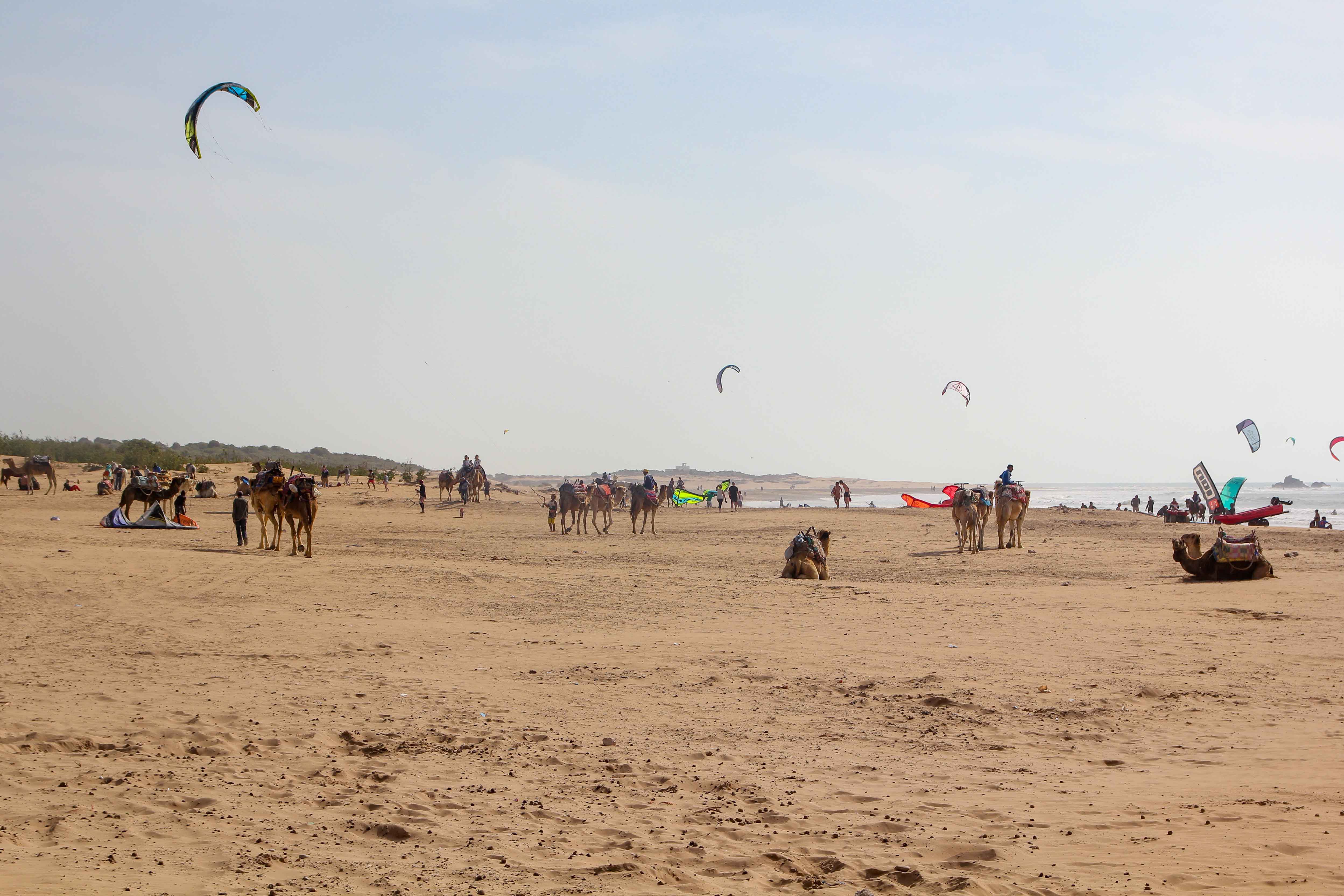 Der Strand von Essaouira ist ein idealer Ort zum Relaxen, aber auch Aktivitäten wie Surfen, Kitesurfen, Reiten und Kamel-Touren werden zu günstigen Preisen angeboten.