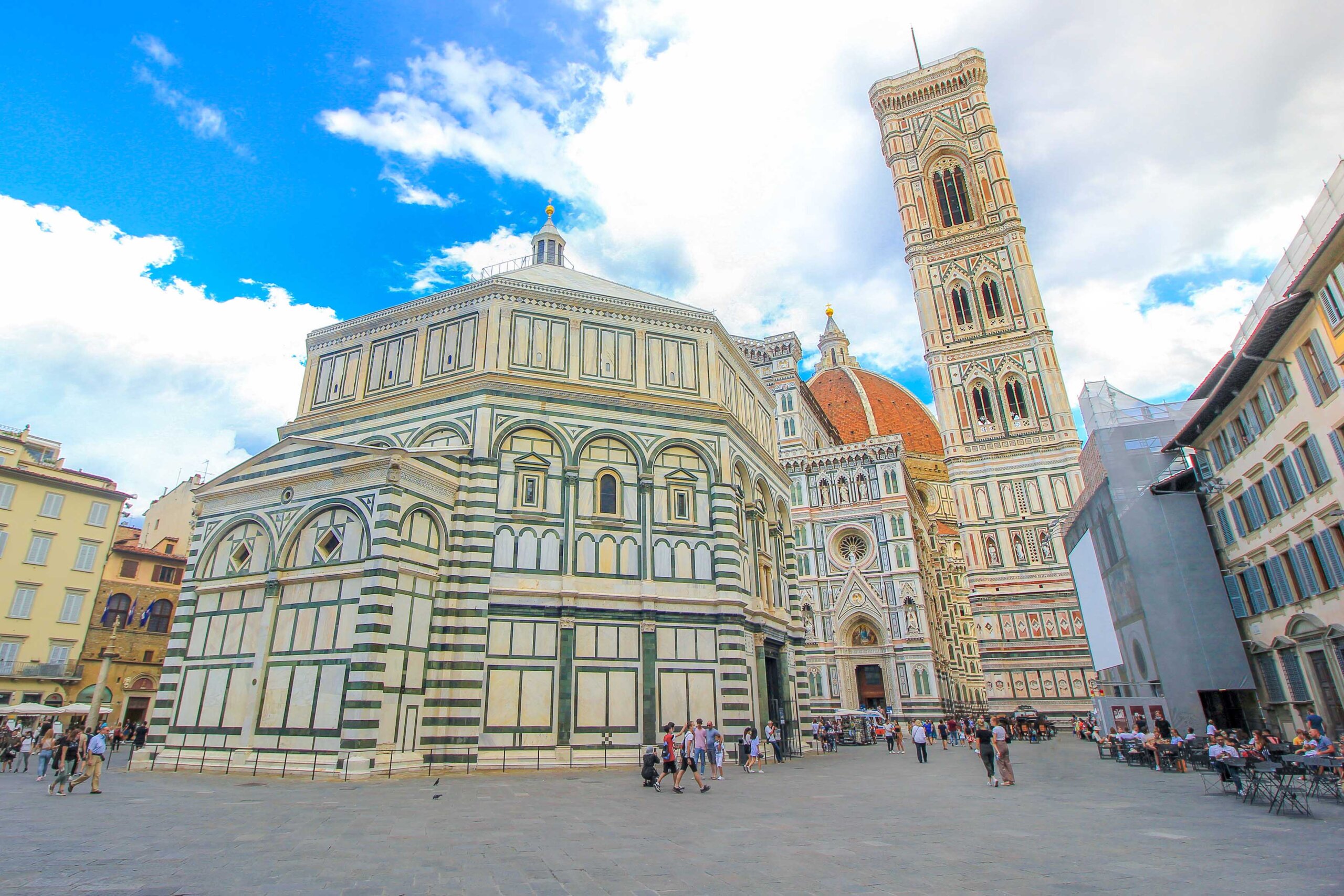 Im Komplex der Kathedrale kann man gleich mehrere Attraktionen erkunden. Neben dem imposanten Dom kannst du auch die riesige Kuppel von Brunelleschi und auch den hohen Glockenturm von Giotto erklimmen. Auch das angrenzende Baptisterium kann besichtigt werden.