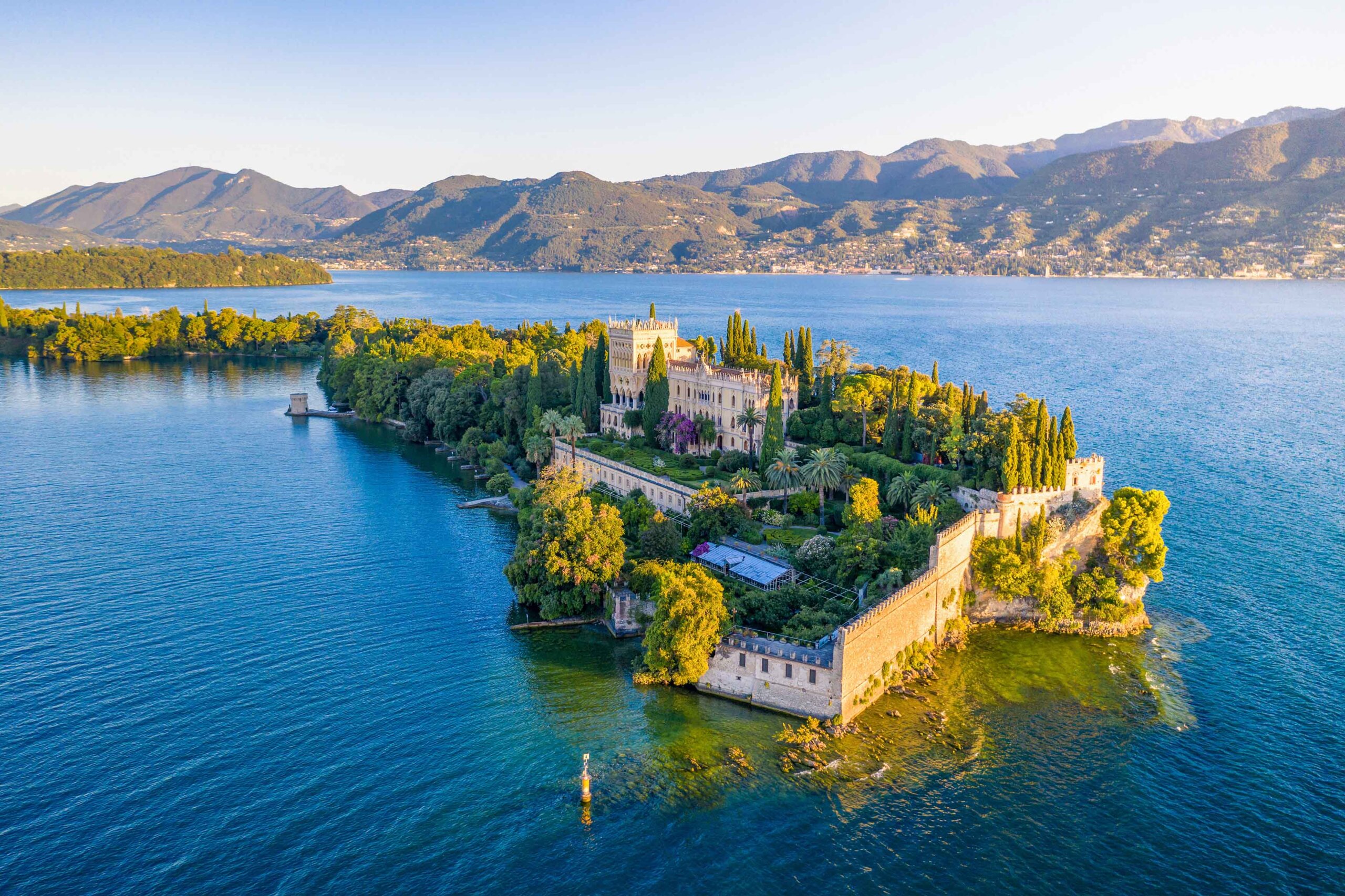 Die Isola del Garda ist nicht nur die größte Insel im Gardasee, sie gehört auch zu den schönsten Sehenswürdigkeiten der Urlaubsregion. Ihre Geschichte geht bereits zurück in die Zeit der Römer, als sie als Ort der Vergnügungen bekannt war und später als „Insel der Mönche“ geführt wurde. Heute ist die Insel im Besitz der Familie der Grafen Cavazza und besticht vor allem mit einer historischen Villa, die im neugotisch-venezianischen Stil im frühen 20. Jahrhundert erbaut wurde. Einfach zum Verlieben sind die Gärten der Villa, die mit exotischen Pflanzen, gepflegten Terrassen und einer atemberaubenden Aussicht auf den See begeistern.