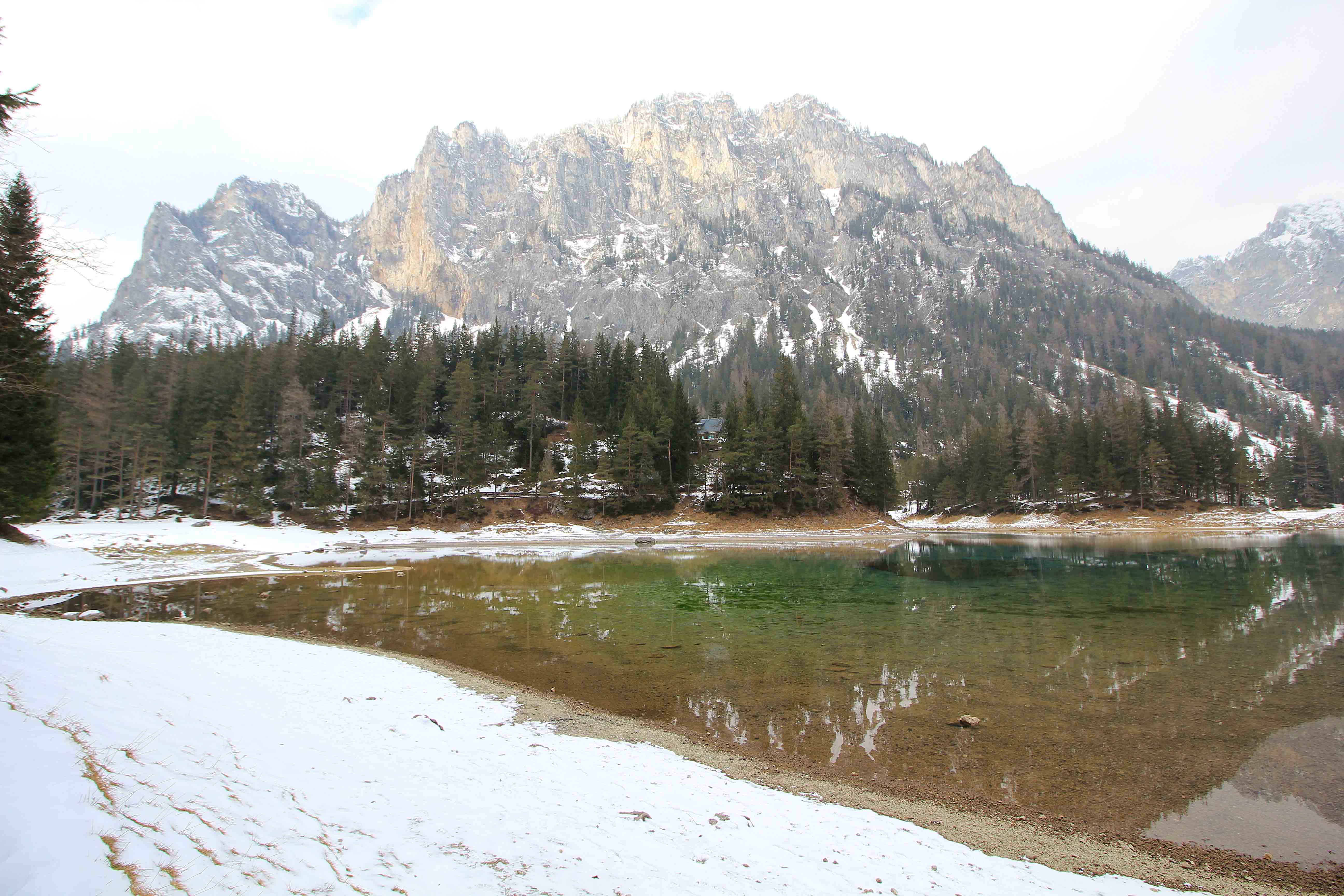Im Winter kehrt am Grünen See Ruhe ein. Die malerische Region verwandelt sich in eine traumhafte, von Schnee bedeckte, karge und klare Winterlandschaft. Die Touristen bleiben dann eher aus, und es wird richtig romantisch und idyllisch. Eine Mischung aus eisiger Luft, der Stille und dem glasklaren türkisblauen Wasser schafft ein einzigartiges Ambiente. Mit ein bisschen Glück hat man dann den ganzen See für sich alleine. Aufgrund des geringen Wasserstandes kann man auch im Winter ganz einfach um den See spazieren. Am Parkplatz des Grünen Sees startet eine wunderschöne Langlaufloipe. Ausrüstung kann man sich vor Ort in der kleinen Hütte ausleihen. Die 14,5 Kilometer lange Loipe verläuft durch eine eindrucksvolle Landschaft und führt sogar ein kleines Stück an der nahegelegenen Pfarrerlacke vorbei.
