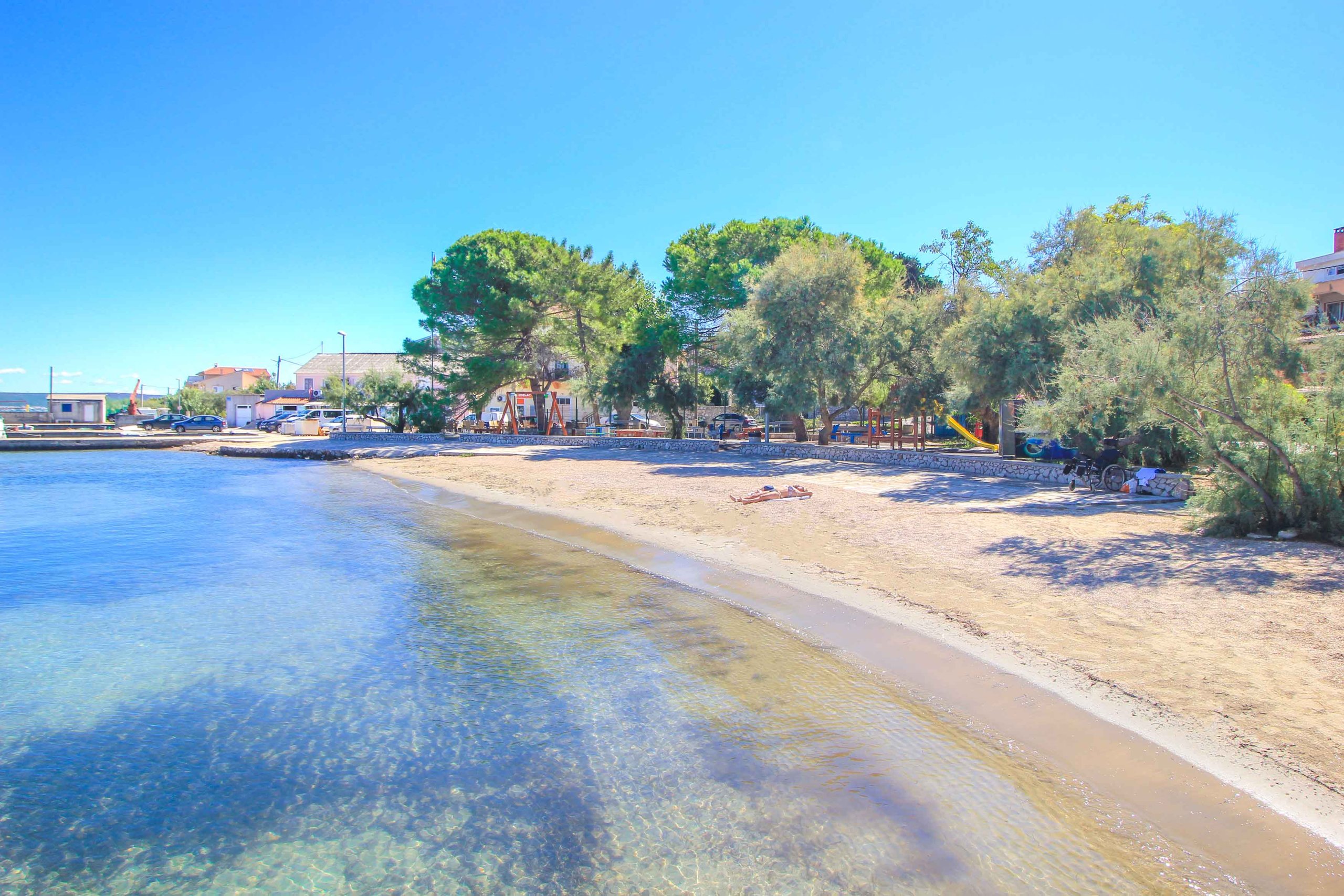 Der Plaza Pasman, auch als Pasman-Jasenice Strand bekannt, ist einer der beliebtesten Orte für einen Badeurlaub auf der Insel. Er befindet sich direkt in dem gleichnamigen Hauptort Pasman und bietet dank seiner Länge viel Platz zum Sonnenbaden, Schwimmen und Relaxen. Der gesamte Küstenabschnitt ist nicht nur traumhaft schön, er ist auch mit vielen Annehmlichkeiten wie Sonnenschirmen, Spielplätzen, Duschen, Umkleidekabinen sowie mit einem Volleyballplatz ausgestattet. Ob groß oder klein, Schwimmer oder Nichtschwimmer, hier ist für jeden etwas dabei. Wunderschön ist auch das türkisblaue Meer, das trotz des sandigen Bodens sehr klar ist. Etwas entfernt befindet sich zudem eine wirklich tolle Strandbar, in der man bei angenehmer Atmosphäre eine fabelhafte Aussicht genießt.