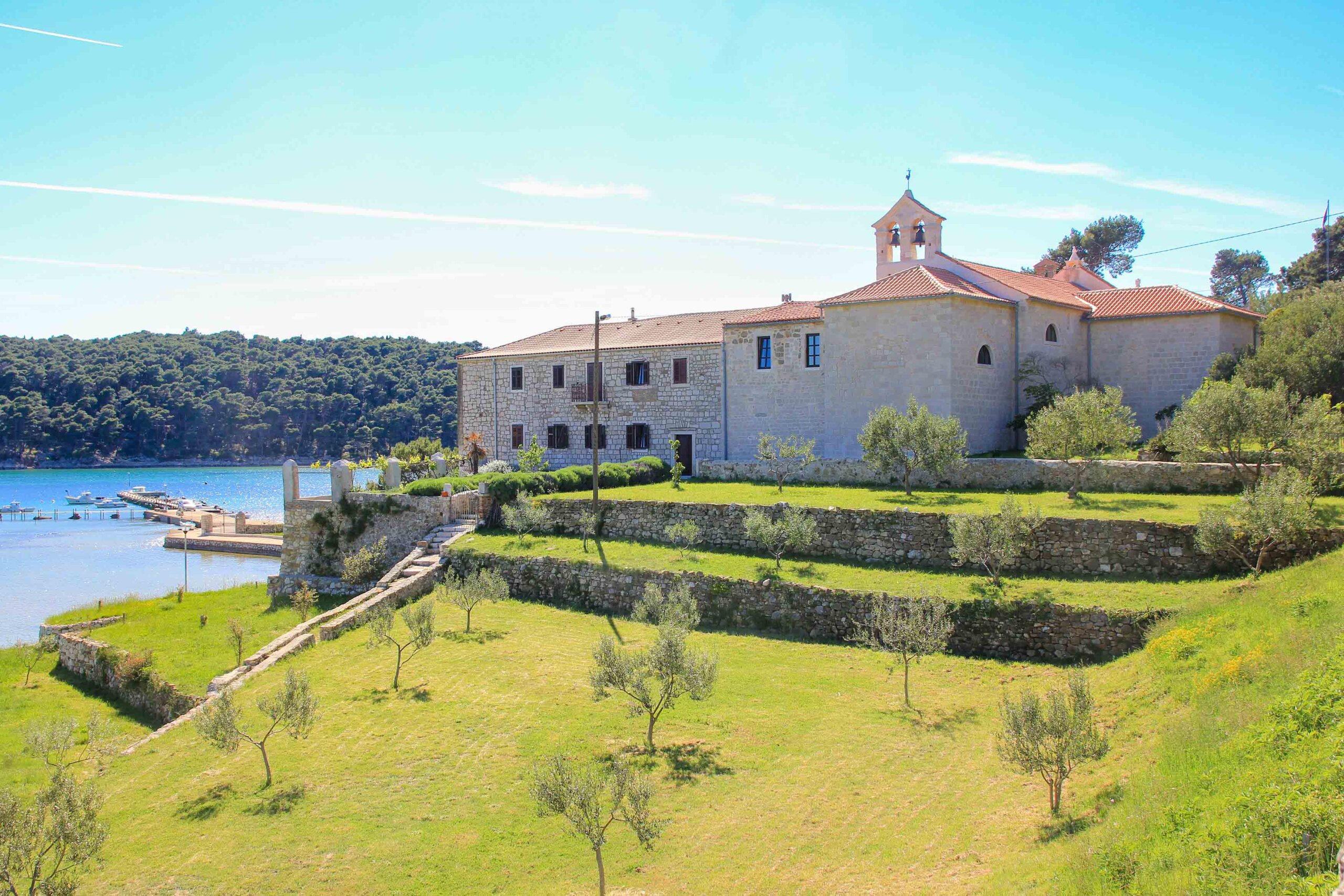 Das Kloster der Heiligen Euphemia befindet sich in einer romantischen Bucht im Ort Kampor und zählt zu den bedeutendsten Sehenswürdigkeiten der Insel Rab. Dieser historische Bau wurde bereits 1444 errichtet, und Teile davon können heute noch während eines Rundganges besichtigt werden. Wunderhübsch sind zudem der Innenhof des Klosters sowie die kleine Kirche mit den schönen Altären und den kunstvollen Heiligenbildern. Interessant sind auch das wertvolle Polyptichon der Gebrüder Antonio und Bartolomeo Vivarini aus Venedig, die hölzerne Decke und die Klosterbibliothek mit etwa 7.000 seltenen Büchern.