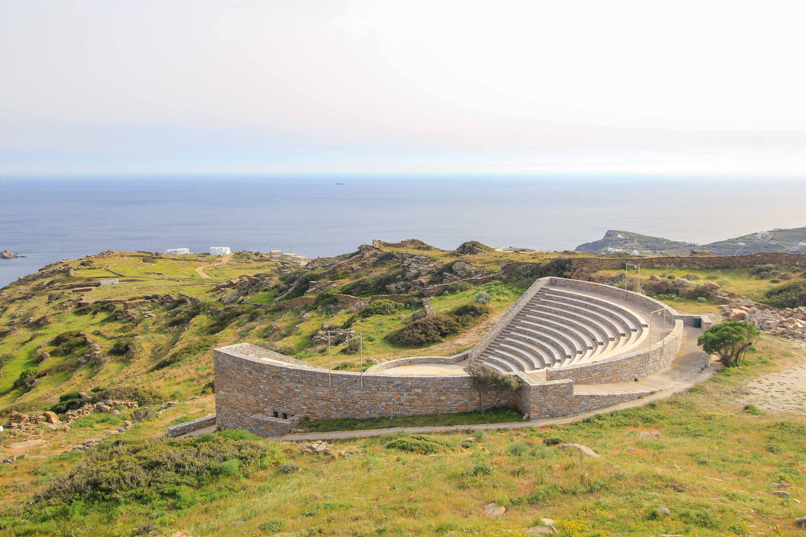 Das Odysseas-Elytis-Amphitheater ist eine ganz besondere Attraktion auf der Insel Ios. Dieses 1997 erbaute Freilufttheater befindet sich direkt hinter den Windmühlen am höchsten Punkt der Hauptstadt Chora und ist sowohl mit dem Auto als auch zu Fuß erreichbar. Oben angekommen, erwartet dich ein atemberaubender Aussichtspunkt auf den Mylopotas-Strand. Bei gutem Wetter kann man sogar bis nach Santorini blicken. Besonders beliebt ist dieser Ort im Sommer, denn dann finden hier zahlreiche Veranstaltungen wie Konzerte und Aufführungen statt. Ein Highlight ist dann auch das bekannte „Homeria“ Festival im Mai.