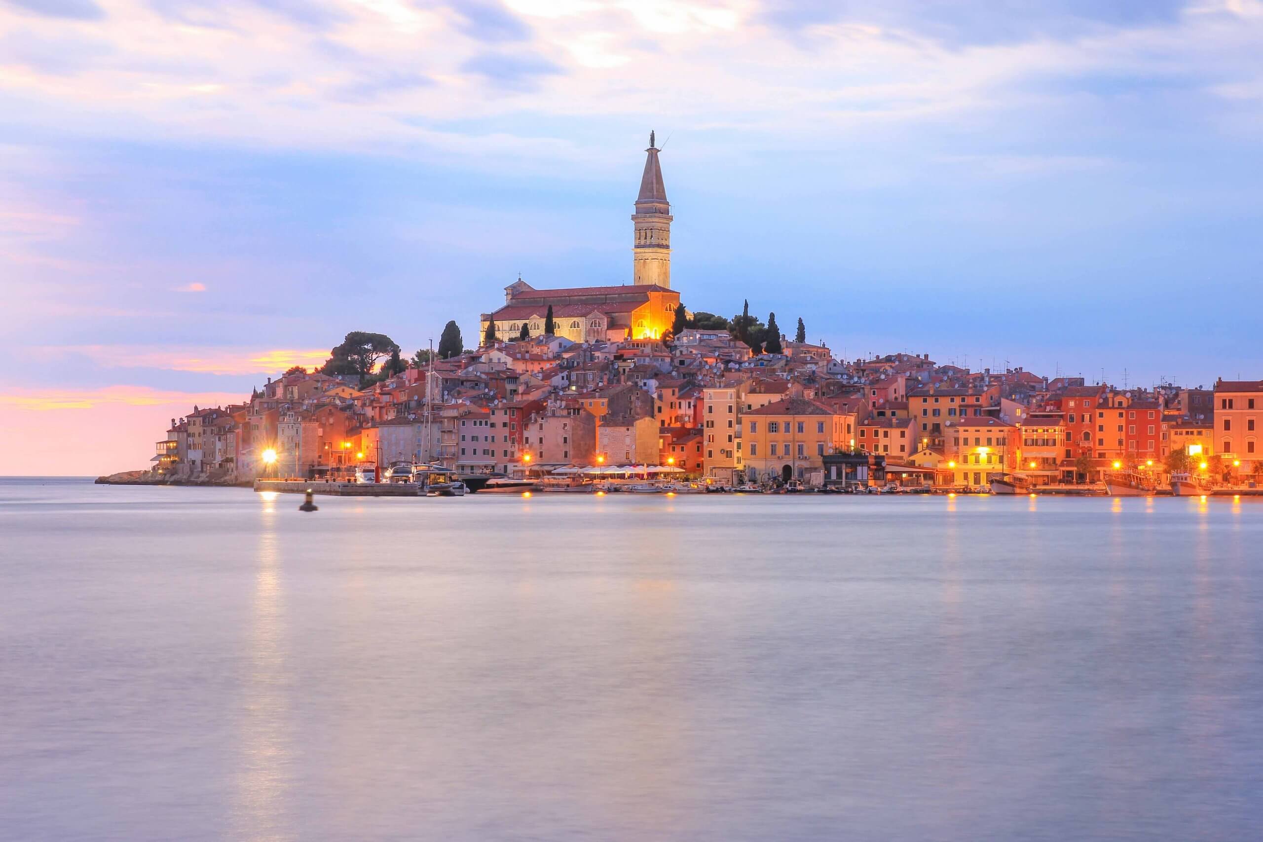 Rovinj ist mit Sicherheit eine der berühmtesten Sehenswürdigkeiten und das Aushängeschild Istriens. Diese faszinierende Küstenstadt bringt Besucher wahrlich zum Staunen, denn dort erwartet dich eine der wohl schönsten Altstädte Kroatiens. Wir sind hier am liebsten frühmorgens durch die Gassen gegangen, weil Rovinj dann besonders ruhig wirkt und ideal zum Fotografieren ist. Richtig eindrucksvoll sind die bunten Stadthäuser, die sich dicht an dicht vom Meer bis hinauf zur Stadtspitze reihen. Bezaubernde Gässchen führen durch das Zentrum bis zum Stadthügel, dem höchsten Punkt von Rovinj, wo sich die Kirche der Heiligen Euphemia befindet und man eine tolle Aussicht genießt. Auf dem Weg entdeckst du unzählige hübsche Attraktionen und Fotospots, und schnuckelige Restaurants und Cafés laden zur gemütlichen Sightseeing-Pause ein.
