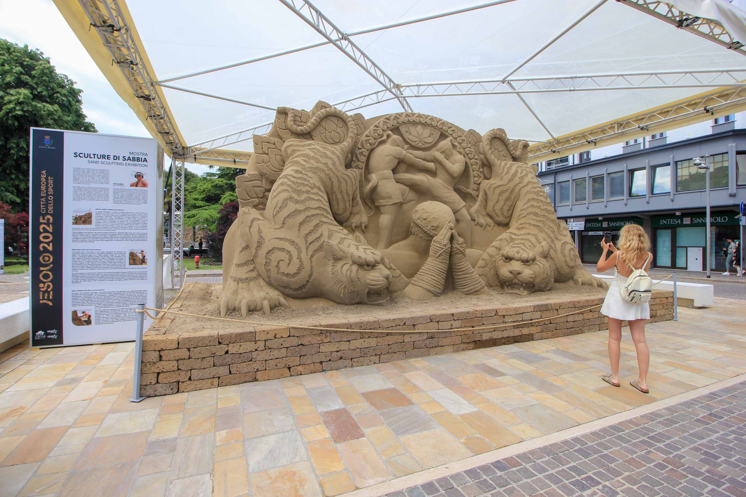Die Sandskulpturen in Jesolo sind ein echtes Must-See, denn diese Ausstellung zählt zu den bekanntesten Open-Air-Kunstveranstaltungen Italiens. Seit über 25 Jahren, zwischen Anfang Mai und Anfang Oktober, stellen an der Piazza Brescia internationale Künstler ihre riesigen Sandkunstwerke aus. Die Skulpturen erreichen teils eine Höhe von über 4 Metern und beeindrucken überdies durch ihre Detailgenauigkeit und ihre immense Ausdruckskraft. Interessant ist außerdem, dass die Werke ausschließlich aus Sand und Wasser geschaffen wurden. Der Eintritt zur Ausstellung ist kostenlos, und sie kann jederzeit besichtigt werden.