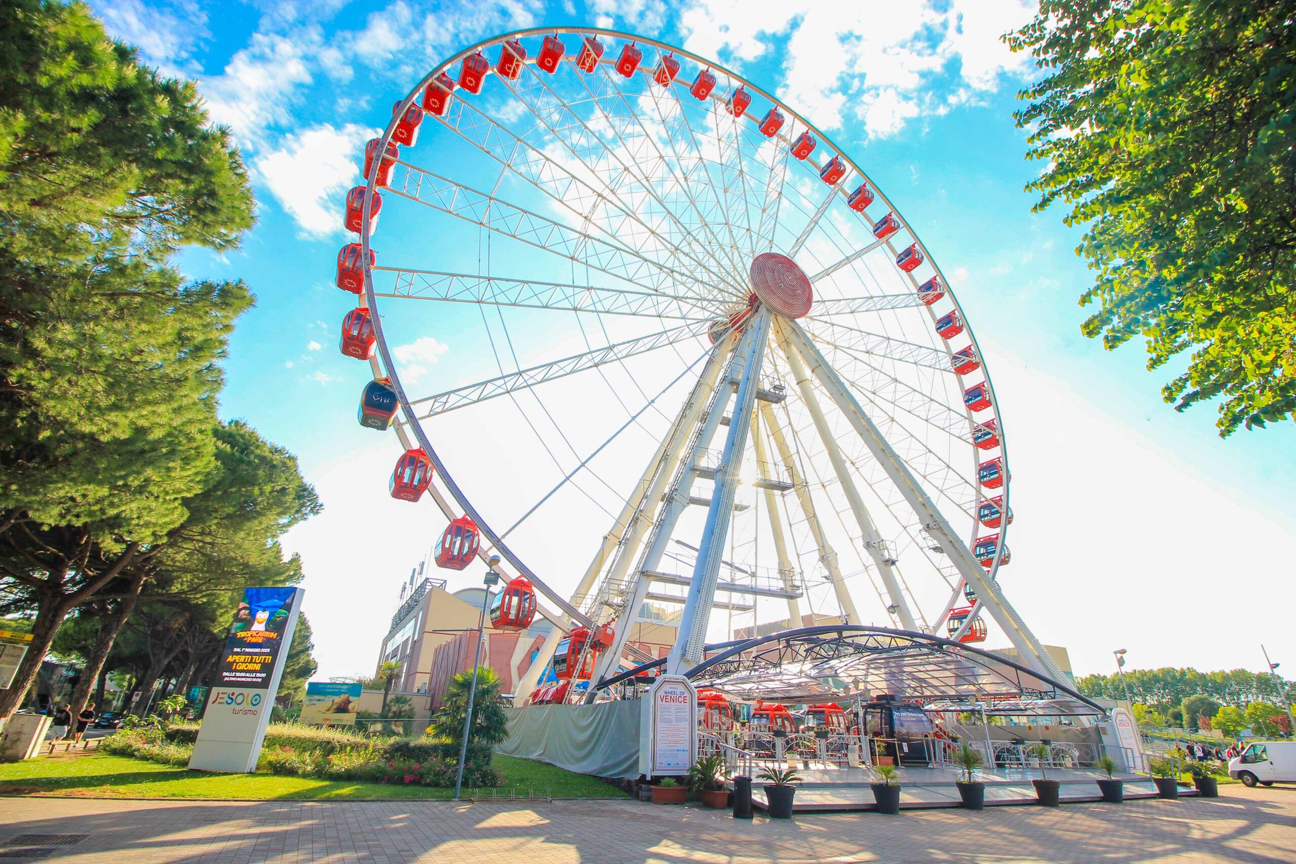 Das Riesenrad, auch als Wheel of Venice bekannt, ist mit Sicherheit eine der bekanntesten Attraktionen in Jesolo. Es befindet sich mitten im Herzen der Stadt, am Ende der Piazza Brescia, und gewährt bei einer Fahrt einen atemberaubenden Ausblick über den gesamten Urlaubsort. Nicht nur Familien mit Kindern finden dieses Riesenrad toll! Auf einer Höhe von mehr als 55 Metern erlebt man von den Gondeln aus ein unglaubliches Panorama von der endlosen Adriaküste bis hin zur fernen Skyline von Venedig. Besonders schön ist auch eine Fahrt zum Sonnenuntergang oder am Abend, wenn Jesolo sich in ein Lichtermeer verwandelt.