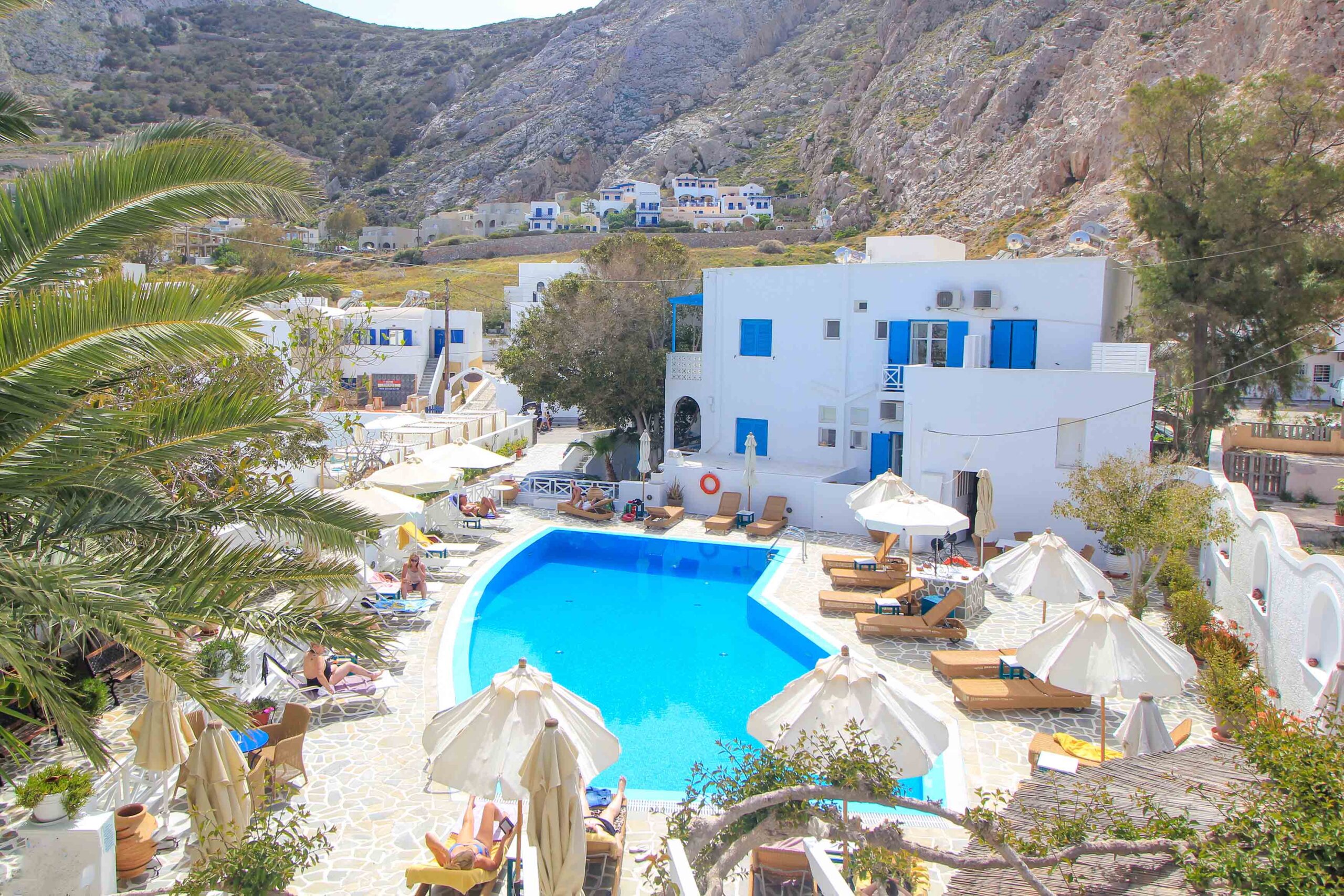 In Kamari gibt es einige der besten Unterkünfte in Santorini wie das süße Hotel Matina mit hübschem Pool, leckerem Frühstück und familiärer Atmosphäre.