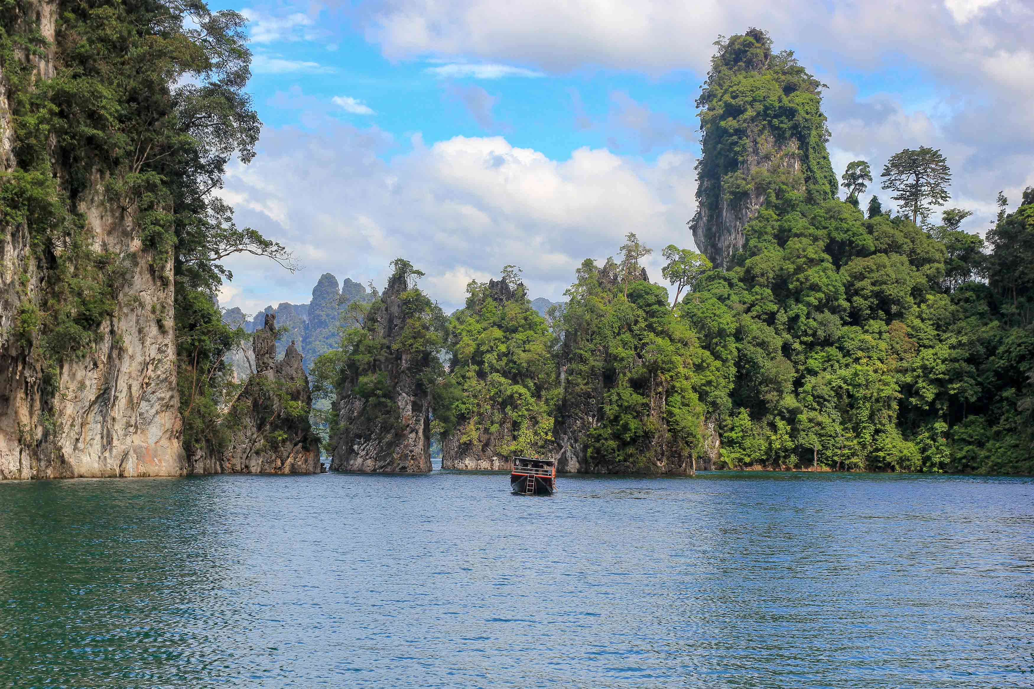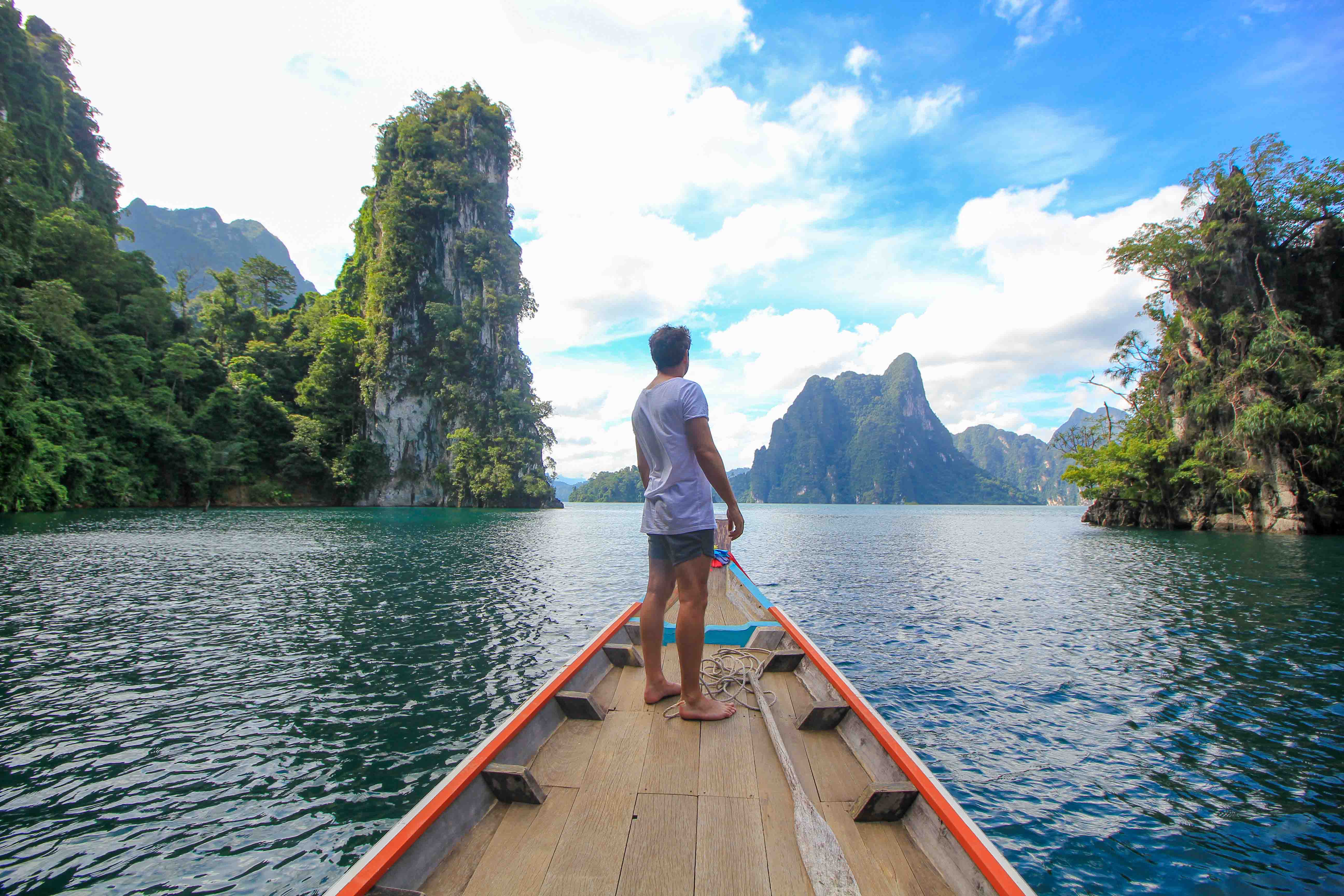 Bei der Fahrt mit den landestypischen Longtailbooten hat uns die unbeschreiblich schöne Landschaft fasziniert! Besonders spektakulär sind die mächtigen Felsen, die hunderte Meter aus dem See ragen und eine gigantische Kulisse zaubern. Unterwegs entdeckt man auch immer wieder kleine Höhlen, die man erkunden kann, oder macht Halt an einem der hübschen Floating-Bungalows mit Picknick und Baden im See.
