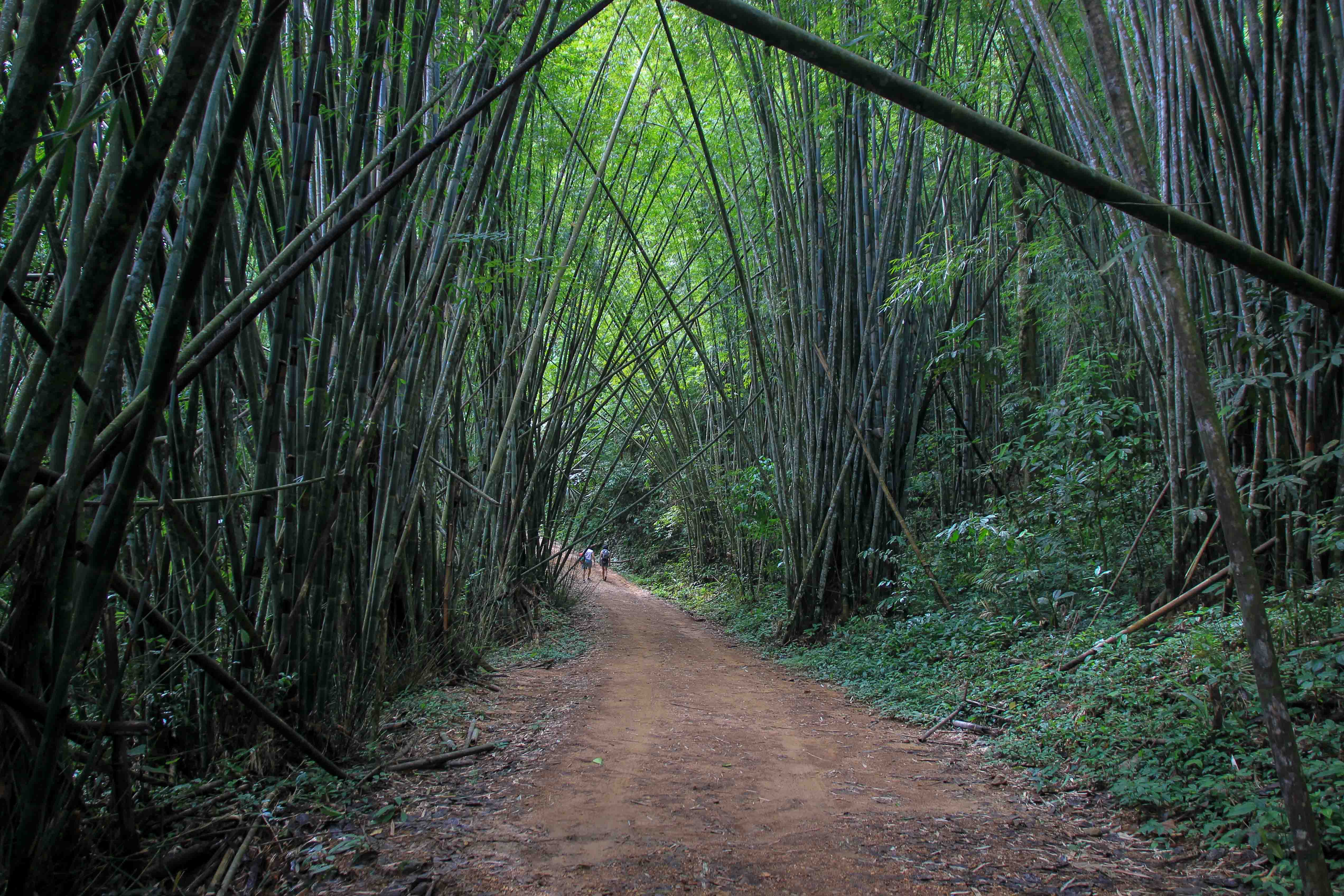 Ein schönes Erlebnis im Khao Sok Nationalpark ist eine Dschungeltour. Die besten Wanderungen starten beim Haupteingang, gleich in der Nähe von Khao Sok Town. Direkt beim Eingang findest du eine Nationalpark-Karte, damit du dich vorab gut orientieren kannst. Es sind verschiedenste Routen eingezeichnet, die wir ohne Probleme auf eigene Faust bewältigt haben. Die Wege sind gut markiert und führen durch wunderschöne Bambuswälder zu mehreren tropischen Wasserfällen, und meist kann man sogar den einen oder anderen Affen wie Makaken und Languren erspähen. Die beliebteste Route ist der 7 Kilometer lange Ton Kloi Waterfall Trail.