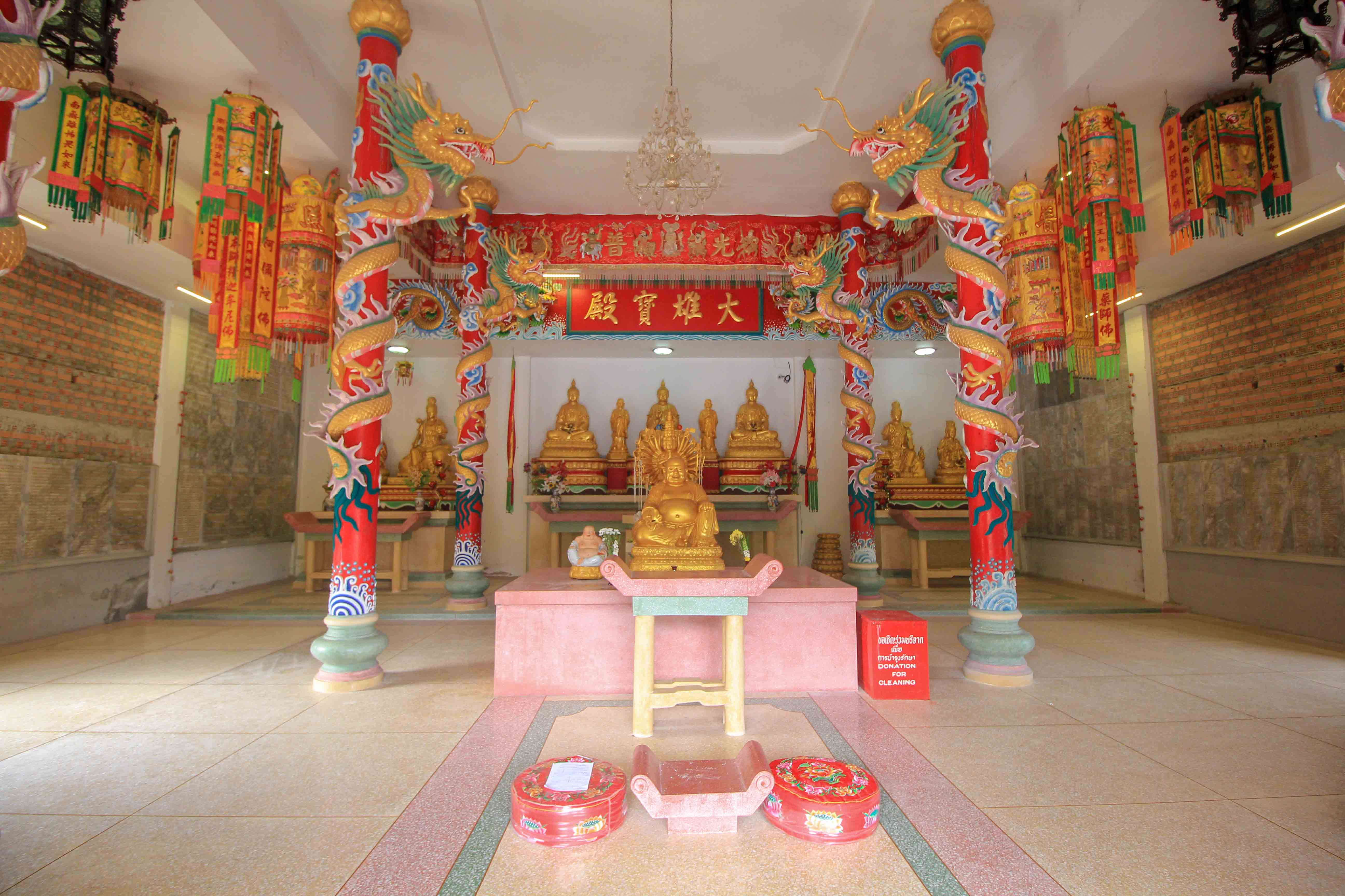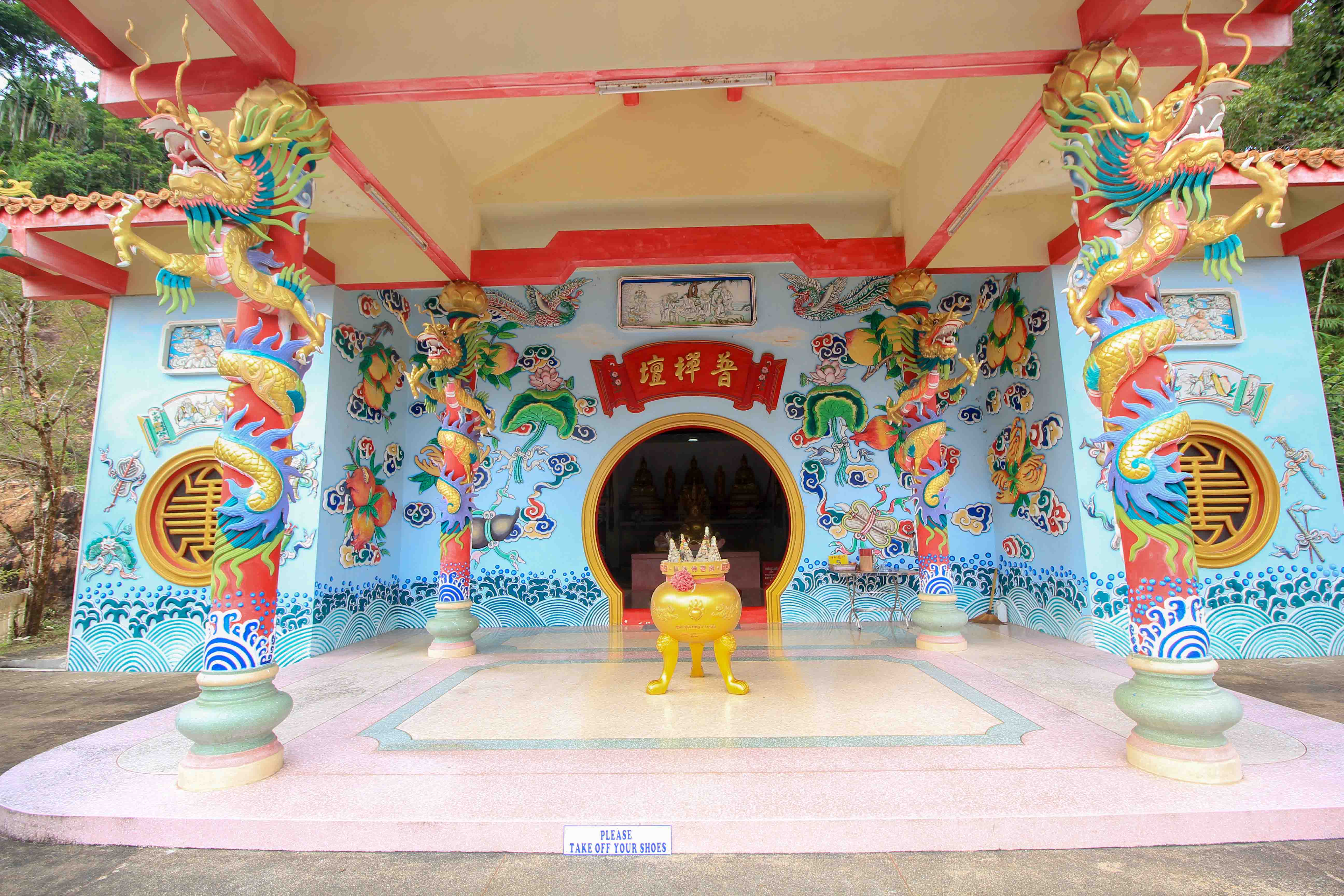 Der Chinesische Tempel, auch als der Chinese Temple Goddess of Mercy oder als Kuan Yin Temple bekannt, liegt auf einem Hügel, nur rund 5 Minuten vom Urlaubsort Chaloklum entfernt. Er ist ein beliebtes Ausflugsziel für Touristen und ist mit Sicherheit der berühmteste Tempel von Koh Phangan. Von der Tempelanlage bietet sich ein unglaublich schönes Panorama, weit hinweg über den üppigen Dschungel und mit Blick aufs tiefblaue Meer. Dieser Tempel ist im traditionellen chinesischen Stil mit vielen dekorativen Elementen und Drachenmotiven gestaltet. Die leuchtenden Farben und die reich verzierte Fassade machen den Tempel zu einem der schönsten auf Koh Phangan. Besonders hübsch sind die leuchtenden roten und grünen Farben der Dächer und die vielen Details und Verzierungen dieses außergewöhnlich schönen Tempels.