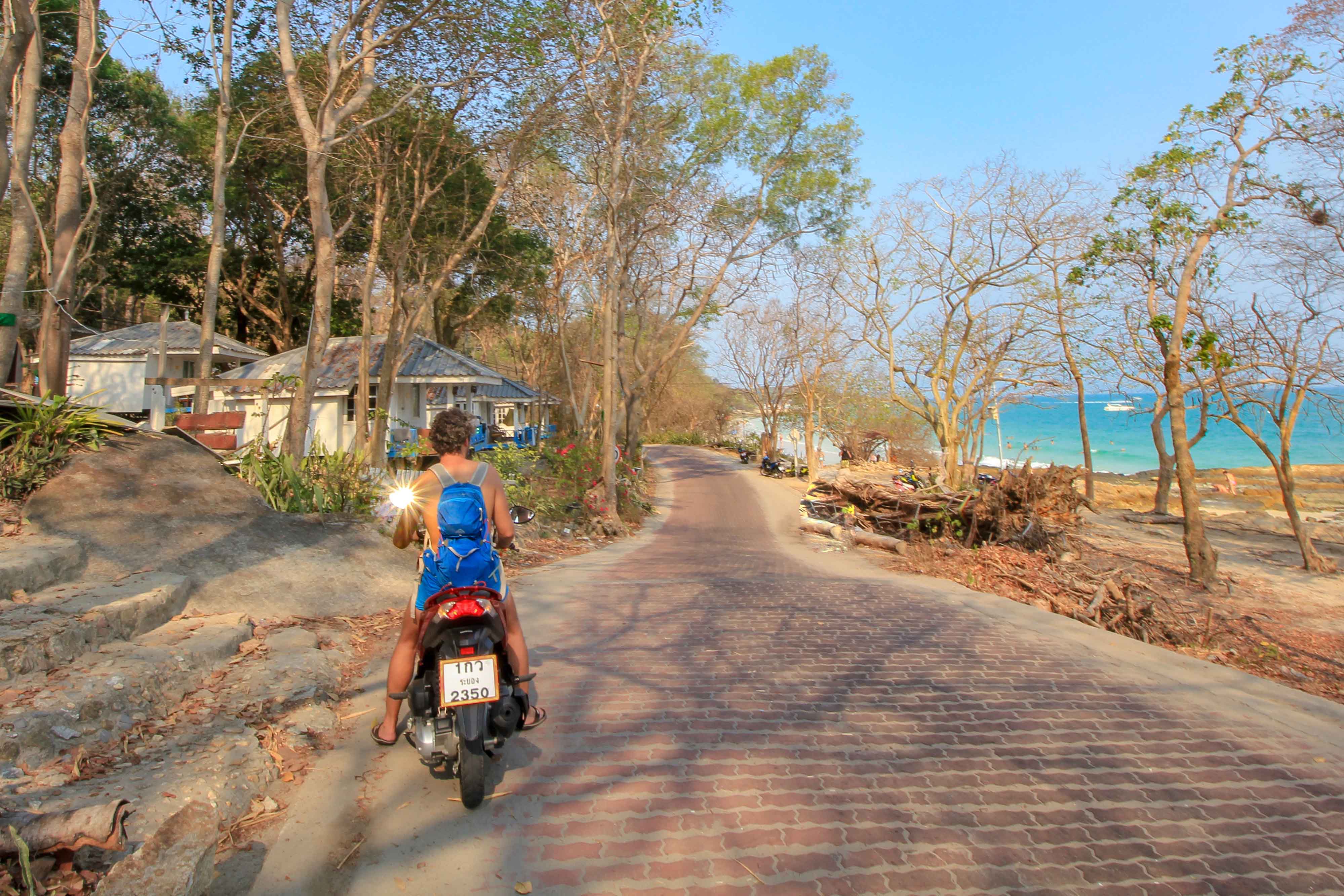 Viele erkunden die kleine Insel Koh Samet mit dem Roller. Aufgrund der relativ kleinen Größe kann man die Strände und Sehenswürdigkeiten ganz bequem auf eigene Faust entdecken. Die Preise für die Rollervermietung sind günstig und bewegen sich um die 300 Baht pro Tag. Oft ist auch schon eine Tankfüllung inklusive. Zudem sind die Straßen in einem recht guten Zustand, und auch der Verkehr ist auf der kleinen Insel sehr überschaubar.