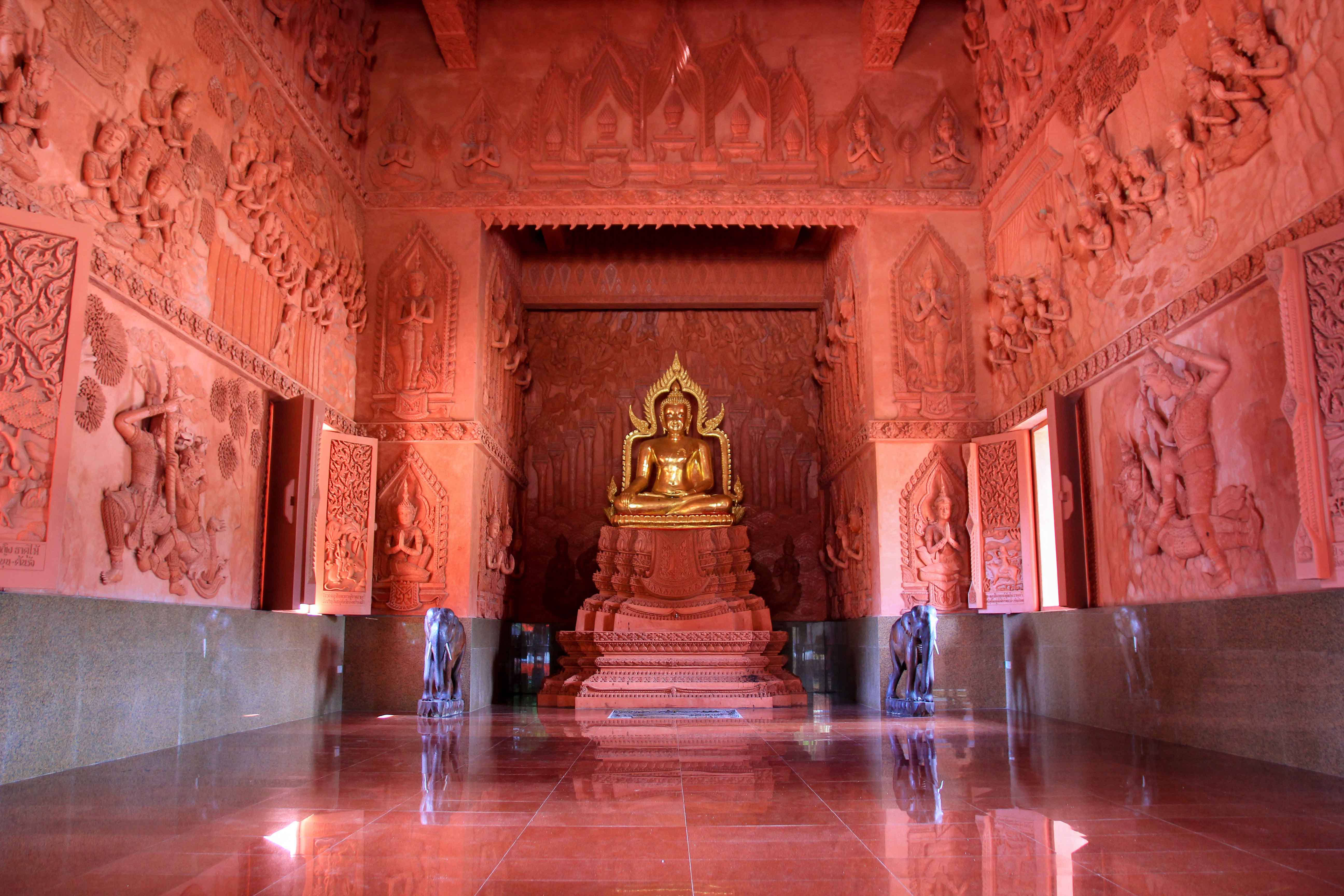 Der Wat Ratchathammaram, oder des Öfteren auch als der rote Tempel von Koh Samui bekannt, ist eine weitere schöne Tempelanlage der Insel. Er ist noch weniger stark besucht und zählt somit zu den Geheimtipps für Individualreisende. So strahlt dieser Ort eine besondere Atmosphäre und angenehme Ruhe aus. Der terrakottafarbene Tempel besticht mit eindrucksvollen Verzierungen und ist auch von innen richtig interessant anzusehen. Zudem ist er von üppiger Vegetation umgeben und bietet einen erholsamen Ort zum Meditieren und Entspannen.
