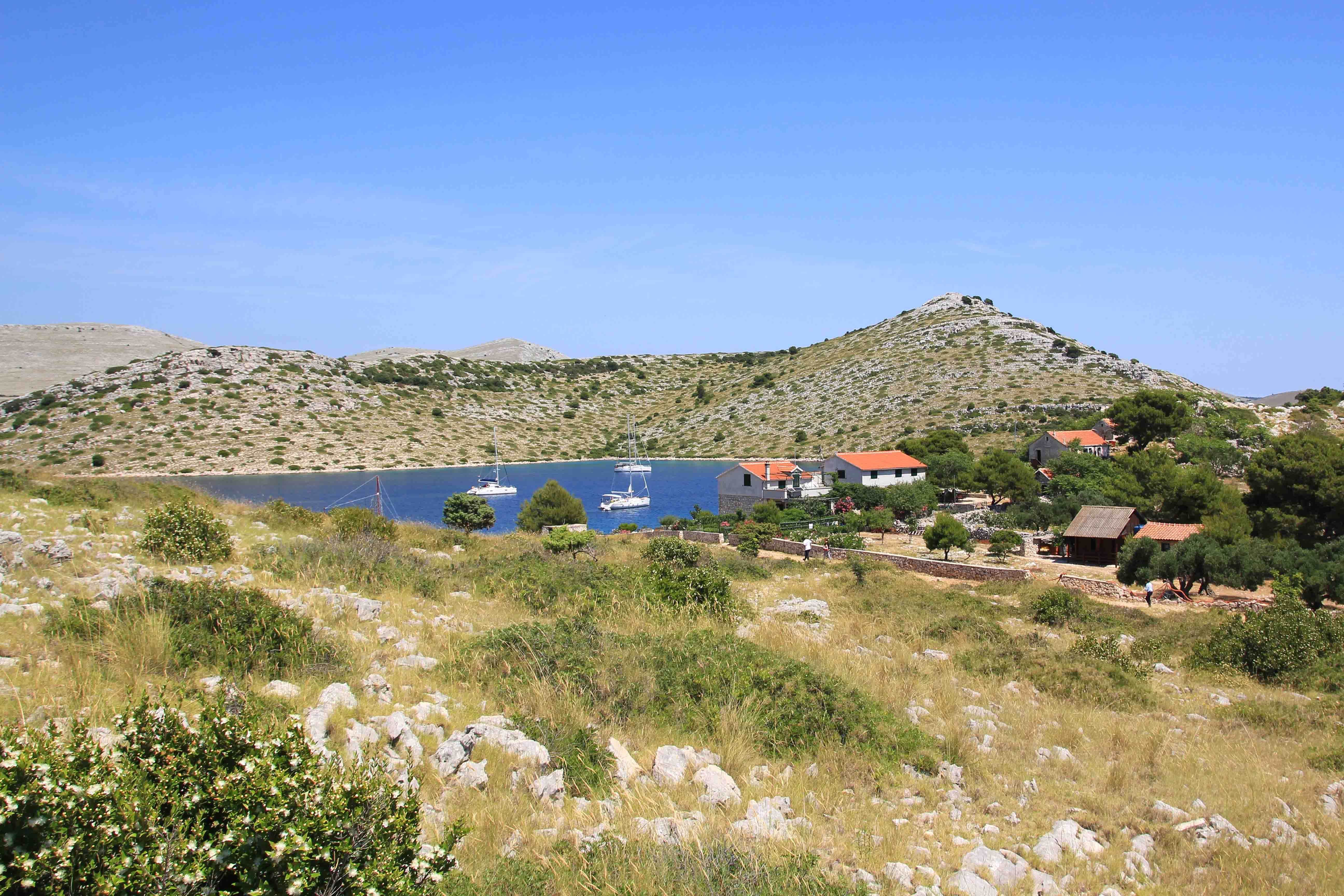 Die Insel Kornat ist mit einer Länge von 24 Kilometern die größte Insel im Archipel. Mit den hohen Hügeln ist sie zudem ein fantastischer Spot für Wanderungen. Kleine markierte Wege führen über die Berge zu spektakulären Aussichtspunkten, von denen man am besten das gewaltige Panorama auf die traumhaft schöne Inselwelt erlebt. Wunderschön und echter Geheimtipp, ist der Viewpoint Vrata Opata, ganz im Süden der Insel. Schattenplätze gibt es auf dieser kargen Insel kaum, und so solltest du bei deiner Wanderung nicht auf Sonnenschutz verzichten. Bitte beachte, dass Besucher nur auf den speziell gekennzeichneten Wanderwegen gehen dürfen.