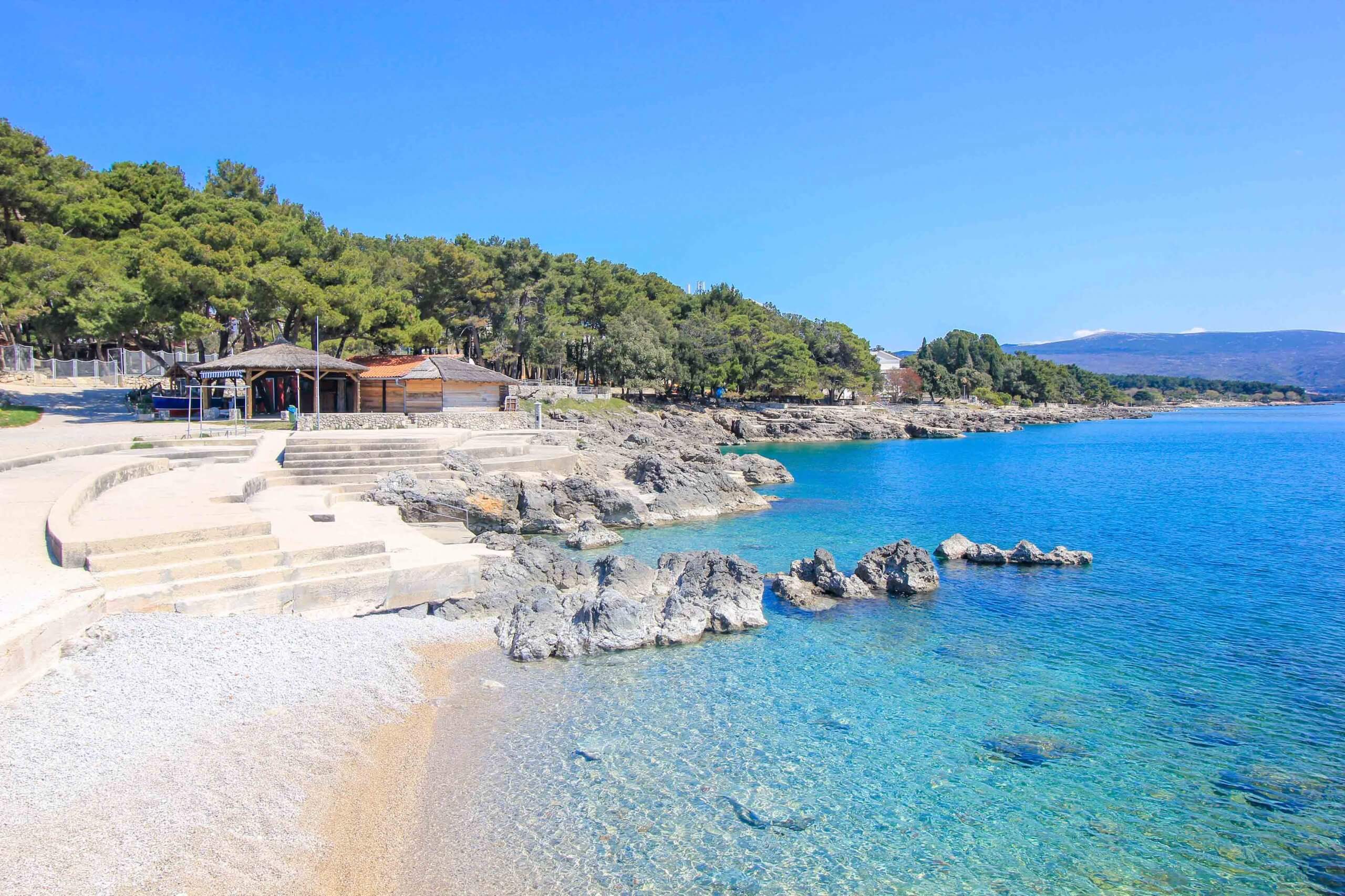 Der Strand Porporela besteht gleich aus mehreren malerischen Kieselsteinbuchten, und ist vor allem bei Familien mit Kindern sehr beliebt. An diesem schönen Küstenabschnitt treffen sich Touristen sowie Einheimische, um ihre Ferientage zu verbringen. Eindrucksvoll sind insbesondere die herrlichen türkisblauen Meeresfarben, die gemeinsam mit den mediterranen Pinien eine fabelhafte Kulisse zaubern. Toll sind auch die kleinen Snack-Bars, die für die nötige Verpflegung sorgen.