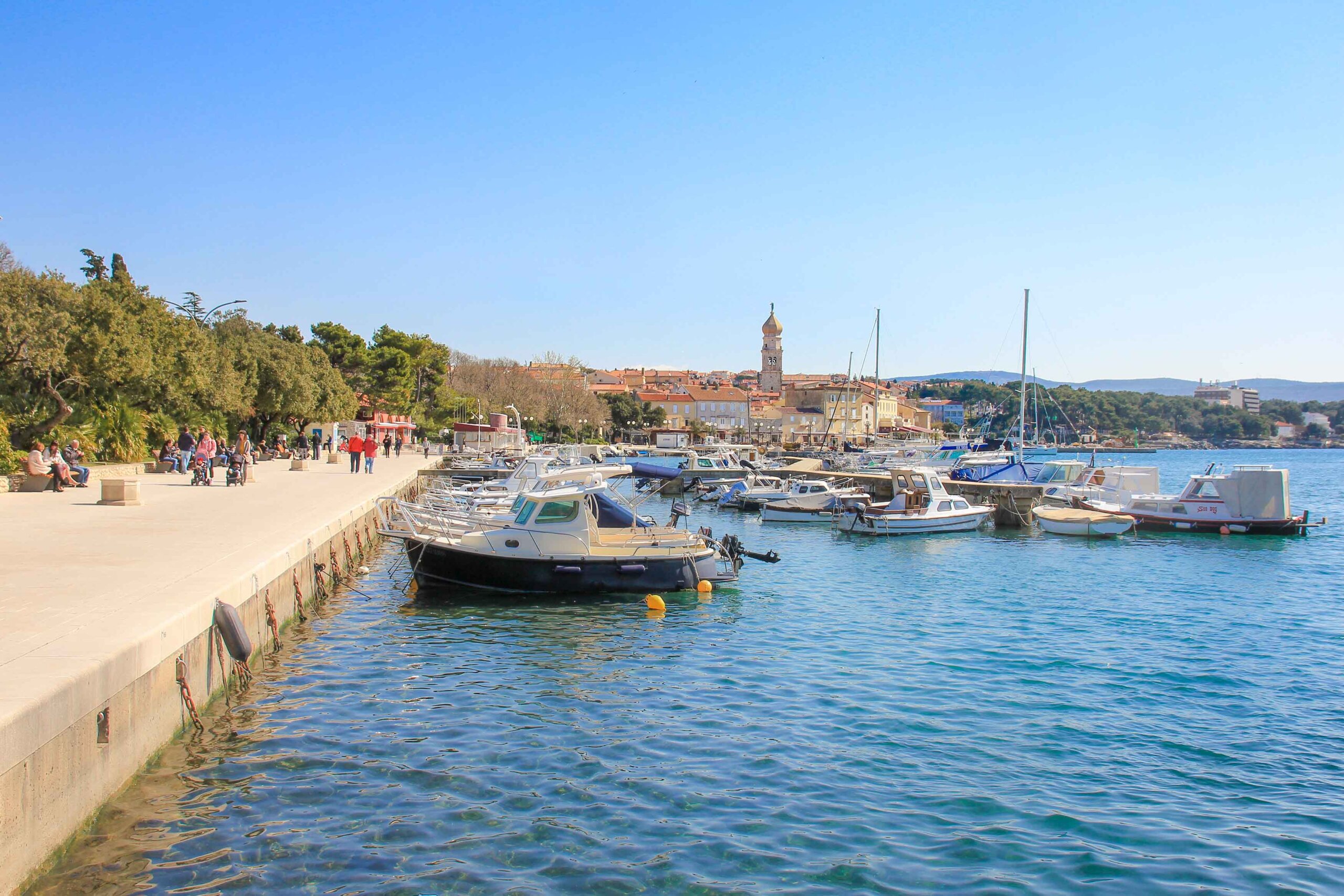Die wunderschöne Uferpromenade, die sogenannte Riva, ist eine der wichtigsten Sehenswürdigkeiten in Krk Stadt. Sie bildet das äußerst charmante touristische Zentrum des Urlaubsortes und führt vom Hafen zur Altstadt und weiter zu den wunderschönen Stränden der Küste. Unterwegs staunt man über die romantische Stimmung, die unzähligen schaukelnden Fischerboote im Hafen, und auch viele kleine Cafés laden zum Verweilen mit Blick aufs Meer ein.