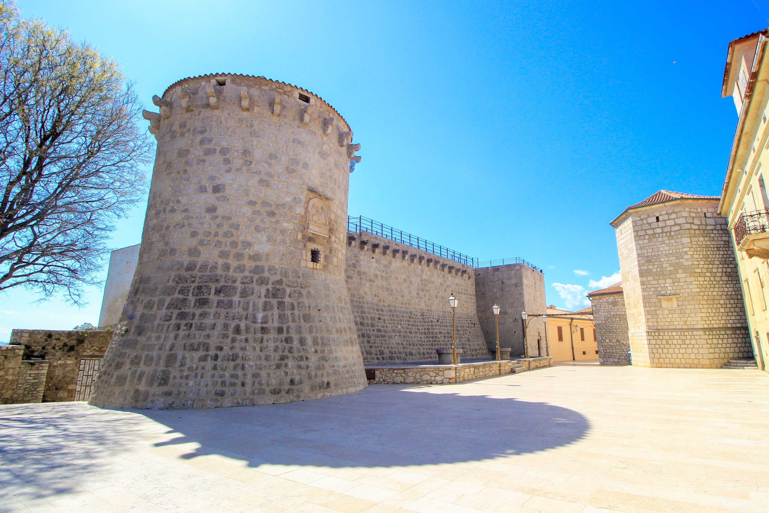 Das Kastell Frankopan ist die wohl berühmteste Sehenswürdigkeit der Altstadt von Krk. Es befindet sich am Platz Kamplin und wurde bereits zwischen dem 12. und 15. Jahrhundert von der Adelsfamilie Frankopan erbaut. Damals diente es zum Schutz der Bevölkerung vor feindlichen Angriffen. Heute kann man diese imposante Festungsanlage gegen eine kleine Gebühr besichtigen. Bei einem Rundgang entlang der Mauer staunt man über die fabelhafte Aussicht auf die Stadt und das türkisblaue Meer.