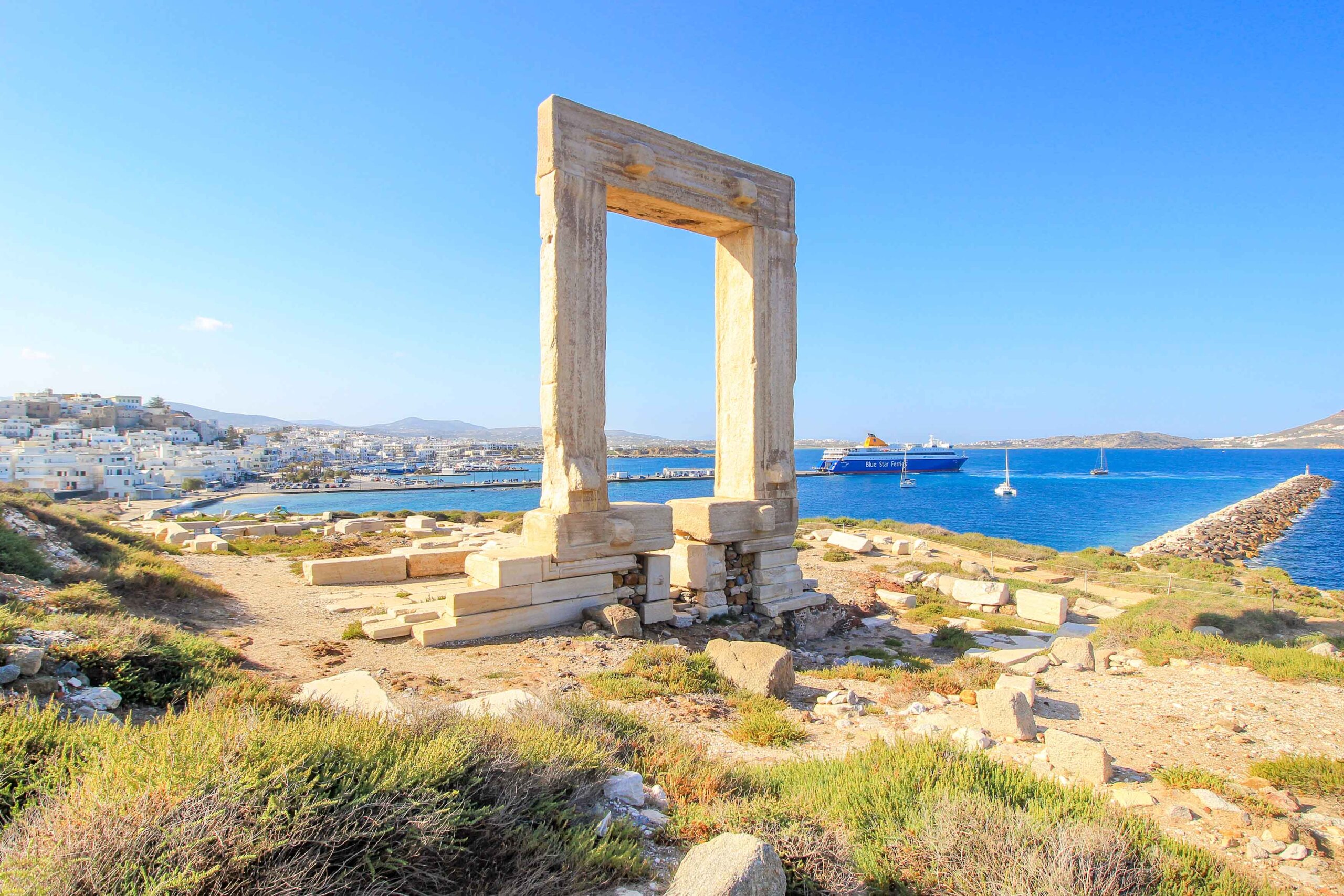 Die Insel Naxos ist eine der schönsten und mit 389,43 km² die größte Insel der Kykladen. Unzählige feine helle Sandstrände, schon fast kitschige türkisblaue Meeresfarben und eine Urlaubsstimmung vom Feinsten machen diese Inselperle zu einem Badeparadies der Extraklasse. Naxos ist zudem ein beliebter Stopp beim Inselhüpfen und besticht außerdem mit zahlreichen atemberaubenden Sehenswürdigkeiten. Die schneeweiße Hauptstadt Chora mit dem Tempeltor Portara ist besonders sehenswert, und auch die vielen romantischen Bergdörfer im Hinterland sowie historisch-bedeutende Ausgrabungsstätten sind beliebte Ausflugsziele. Sportbegeisterte können überdies den höchsten Berg der Kykladen, den 1.004 Meter hohen Zeusberg, besteigen.